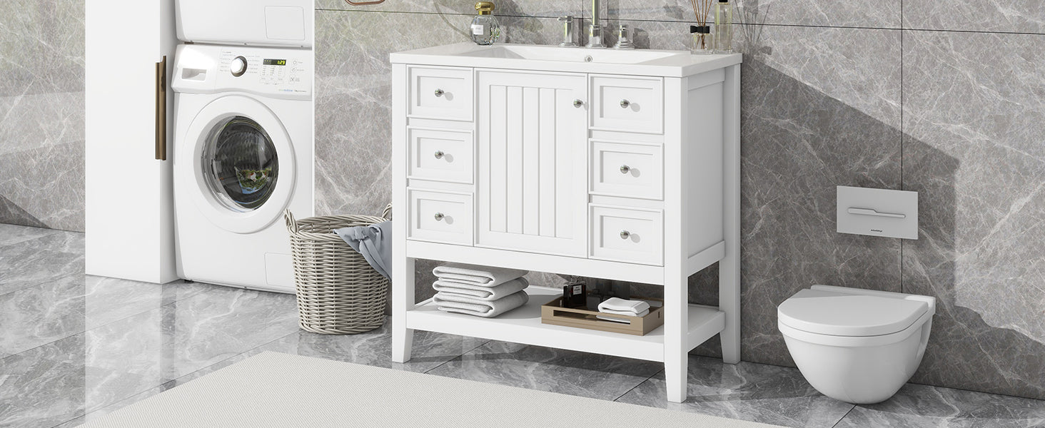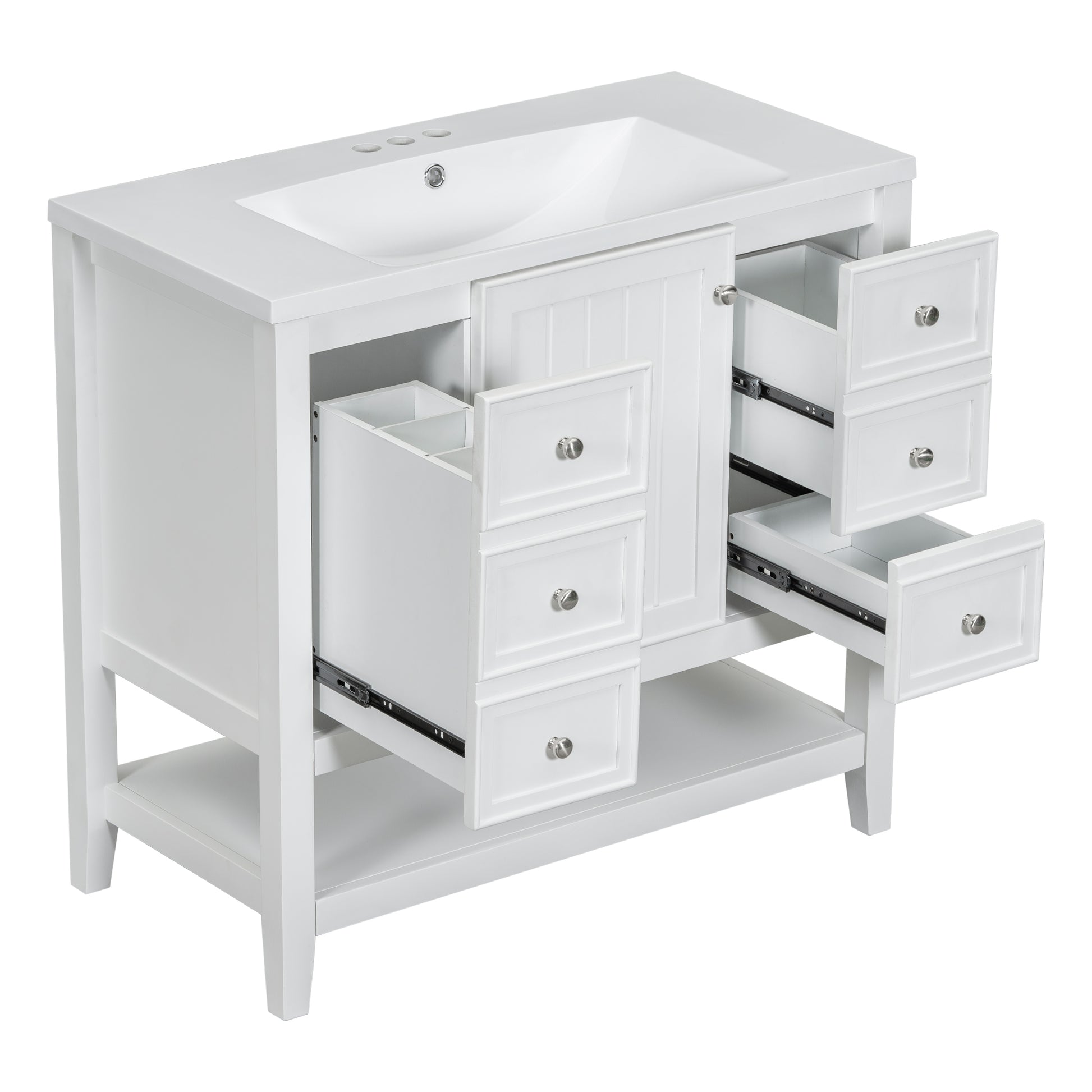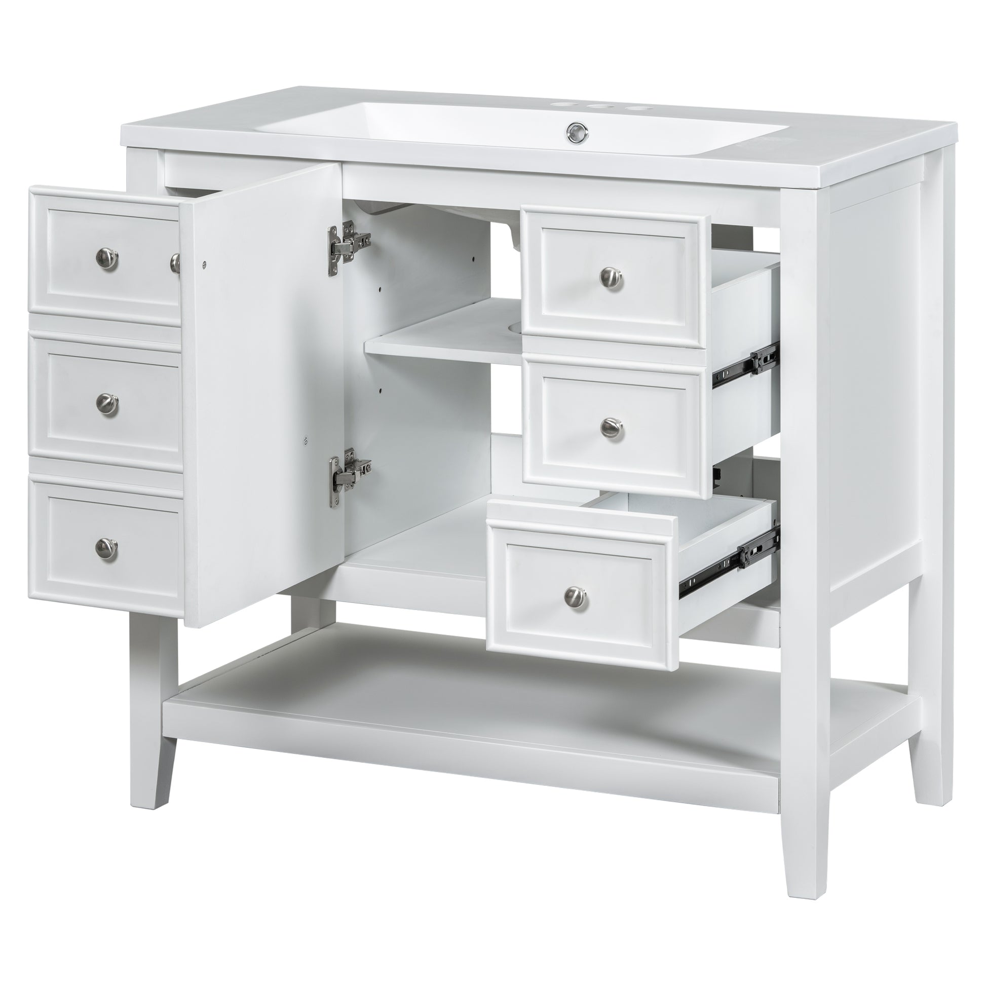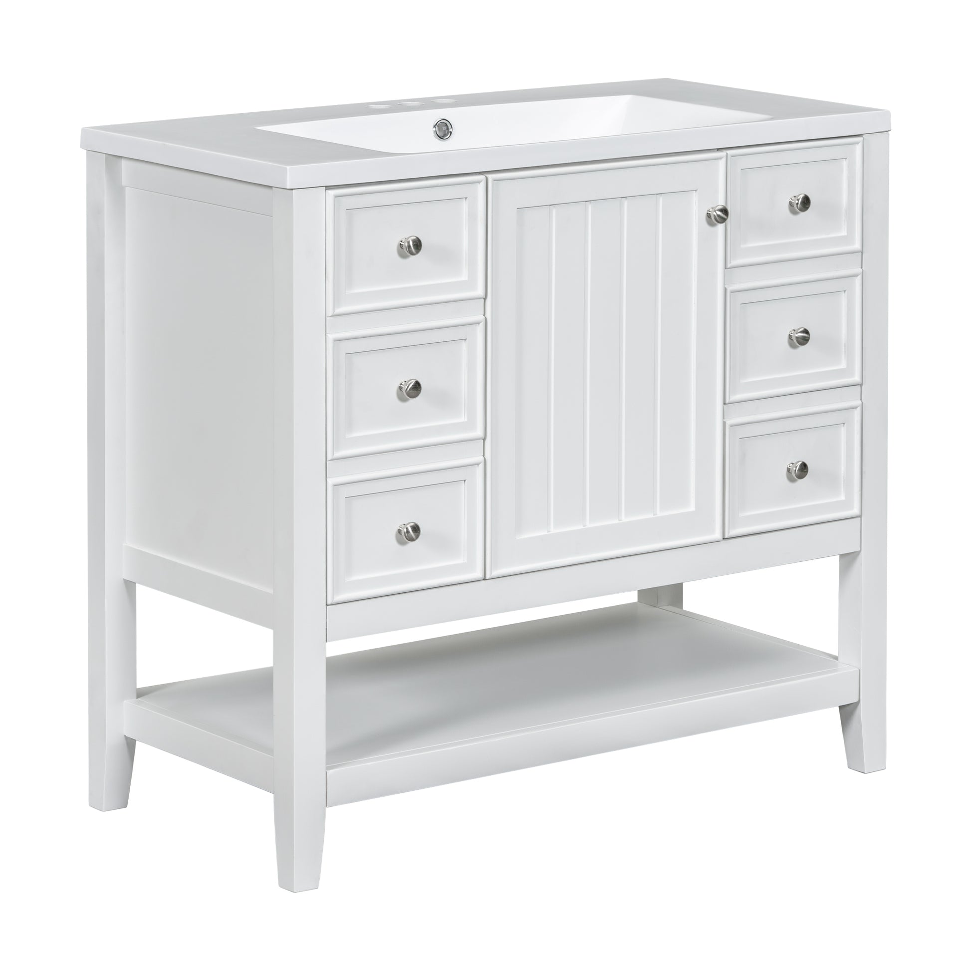 36" Bathroom Vanity With Sink Combo, One Cabinet And Three Drawers, Solid Wood And Mdf Board, White White Solid Wood Mdf