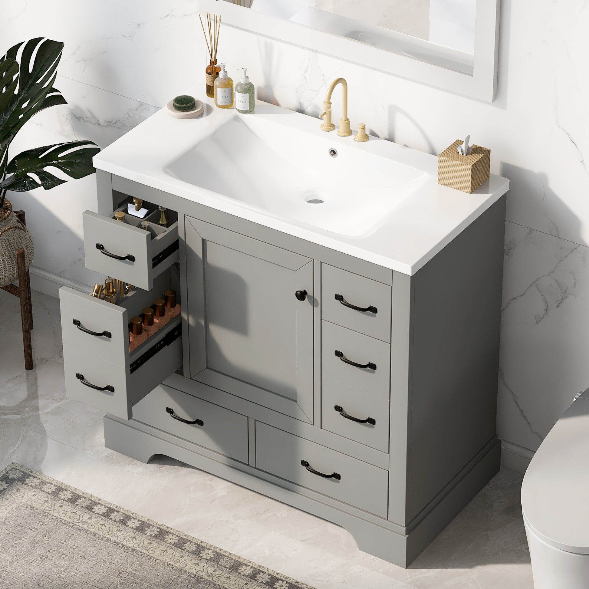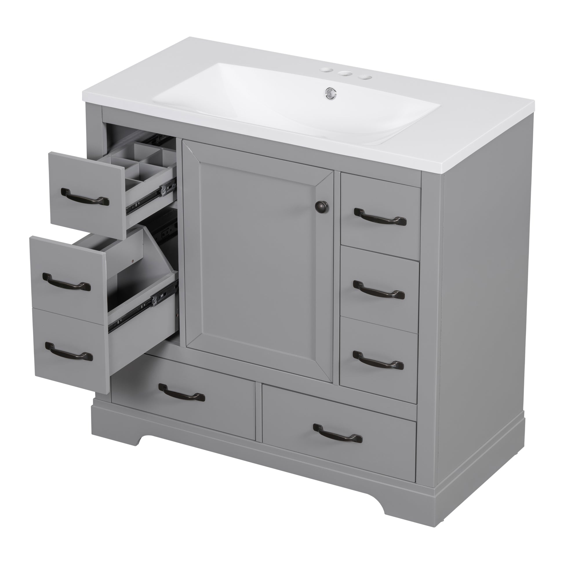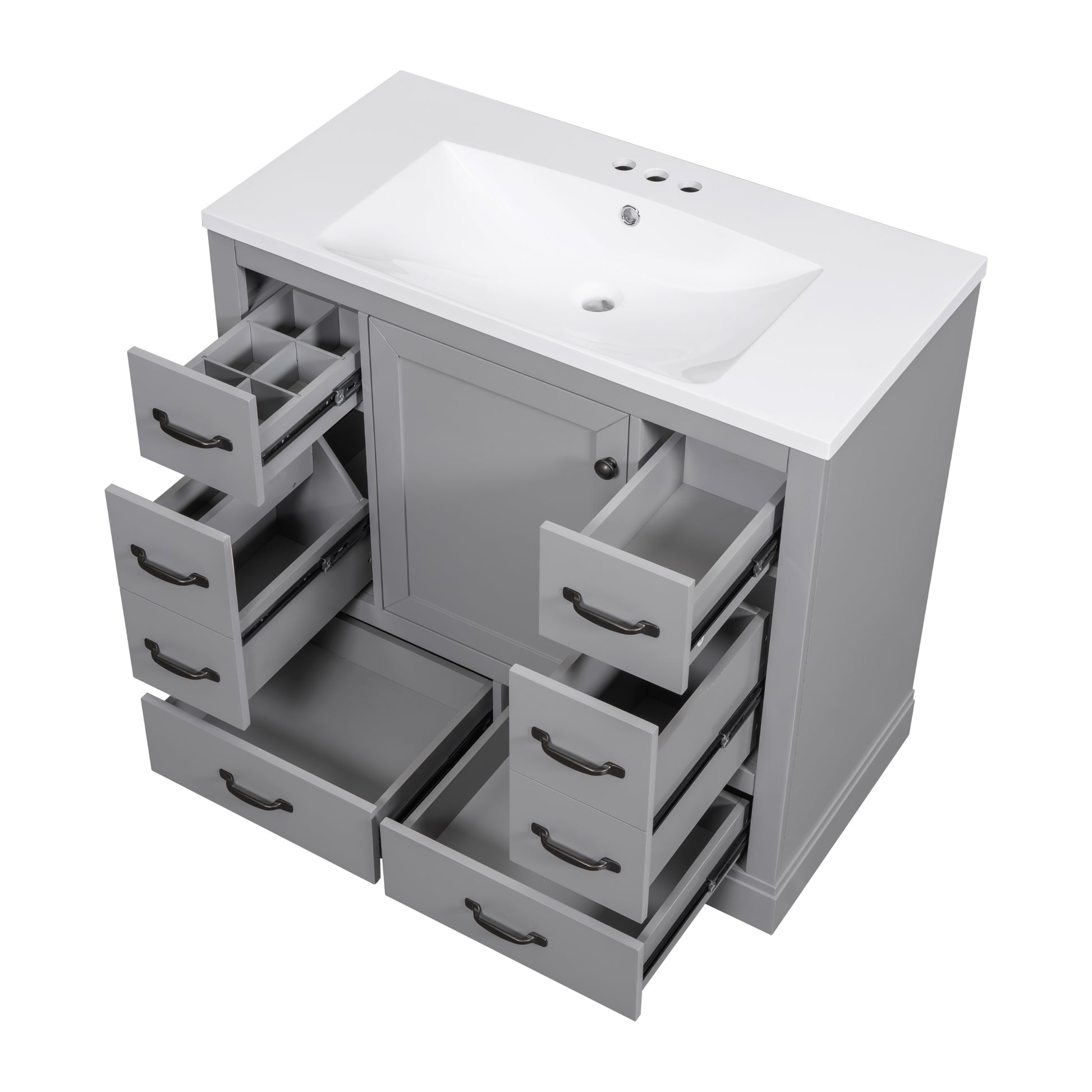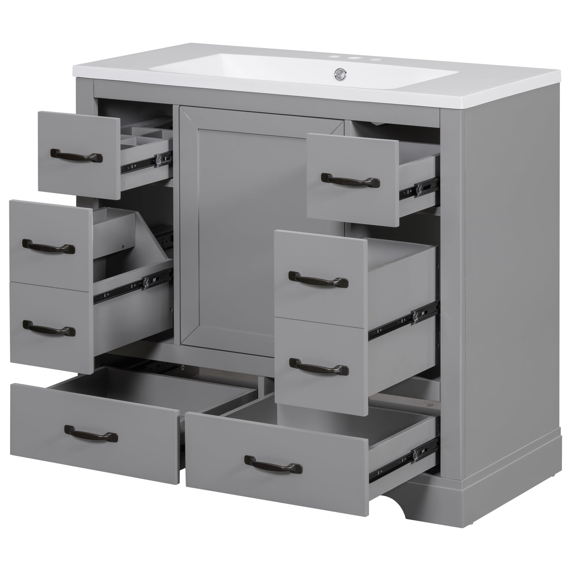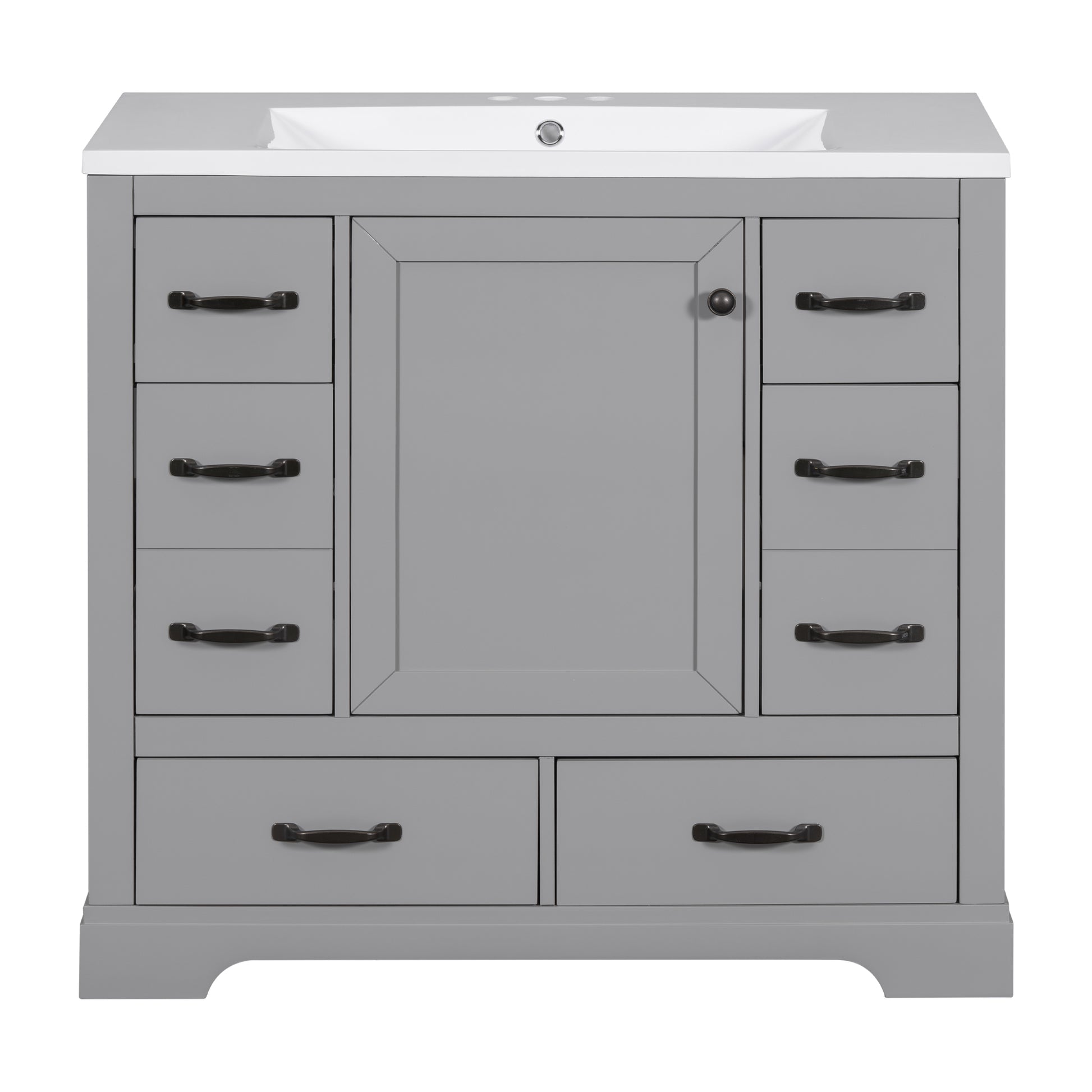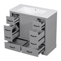 36" Bathroom Vanity With Sink Combo, Six Drawers, Multi Functional Drawer Divider, Adjustable Shelf, Grey Grey Solid Wood Mdf