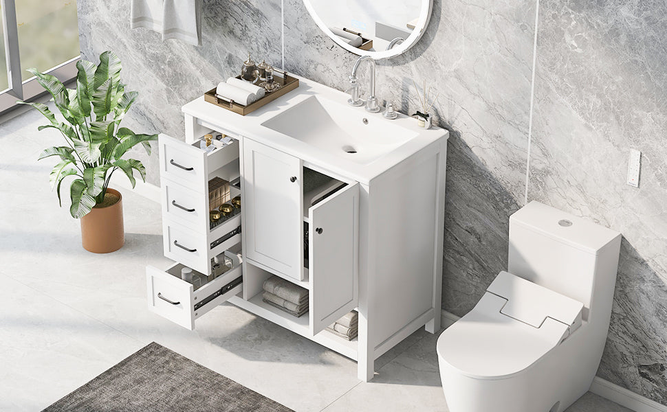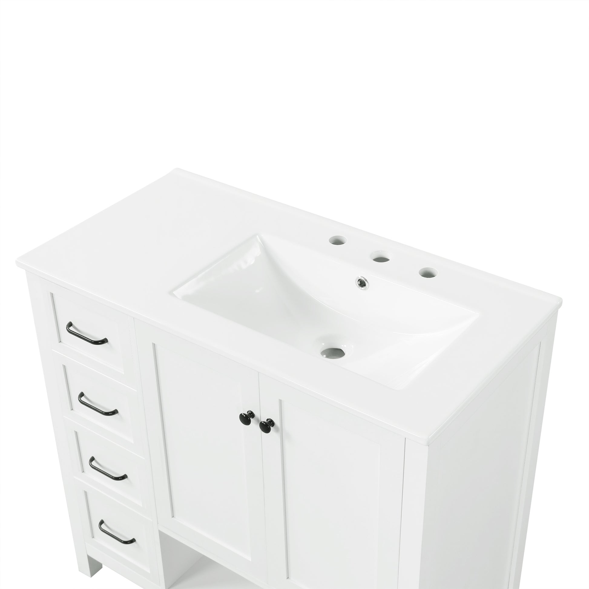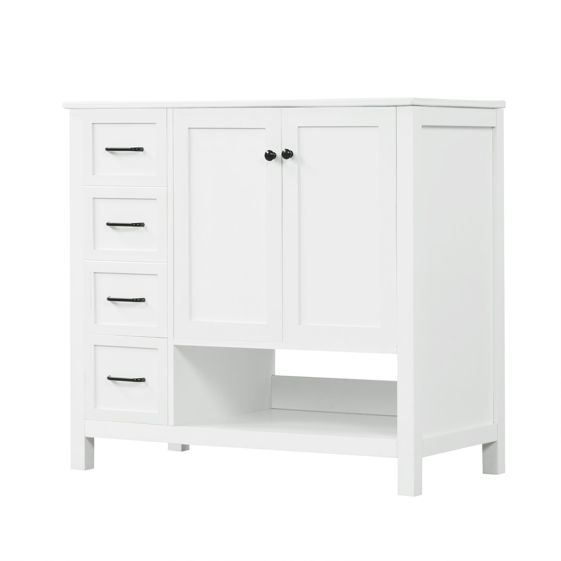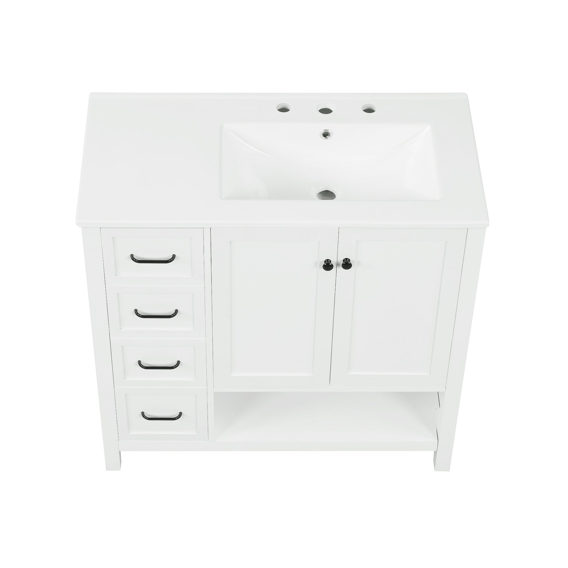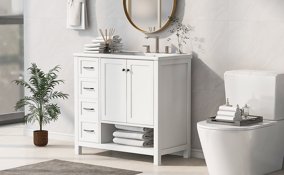 36" Bathroom Vanity With Sink Top, Bathroom Vanity Cabinet With Two Doors And Two Drawers, Solid Wood, Open Shelf, Mdf Boards, One Package, White White Solid Wood Mdf