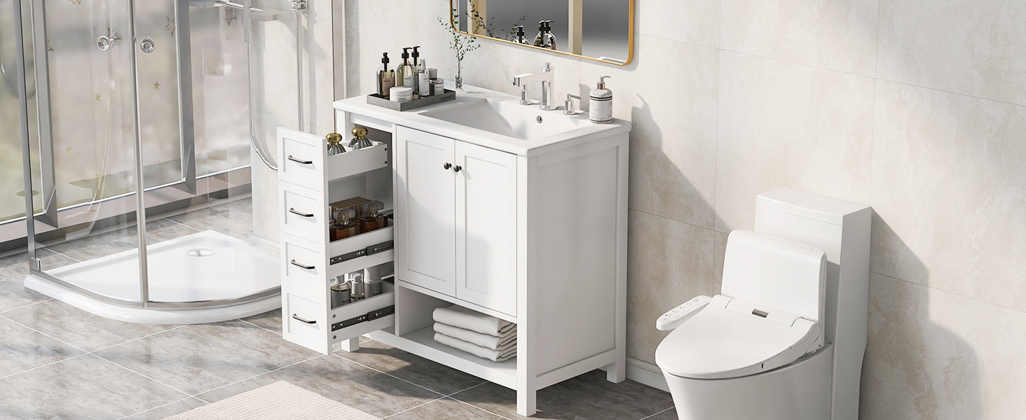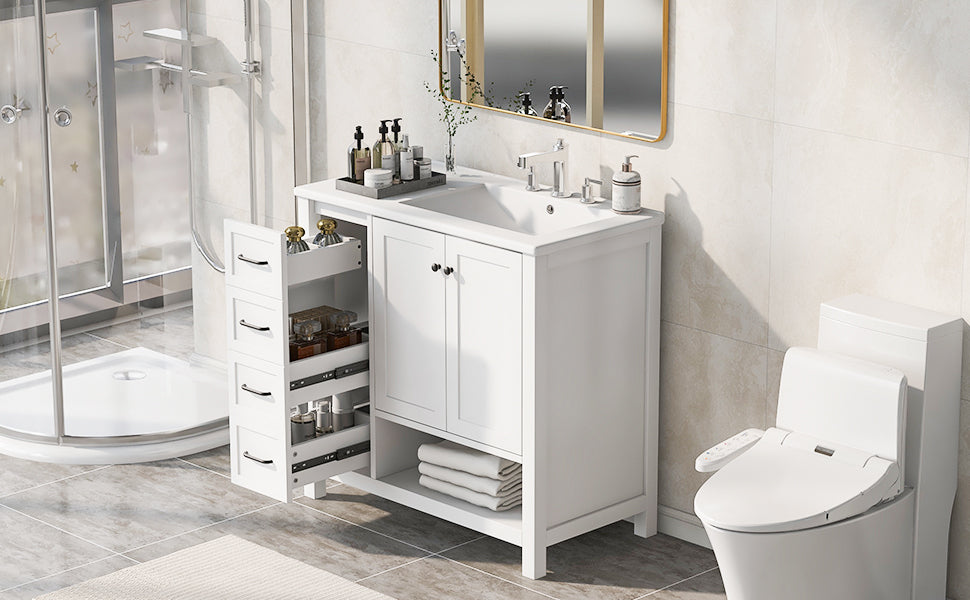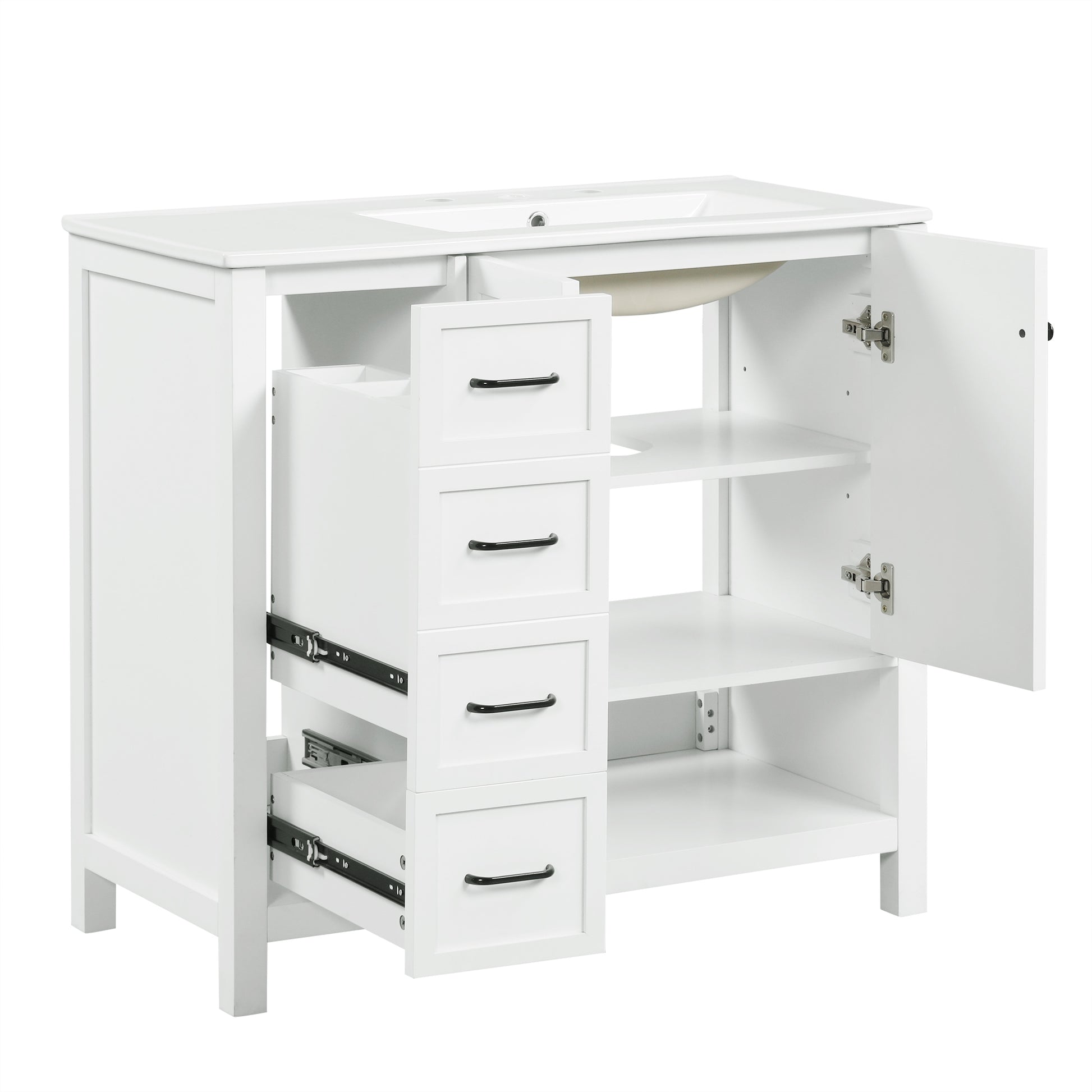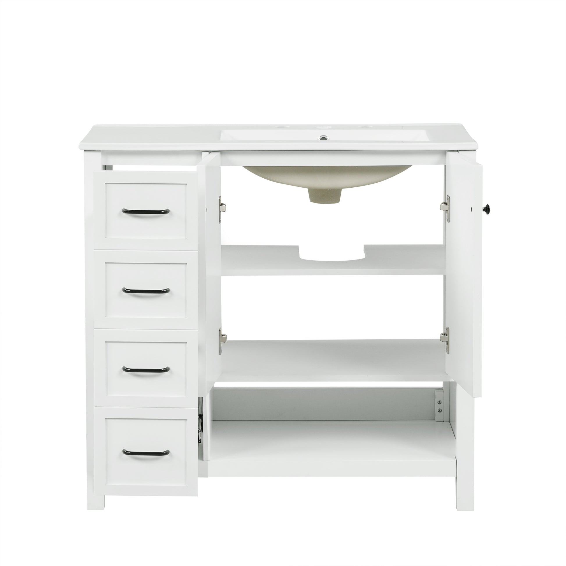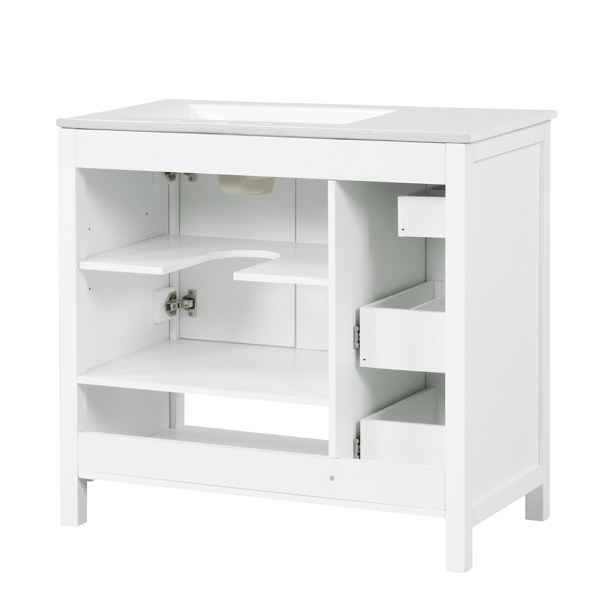 36" Bathroom Vanity With Sink Top, Bathroom Vanity Cabinet With Two Doors And Two Drawers, Solid Wood, Open Shelf, Mdf Boards, One Package, White White Solid Wood Mdf