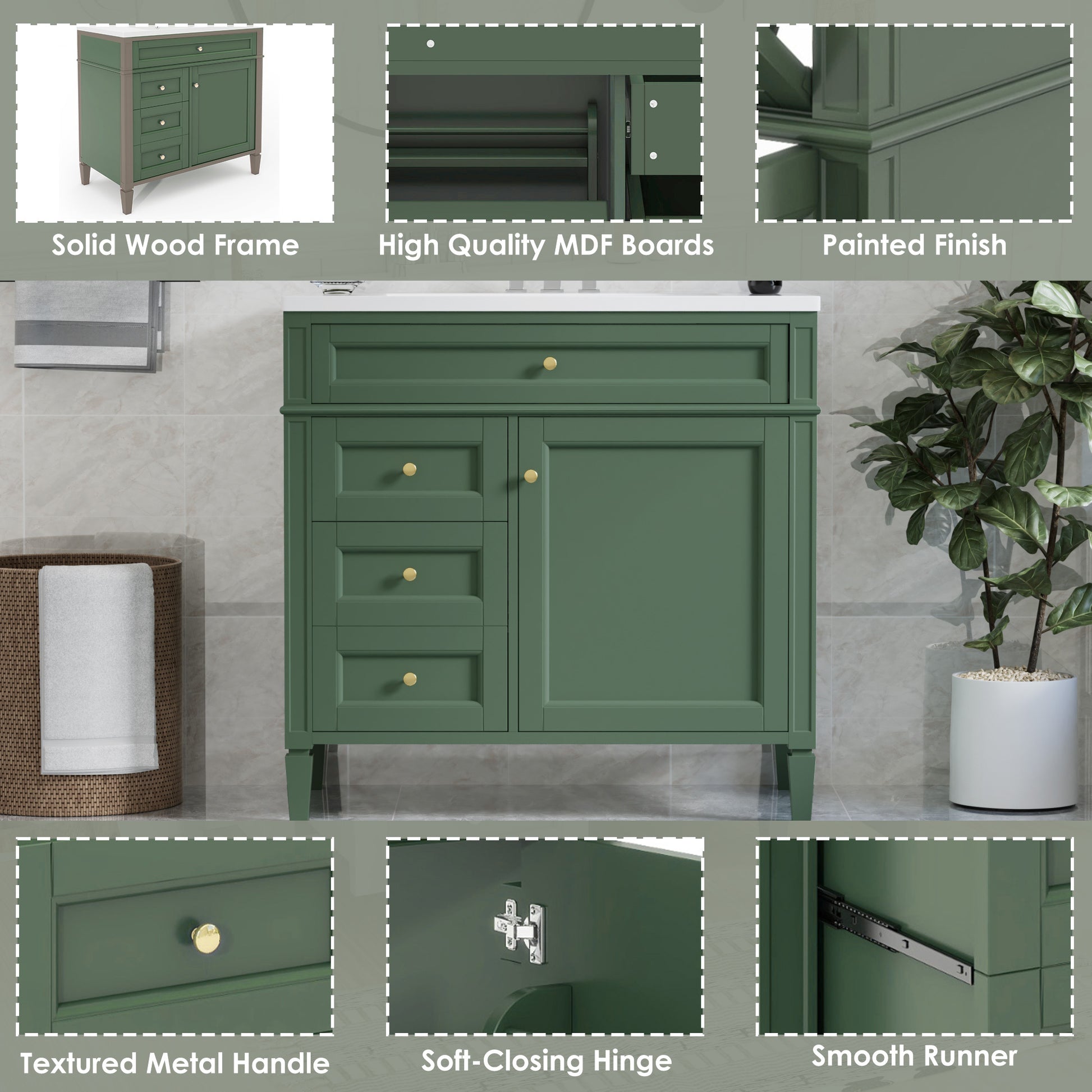 36'' Bathroom Vanity With Top Sink, Modern Bathroom Storage Cabinet With 2 Drawers And A Tip Out Drawer, Single Sink Bathroom Vanity 3 Green 1 1 Adjustable Hinges Bathroom Freestanding Solid Wood Mdf Resin Painted