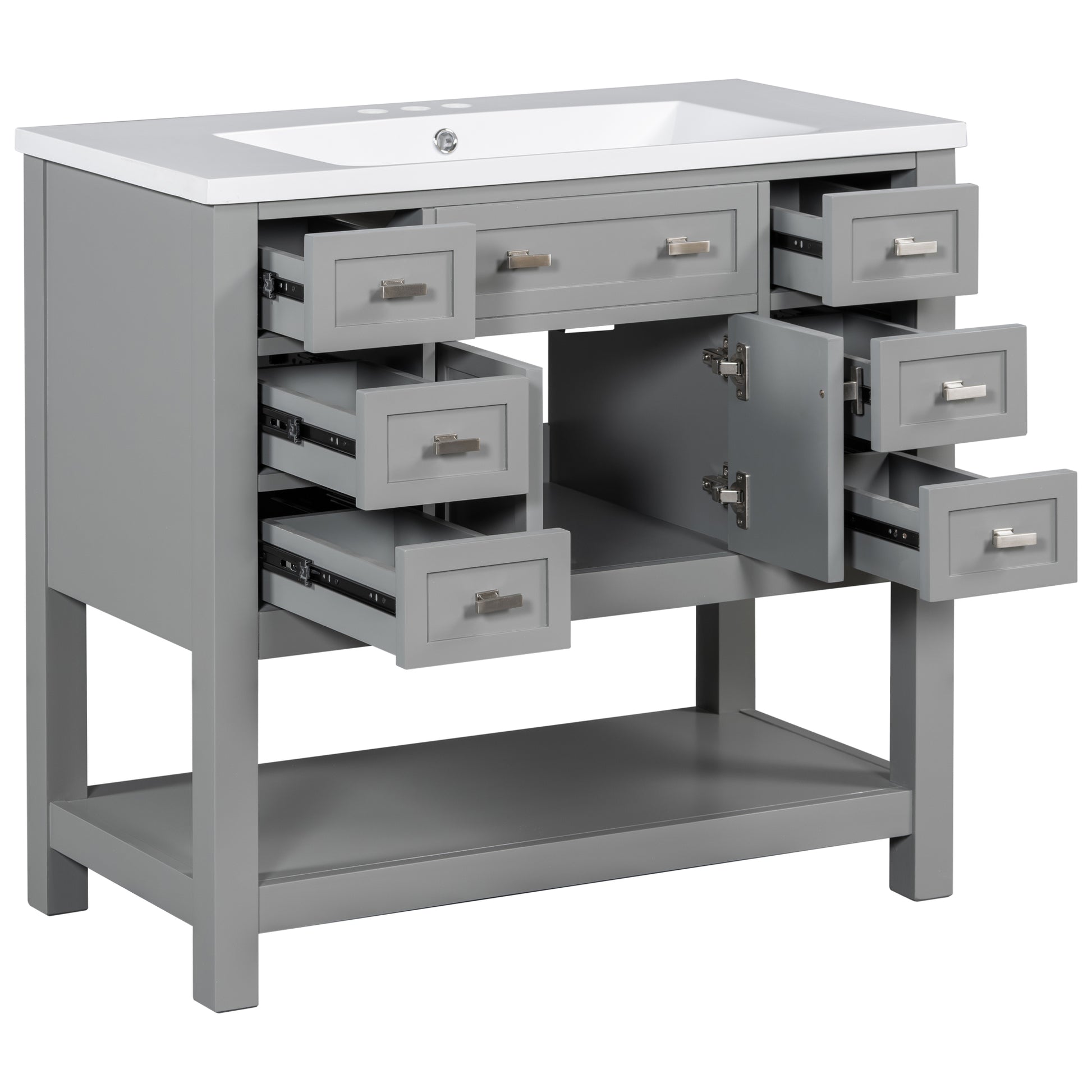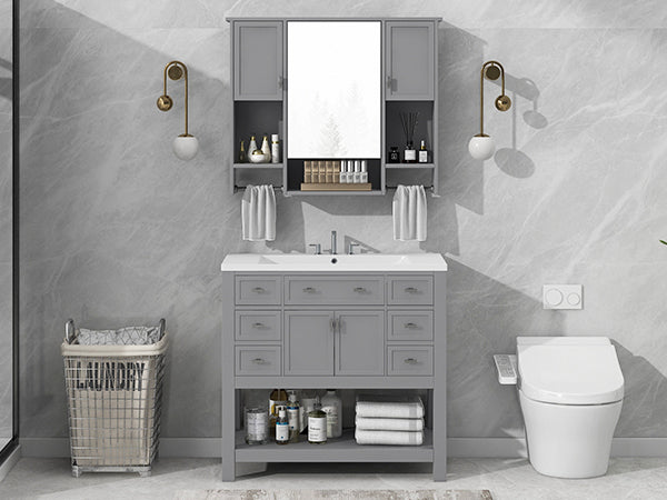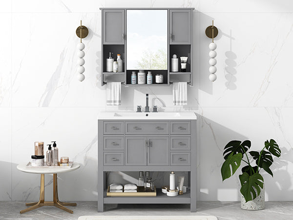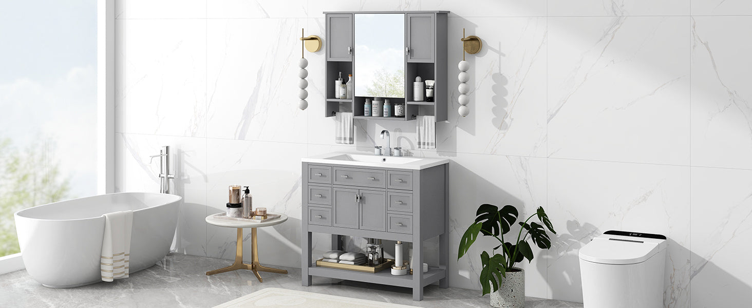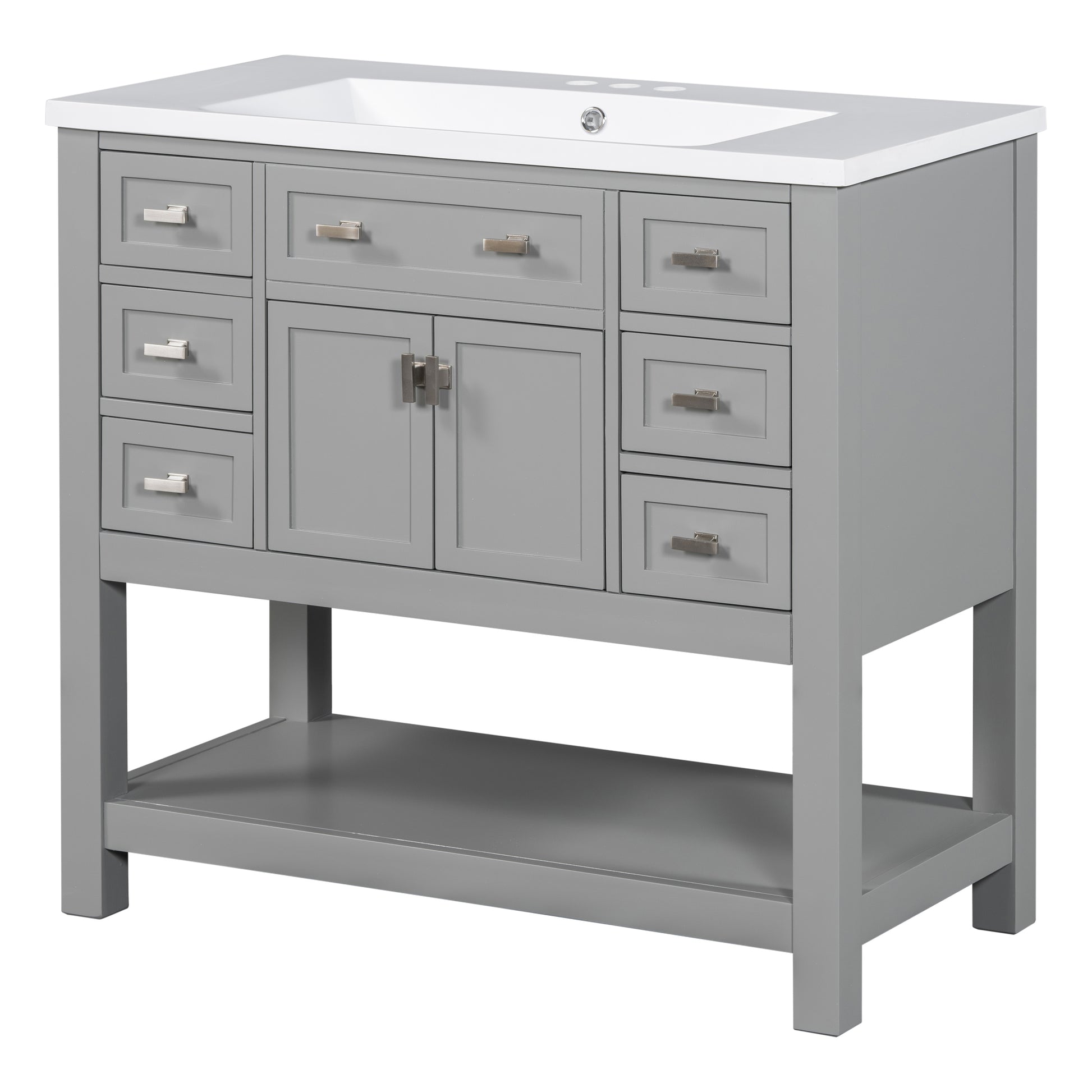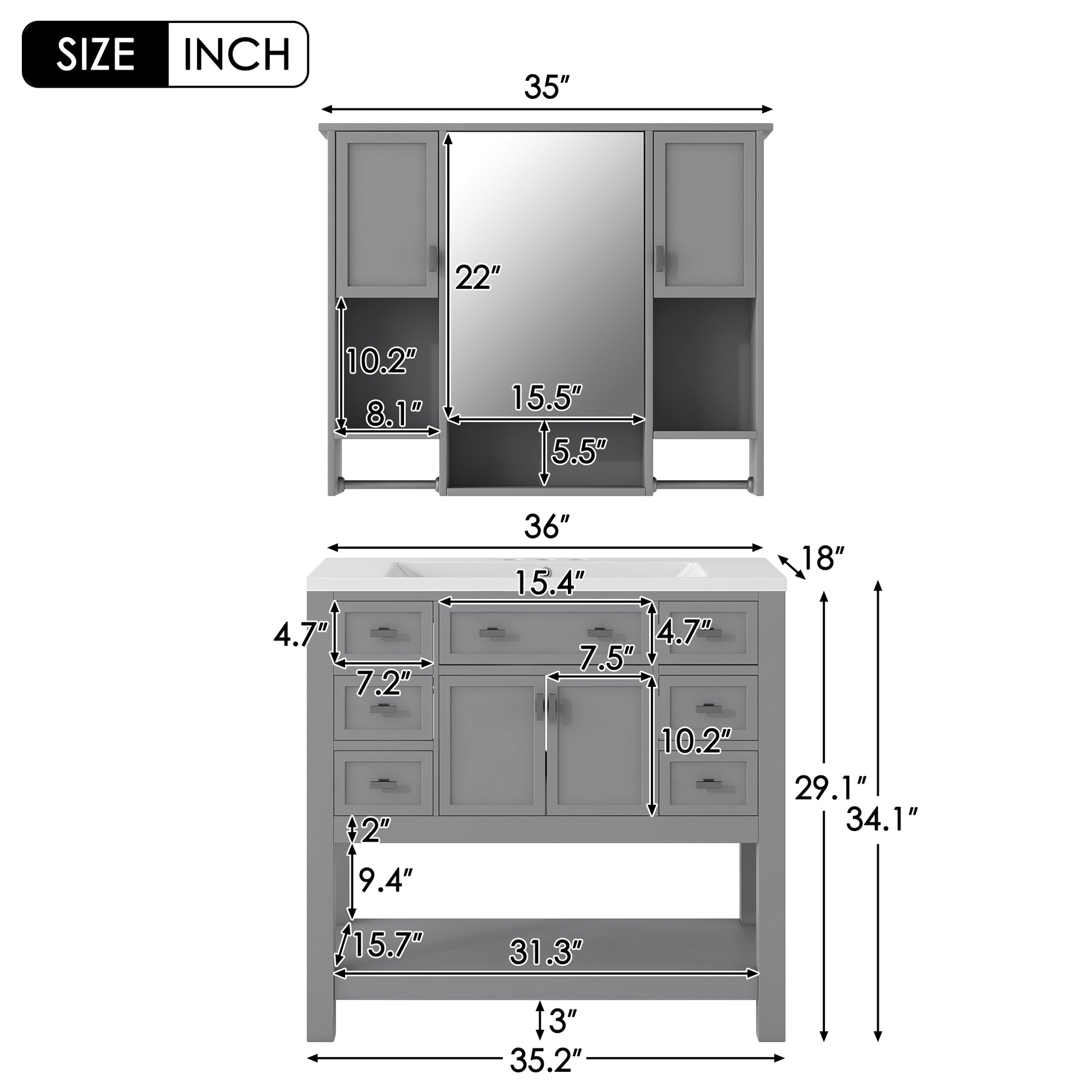 36'' Bathroom Vanity With Top Sink, Modern Mirror Cabinet With Towels Bar, Bathroom Storage Cabinet With 2 Soft Closing Doors And 6 Drawers, Single Sink Bathroom Vanity 4 Grey 4 Bathroom Freestanding Solid Wood Mdf Resin