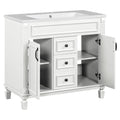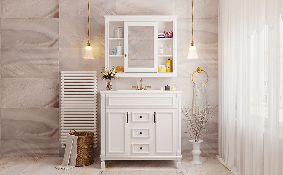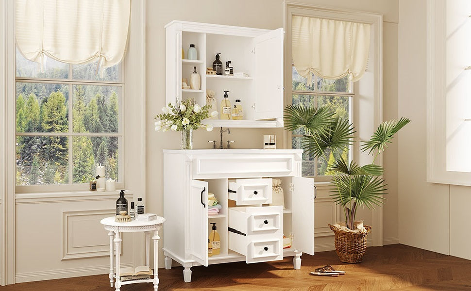 36'' Bathroom Vanity With Top Sink, White Mirror Cabinet, Modern Bathroom Storage Cabinet With 2 Soft Closing Doors And 2 Drawers, Single Sink Bathroom Vanity White Bathroom Mdf