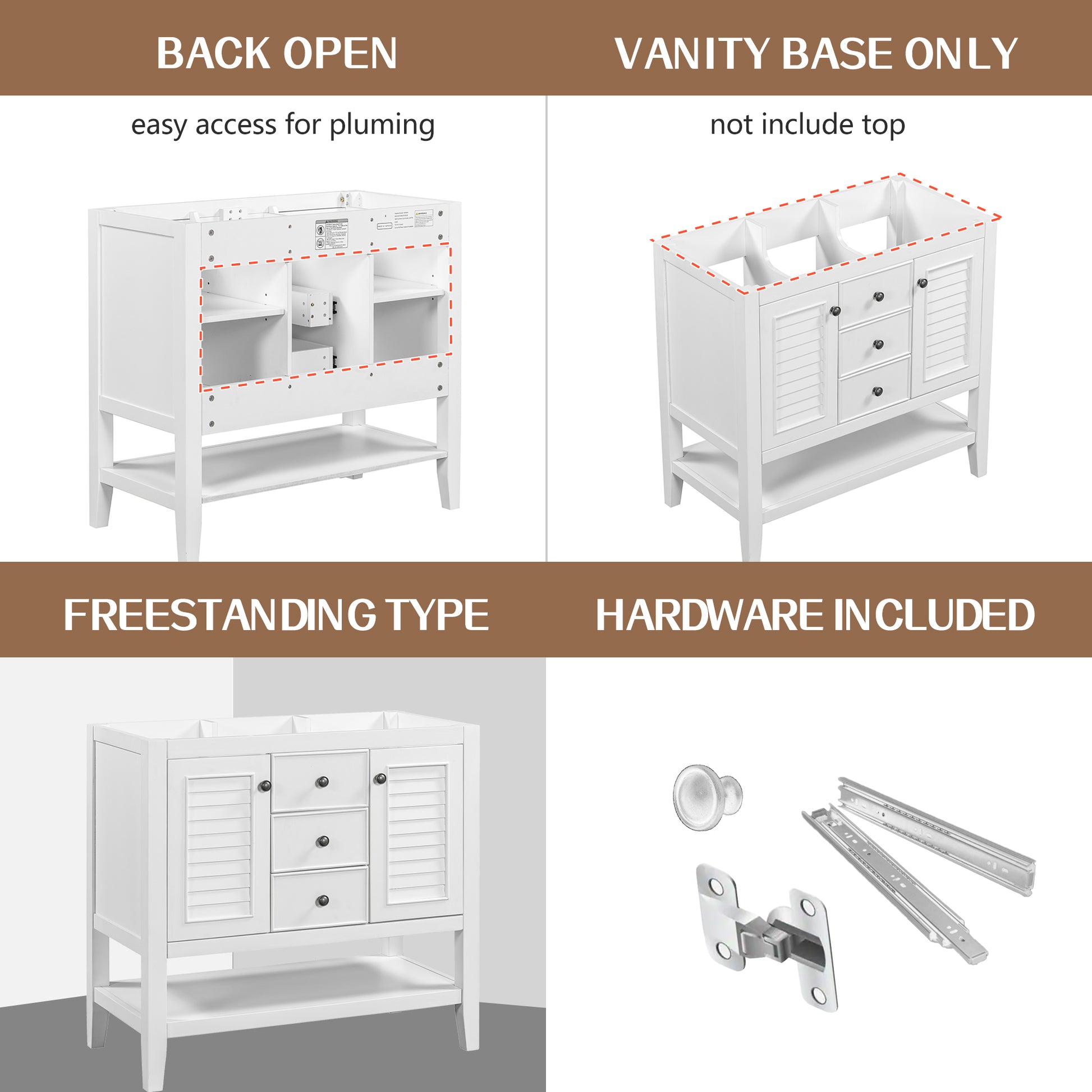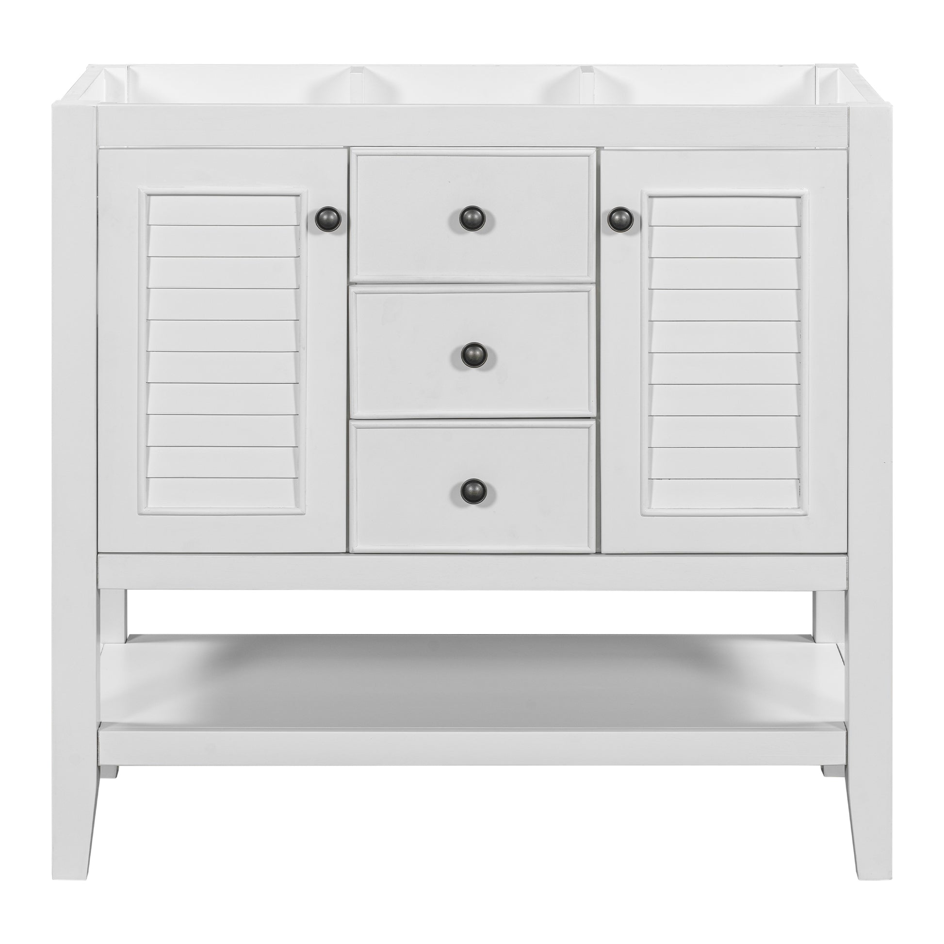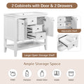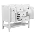 36" Bathroom Vanity Without Sink, Cabinet Base Only, Two Cabinets And Drawers, Open Shelf, Solid Wood Frame, White White Solid Wood Mdf