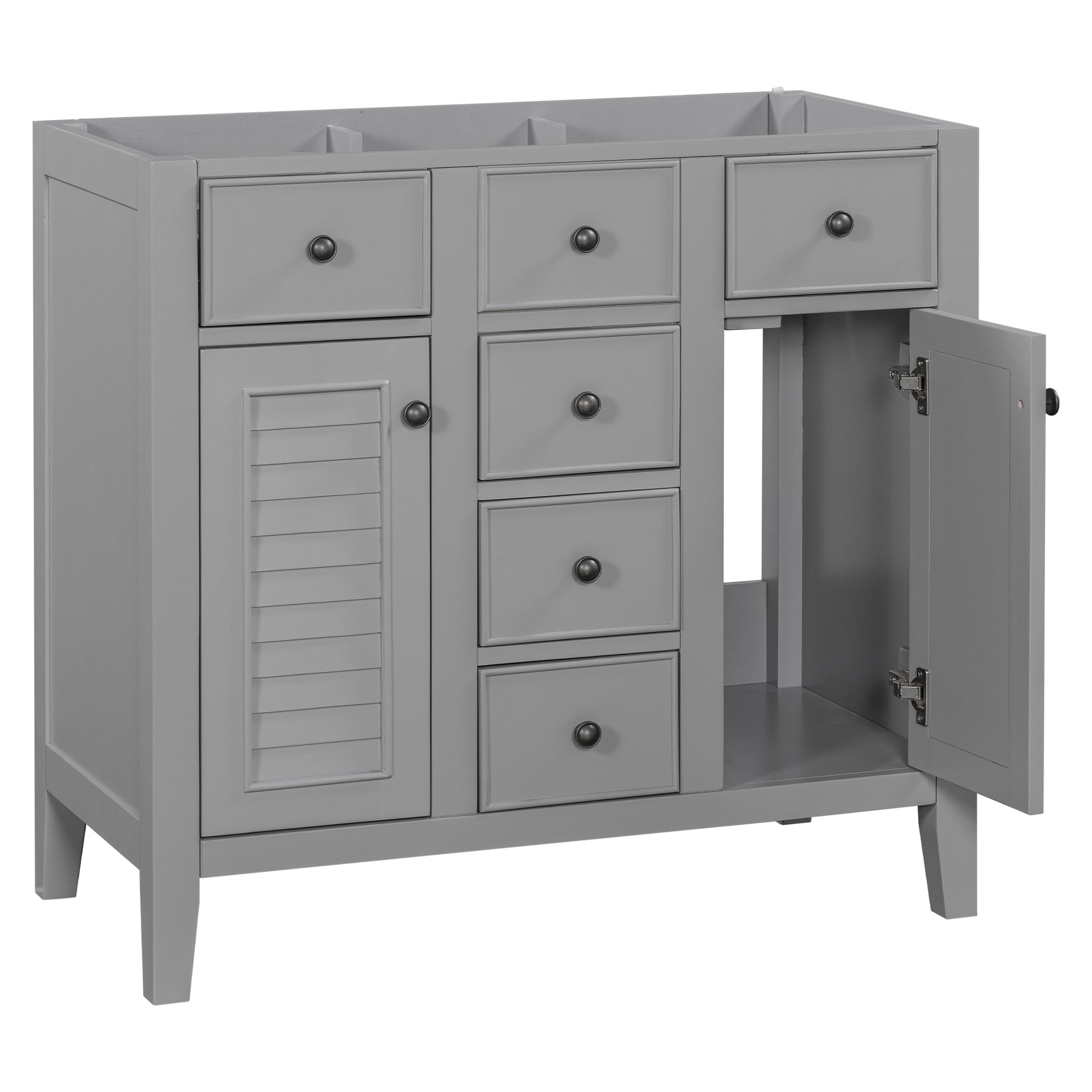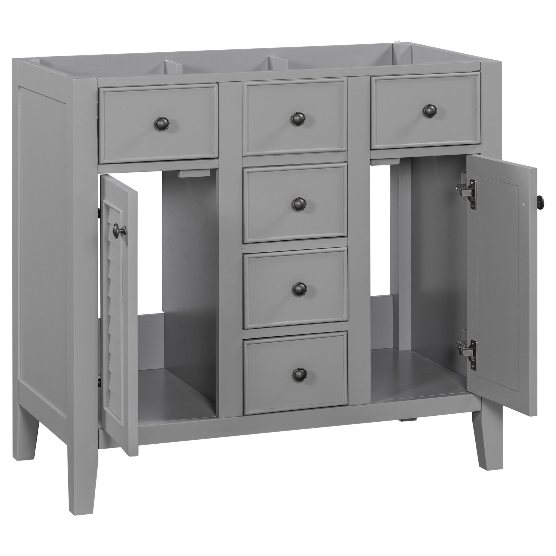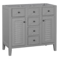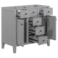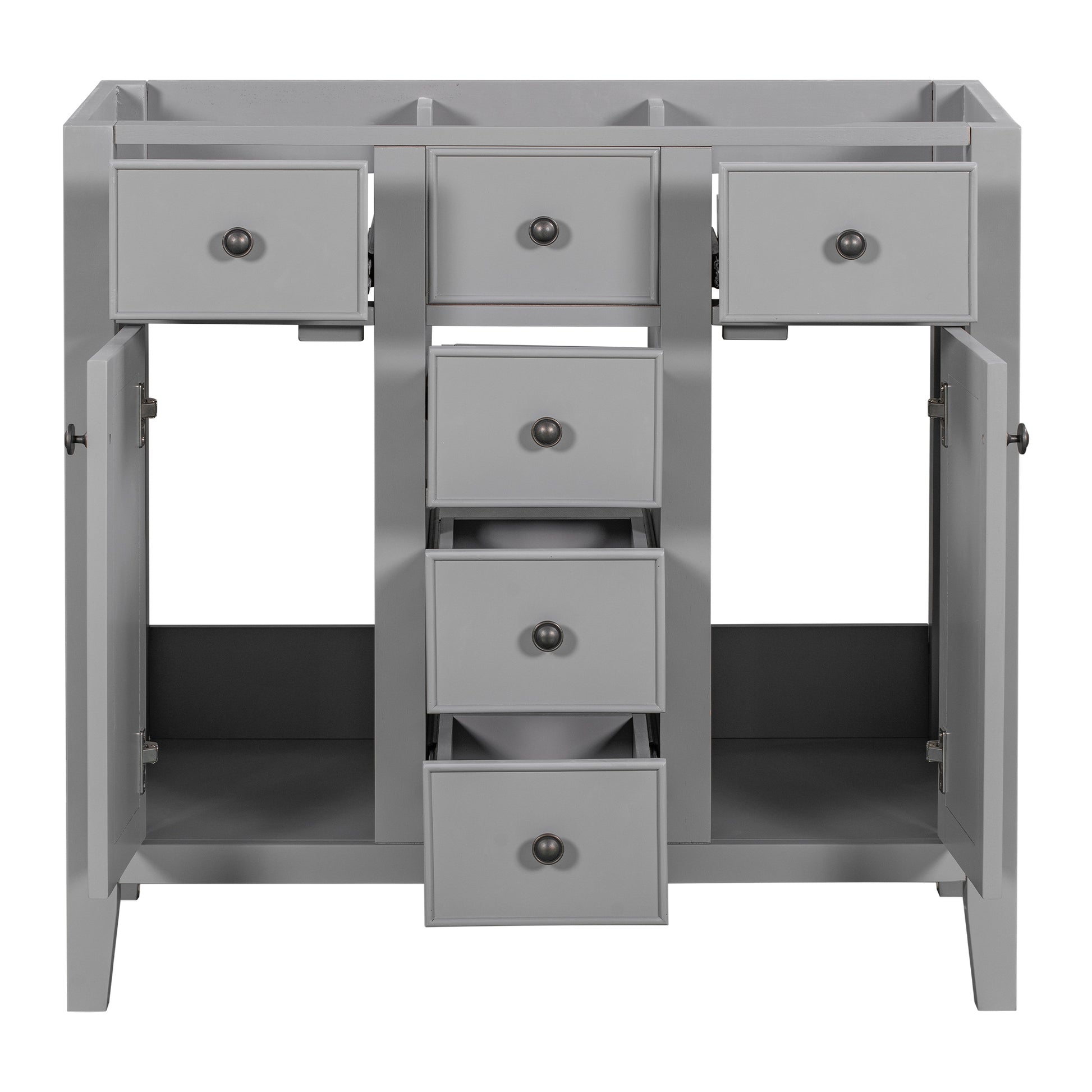 36" Bathroom Vanity Without Sink, Cabinet Base Only, Two Cabinets And Five Drawers, Solid Wood Frame, Grey Grey Solid Wood Mdf