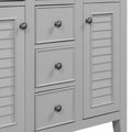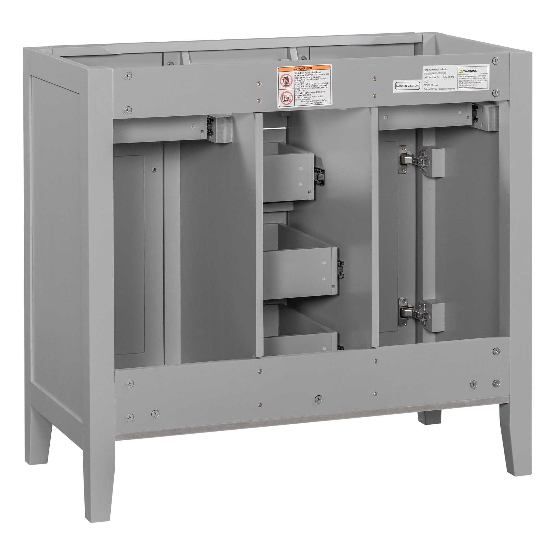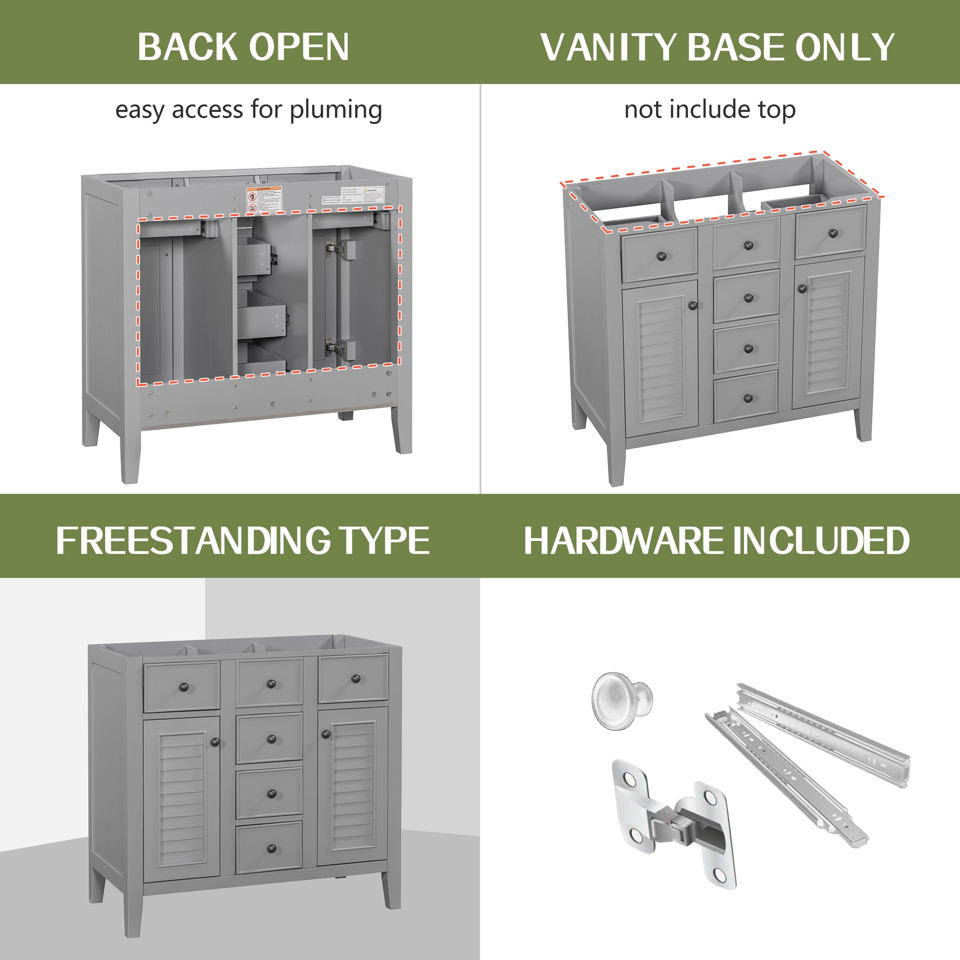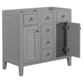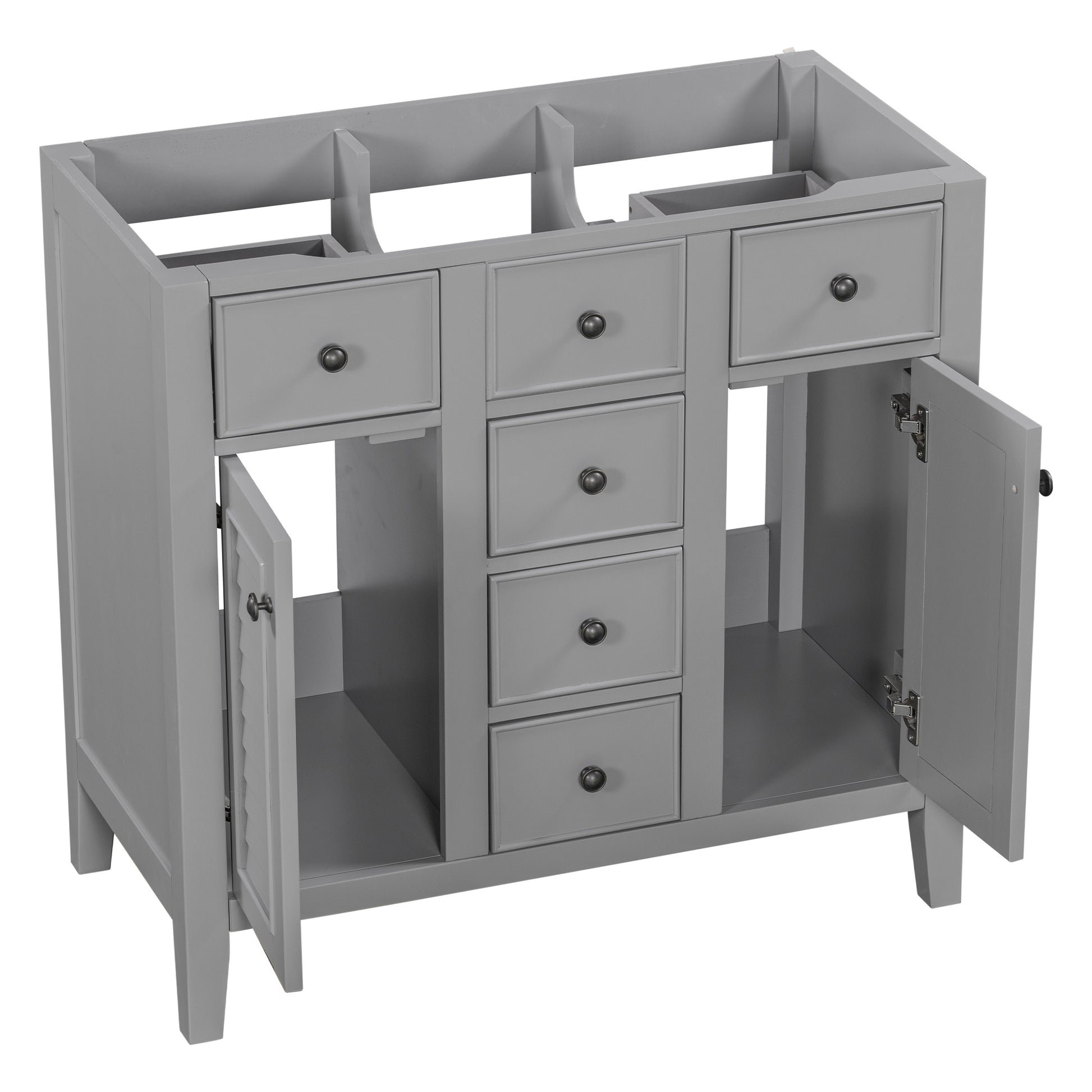 36" Bathroom Vanity Without Sink, Cabinet Base Only, Two Cabinets And Five Drawers, Solid Wood Frame, Grey Grey Solid Wood Mdf