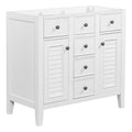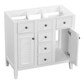 36" Bathroom Vanity Without Sink, Cabinet Base Only, Two Cabinets And Five Drawers, Solid Wood Frame, White White Solid Wood Mdf