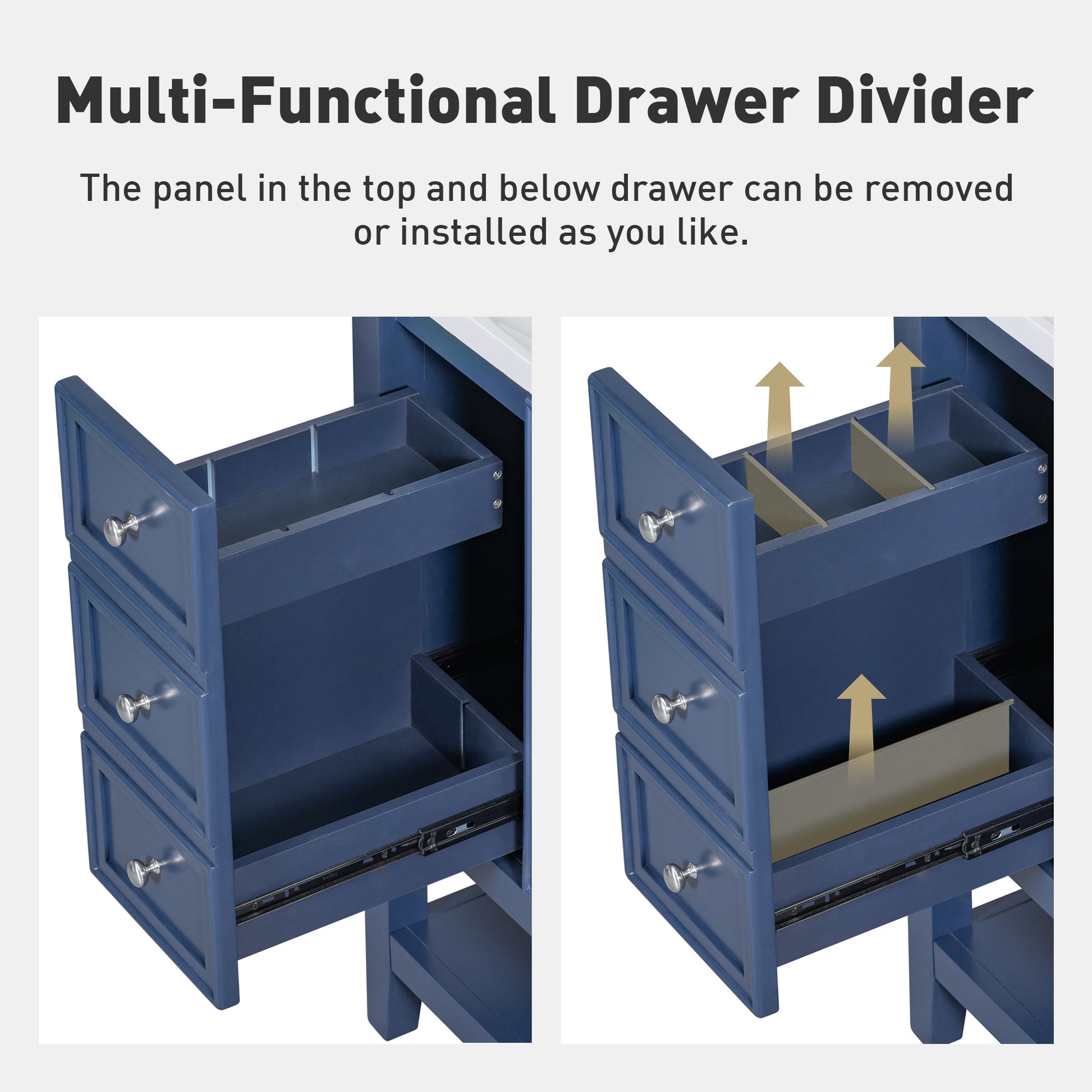 36" Bathroom Vanity Without Sink, Cabinet Base Only, One Cabinet And Three Drawers, Blue Blue Solid Wood Mdf