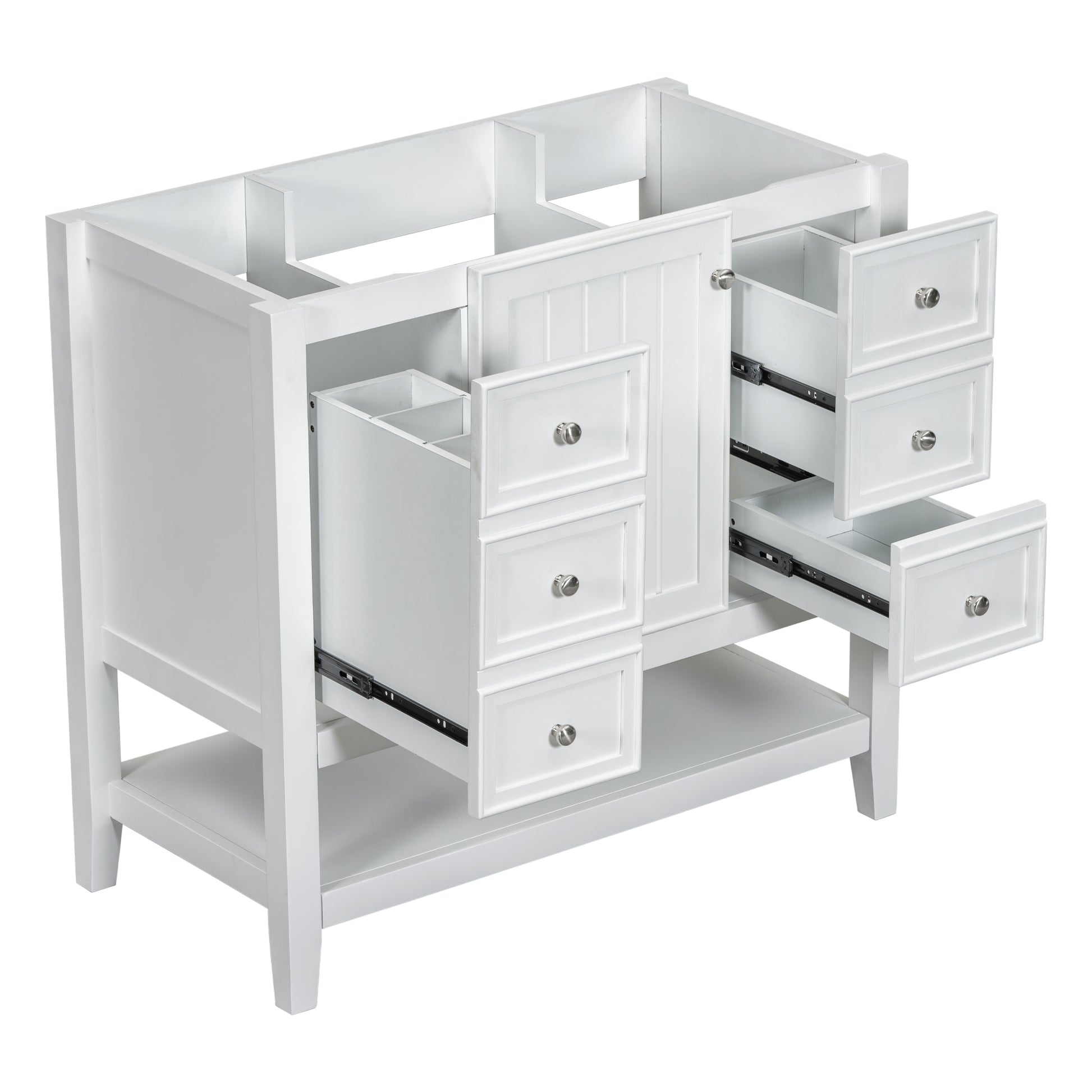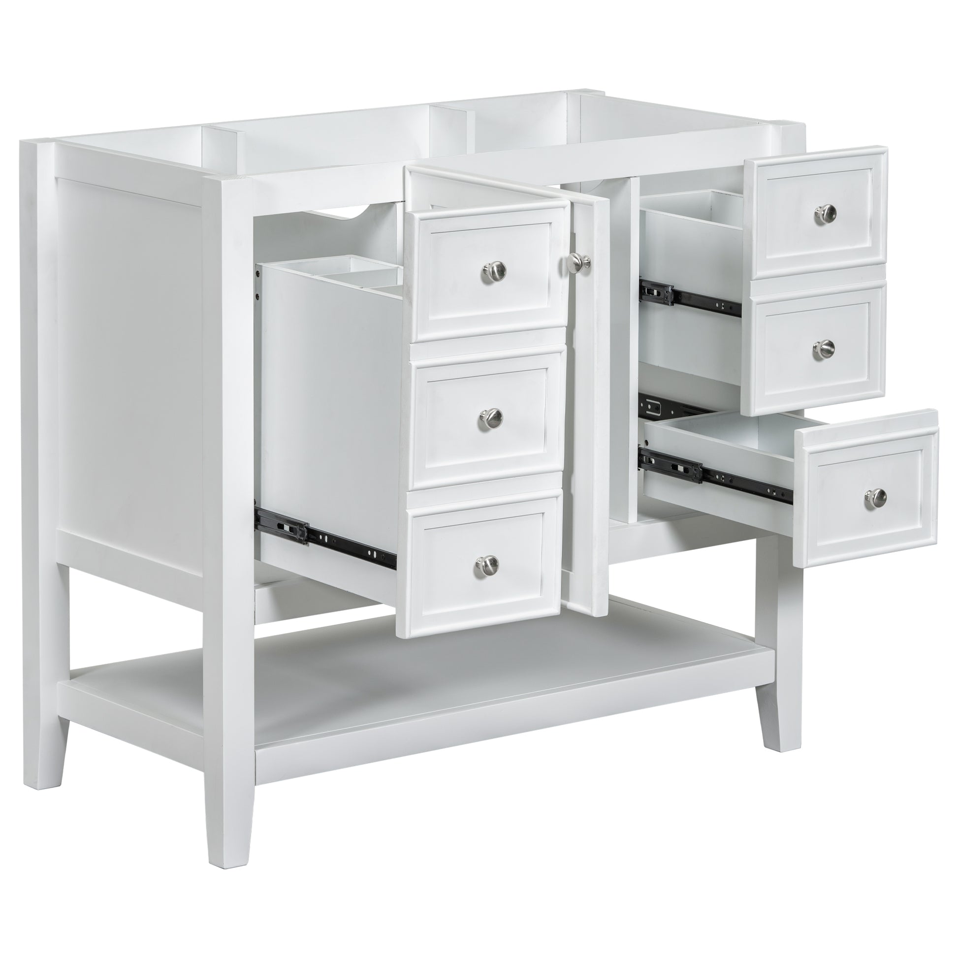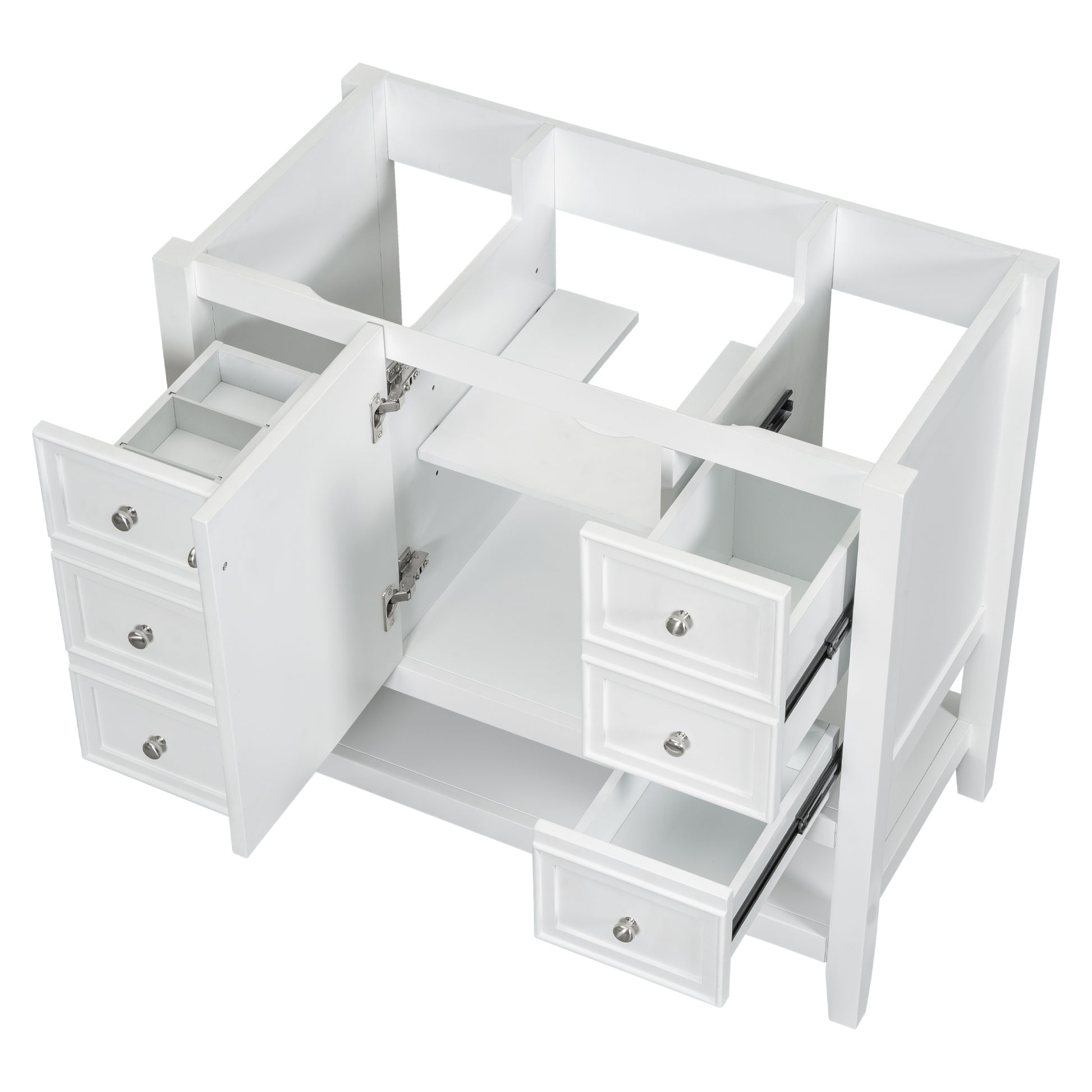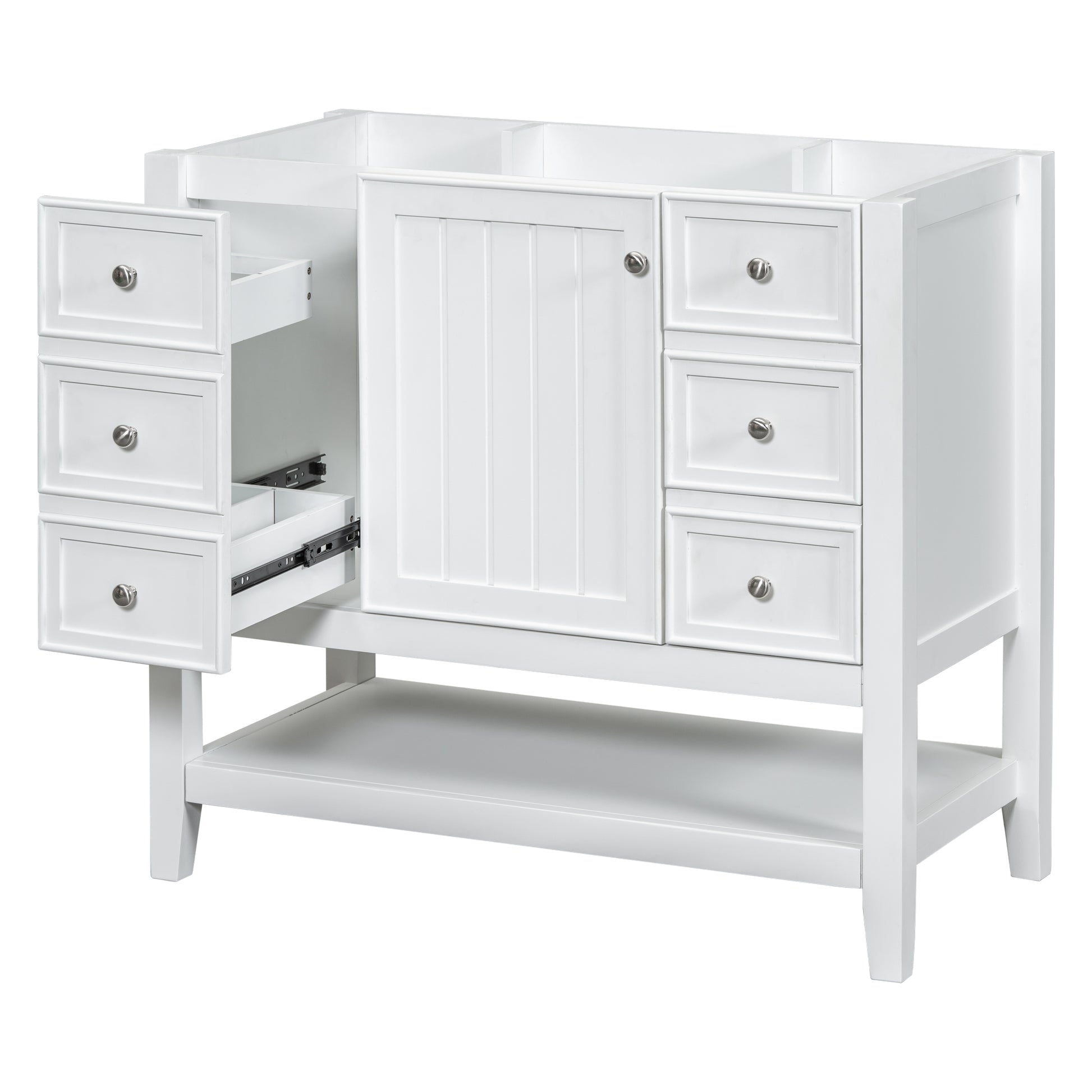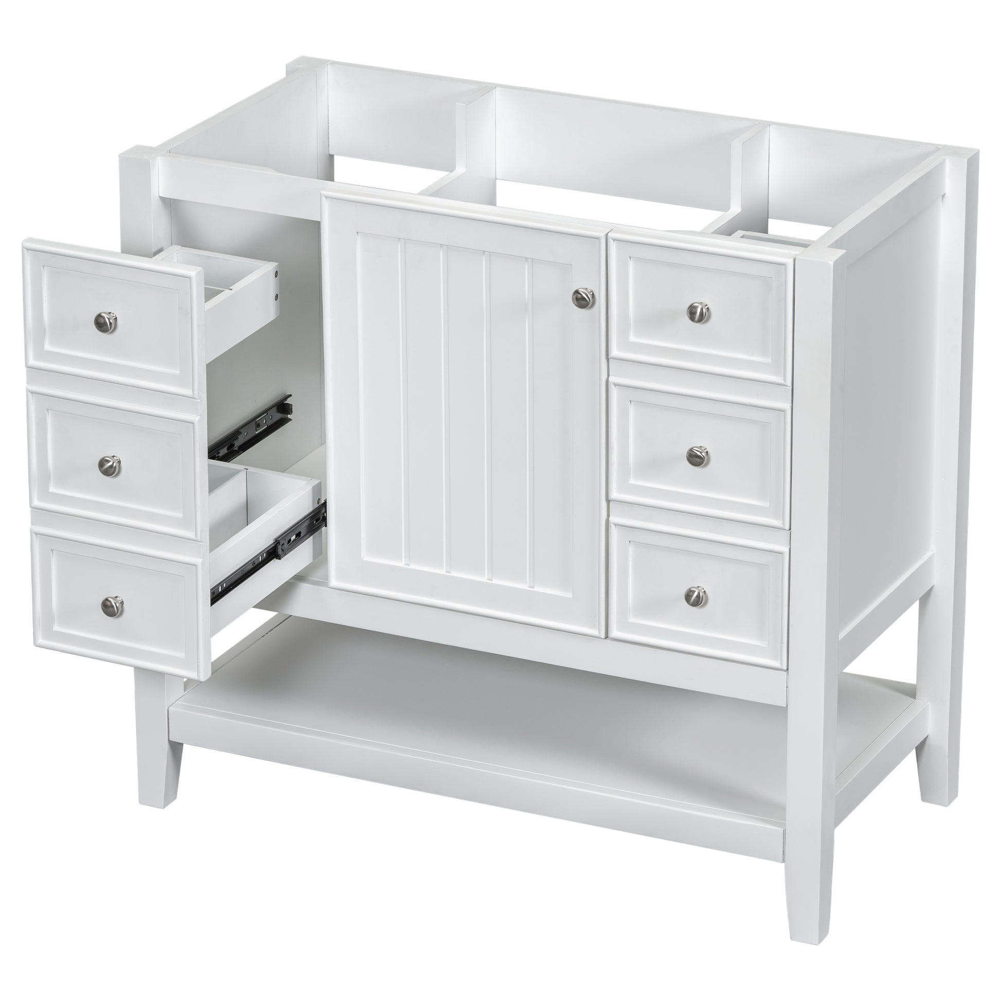 36" Bathroom Vanity Without Sink, Cabinet Base Only, One Cabinet And Three Drawers, White White Solid Wood Mdf