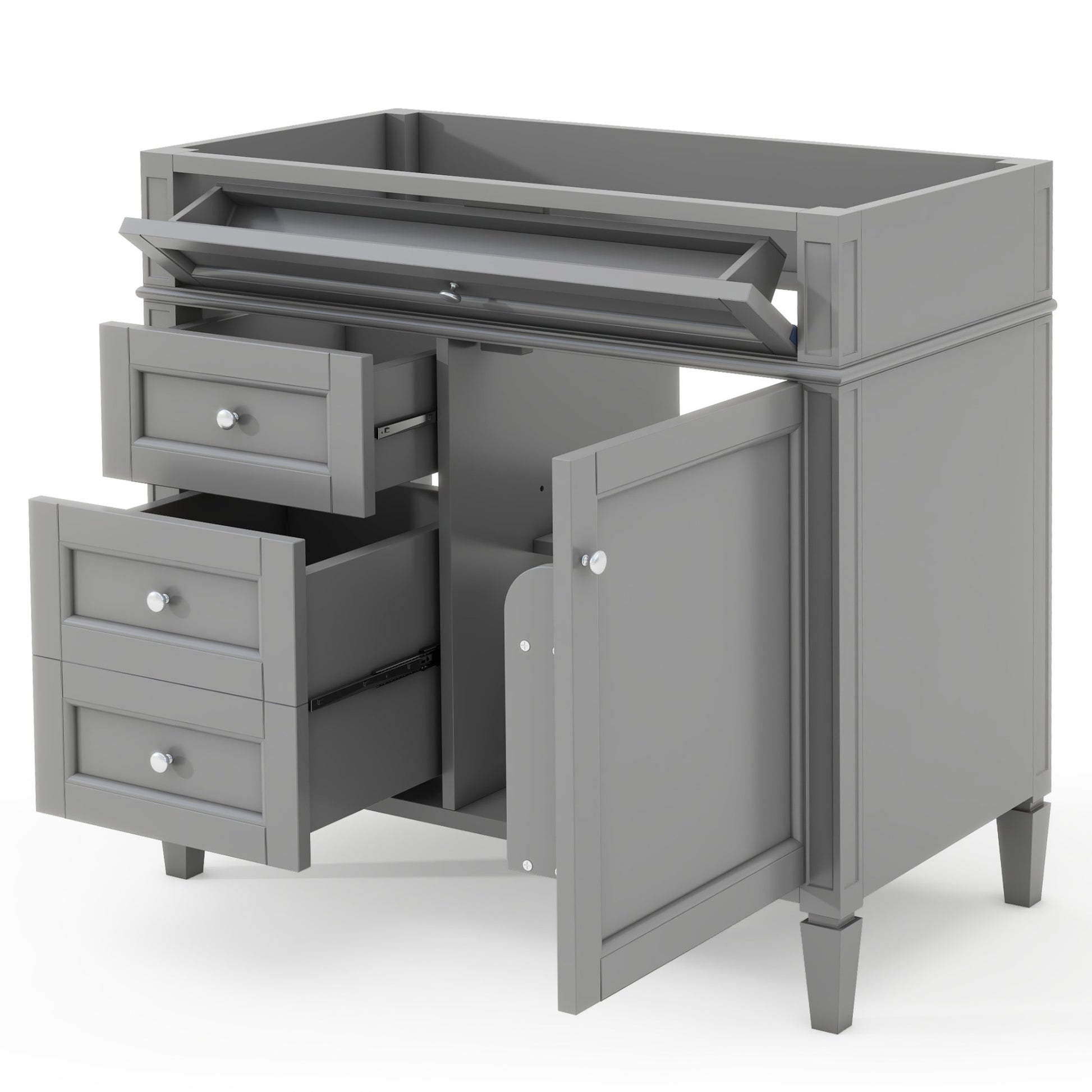 36'' Bathroom Vanity Without Top Sink, Modern Bathroom Storage Cabinet With 2 Drawers And A Tip Out Drawer, Solid Wood Frame Not Include Basin Sink 3 Grey 1 1 Adjustable Hinges Bathroom Freestanding Solid Wood Mdf Painted