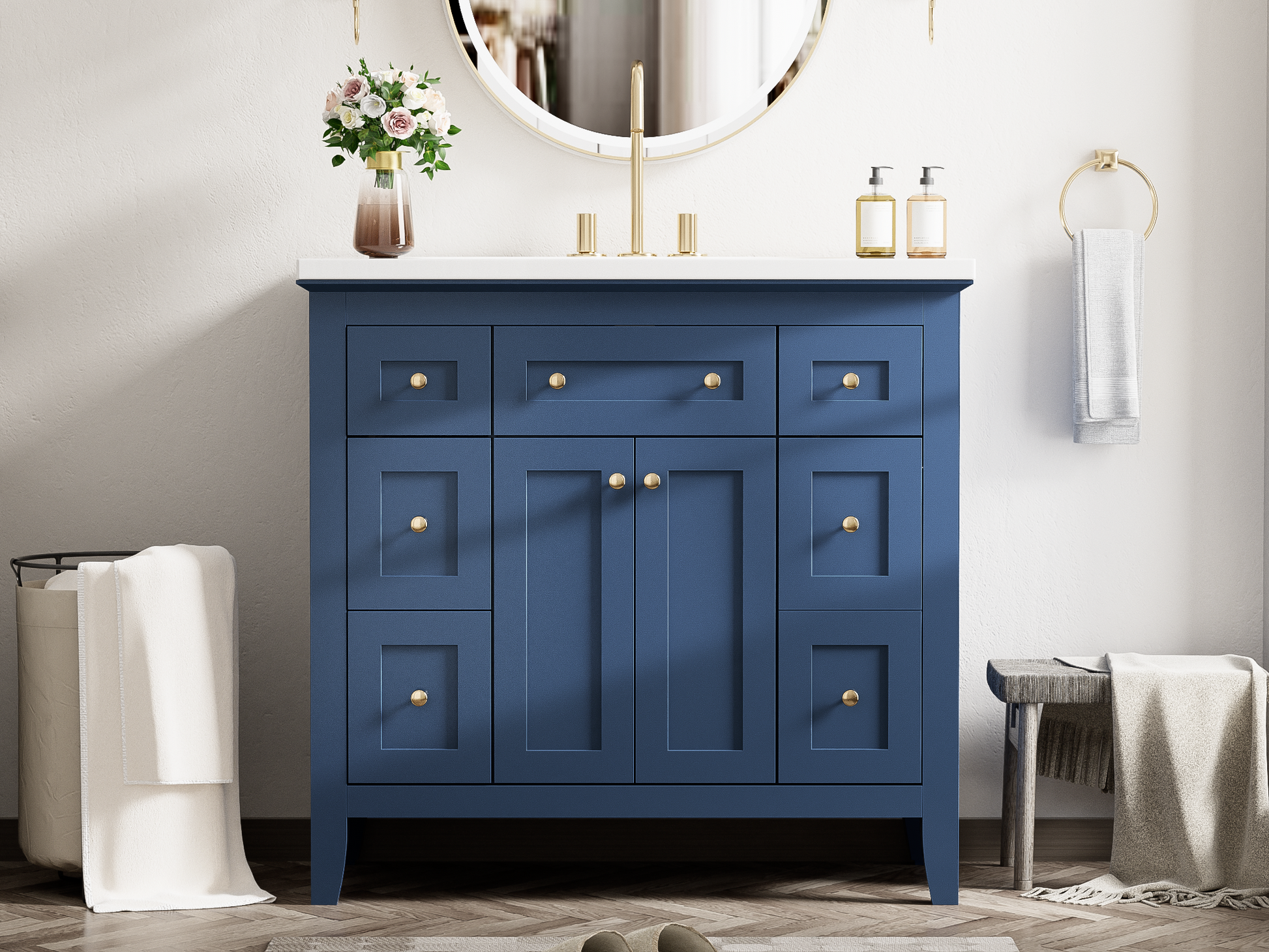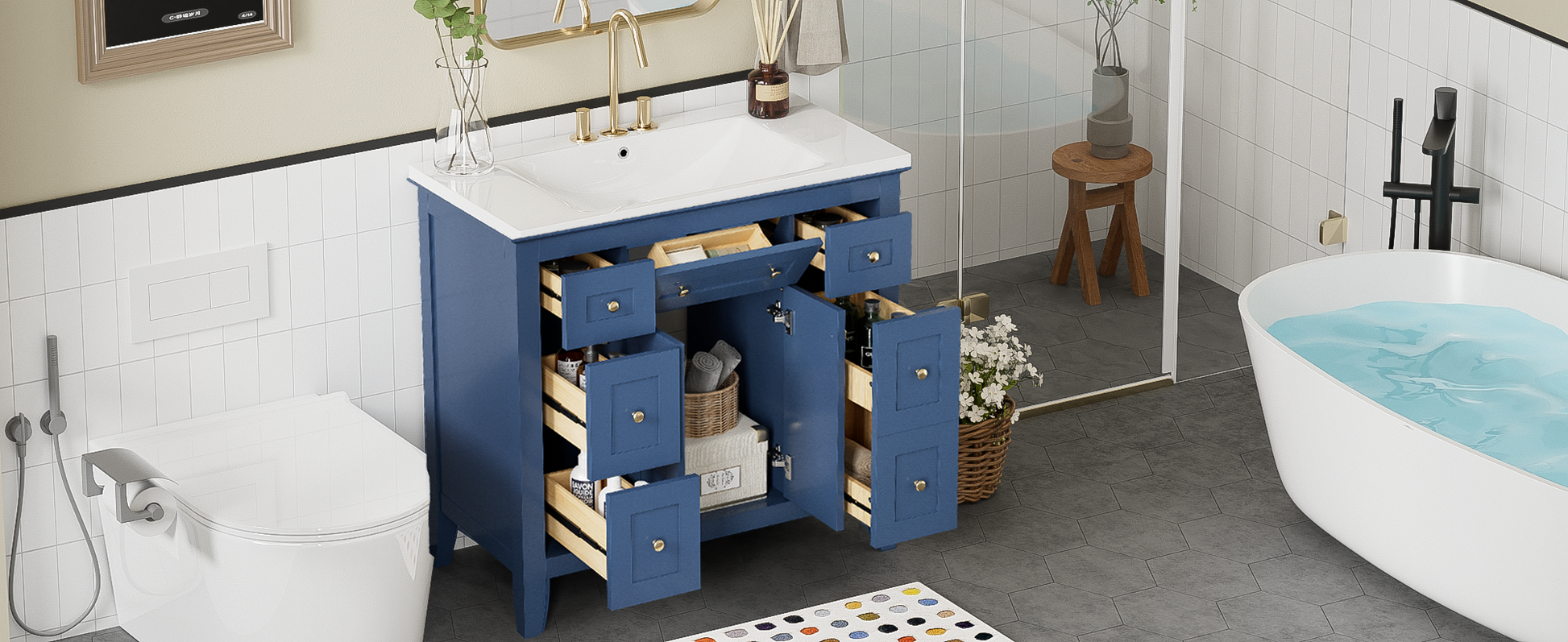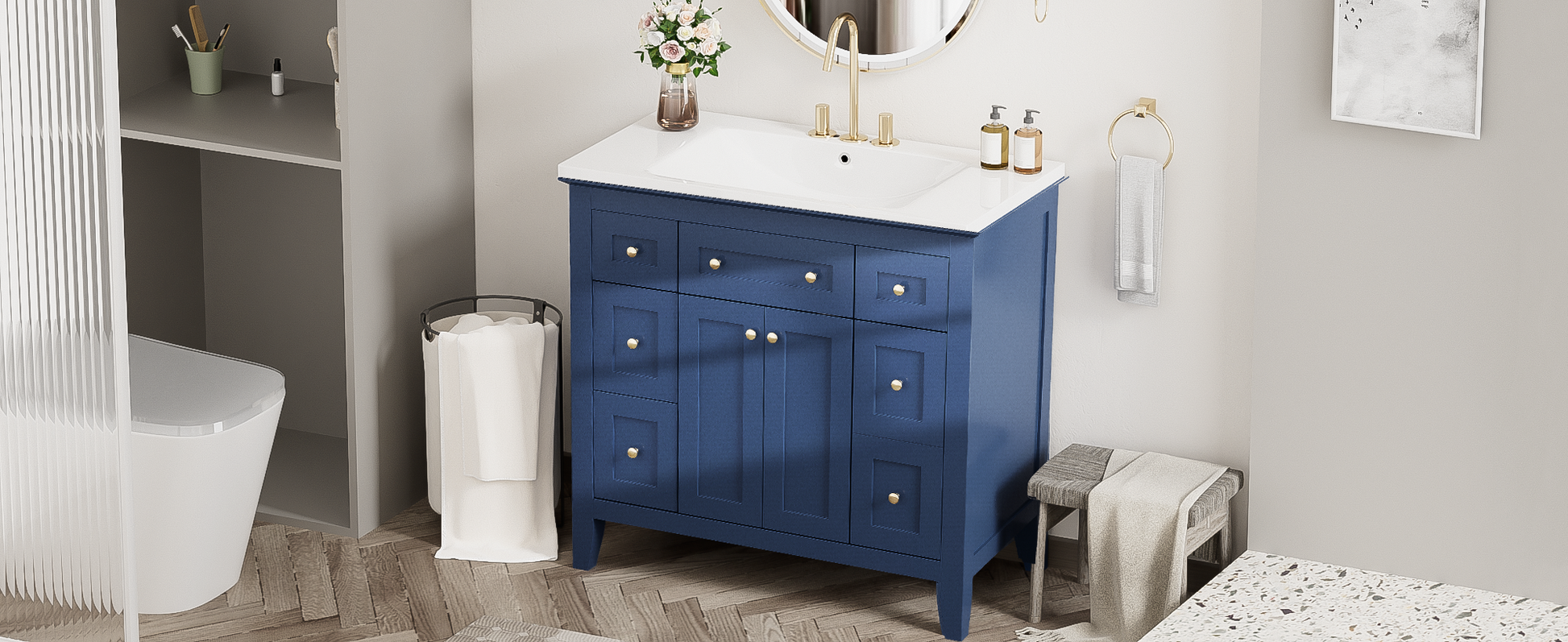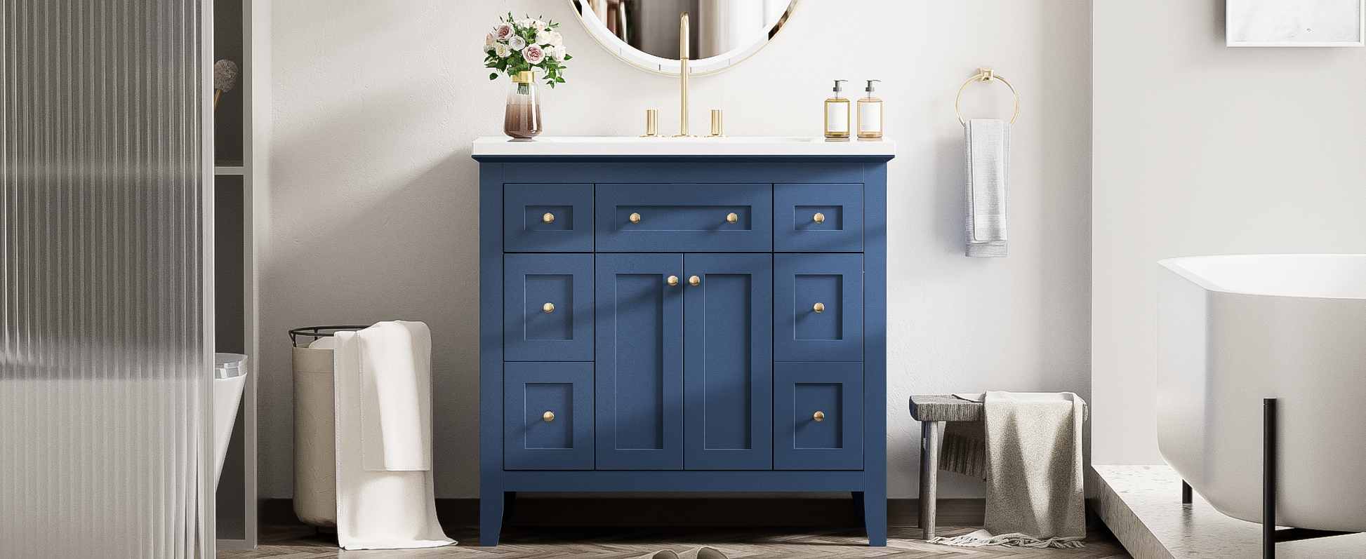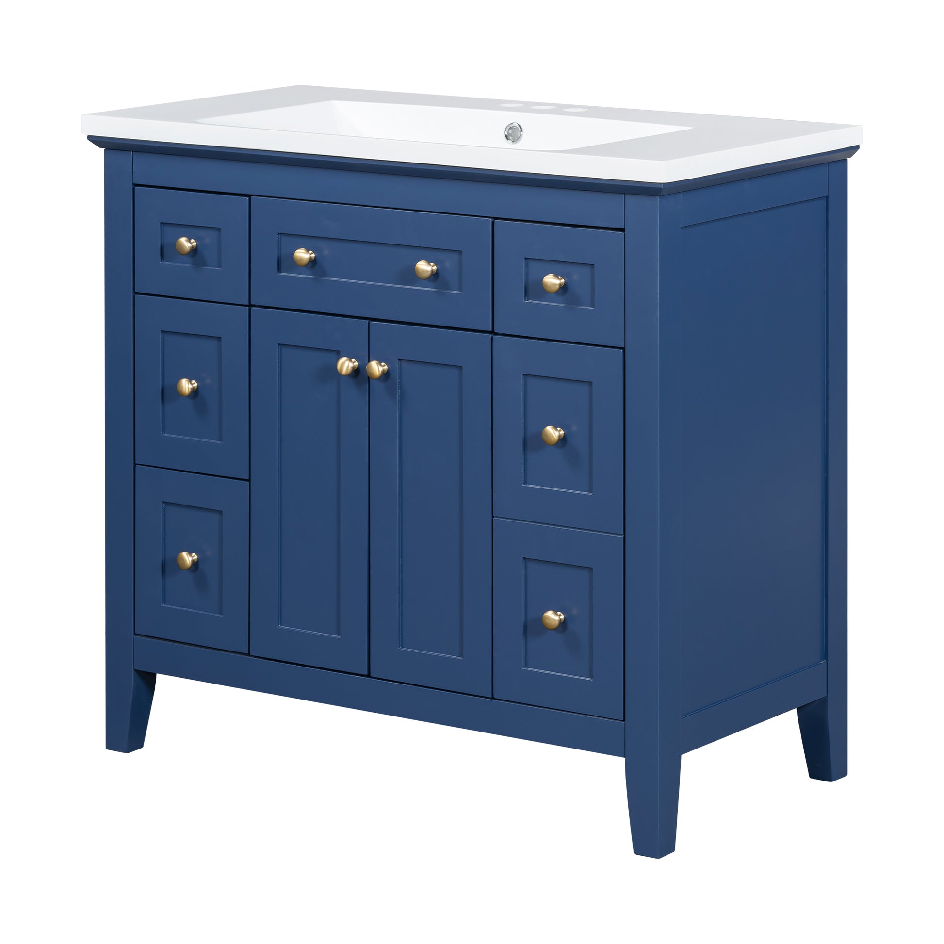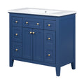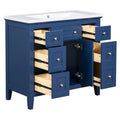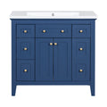 36'' Bathroon Vanity With Resin Sink Combo Set, Modern Freestanding Single Bathroom Cabinet With 6 Drawers & 2 Cabinets, Storage Cabinet For Bathroom, Solid Wood Frame Vanity Set, Blue 4 Blue 2 2 Bathroom Freestanding Solid Wood Mdf Resin Painted