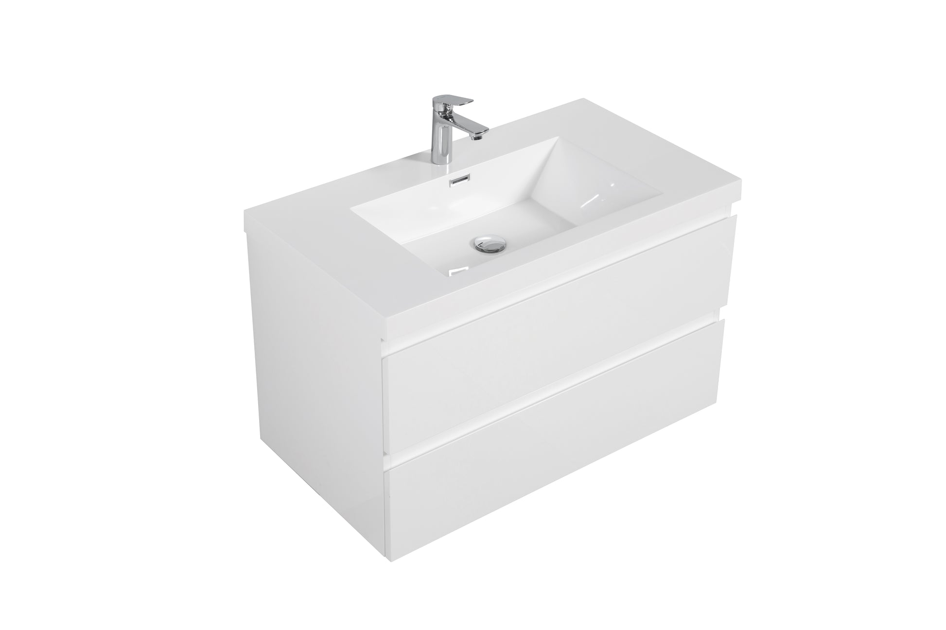 36" Floating Bathroom Vanity With Sink, Modern Wall Mounted Bathroom Storage Vanity Cabinet With Resin Top Basin And Soft Close Drawers, Glossy White 24V11 36Gw 2 Glossy White Bathroom Wall Mounted