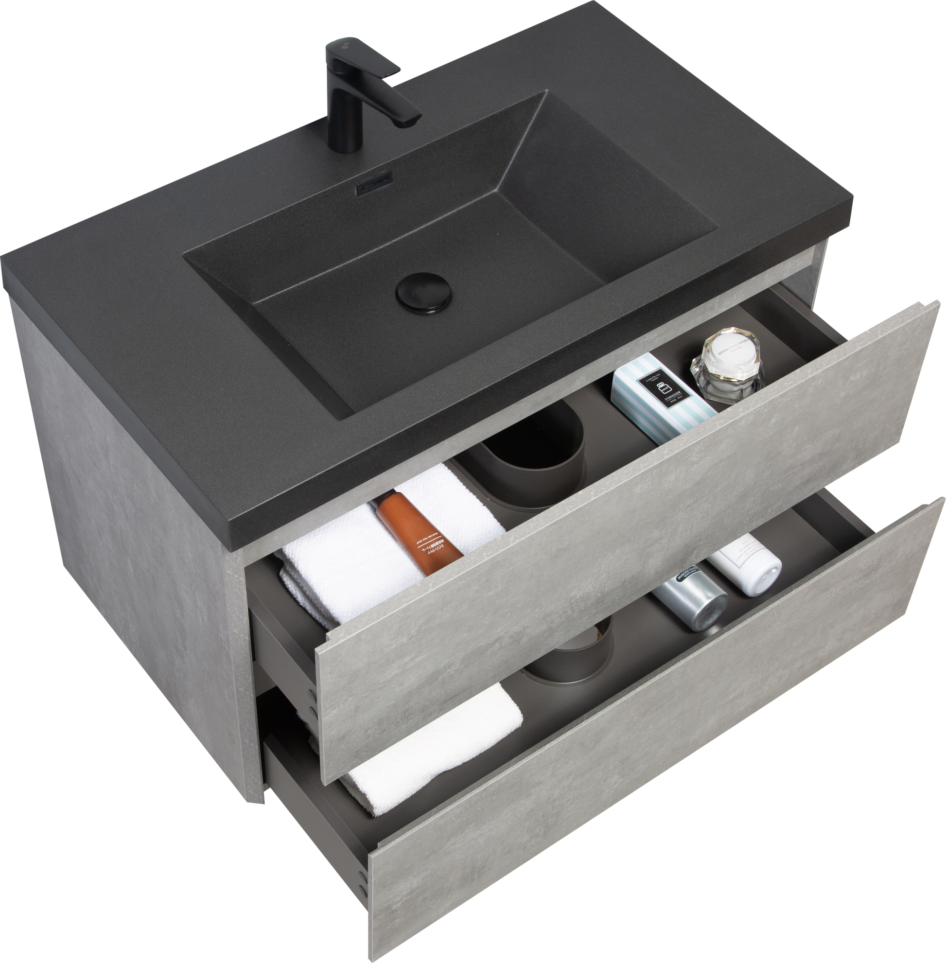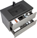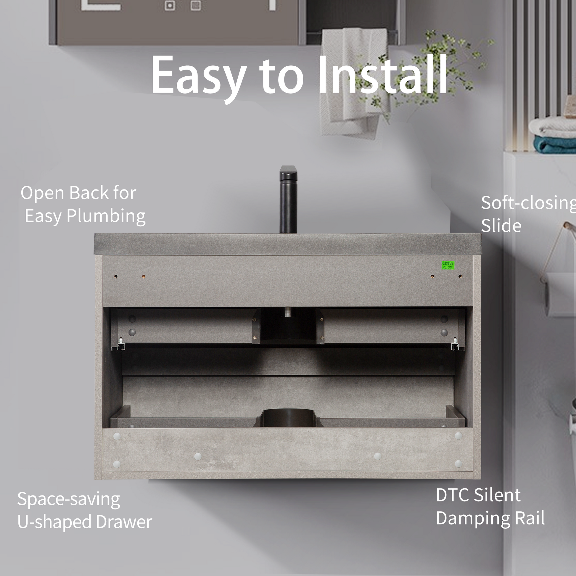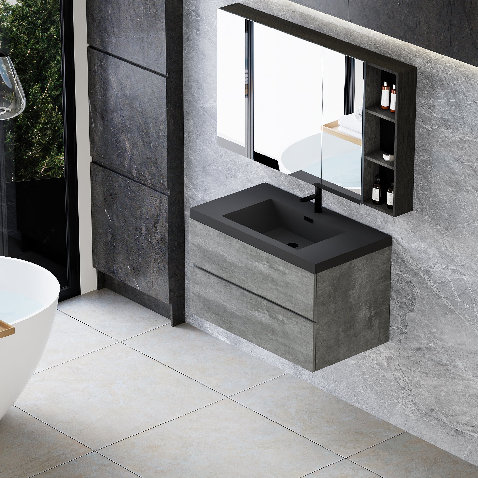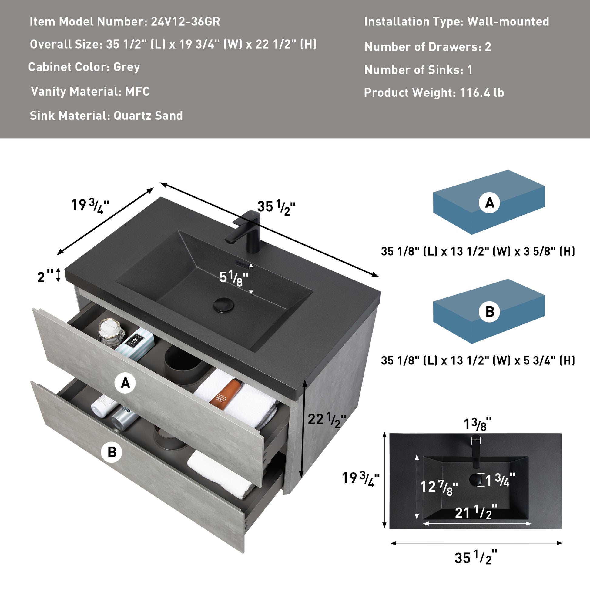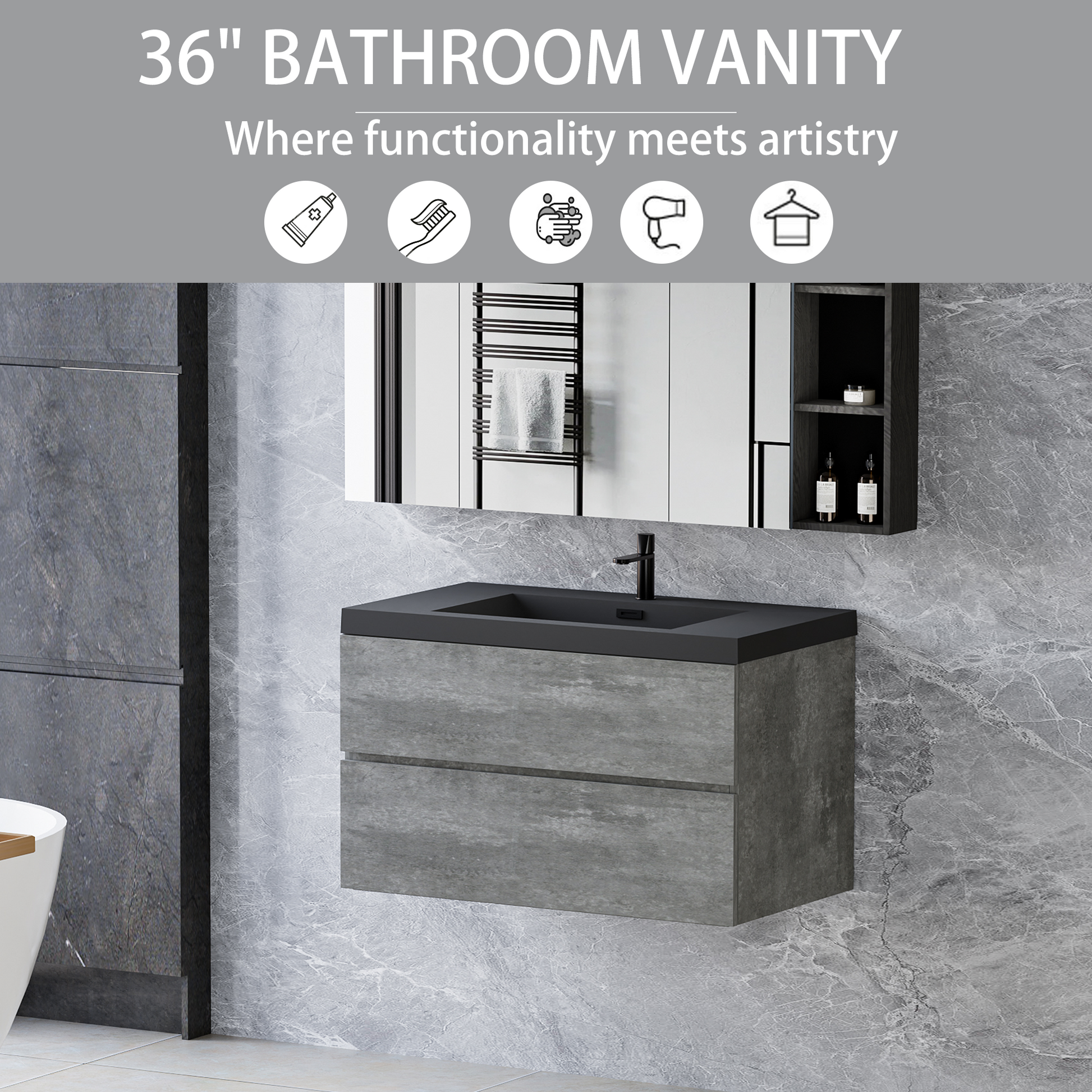 36" Floating Bathroom Vanity With Sink, Modern Wall Mounted Bathroom Storage Vanity Cabinet With Black Quartz Sand Top Basin And Soft Close Drawers, Grey 24V12 36Gr 2 Grey Plywood