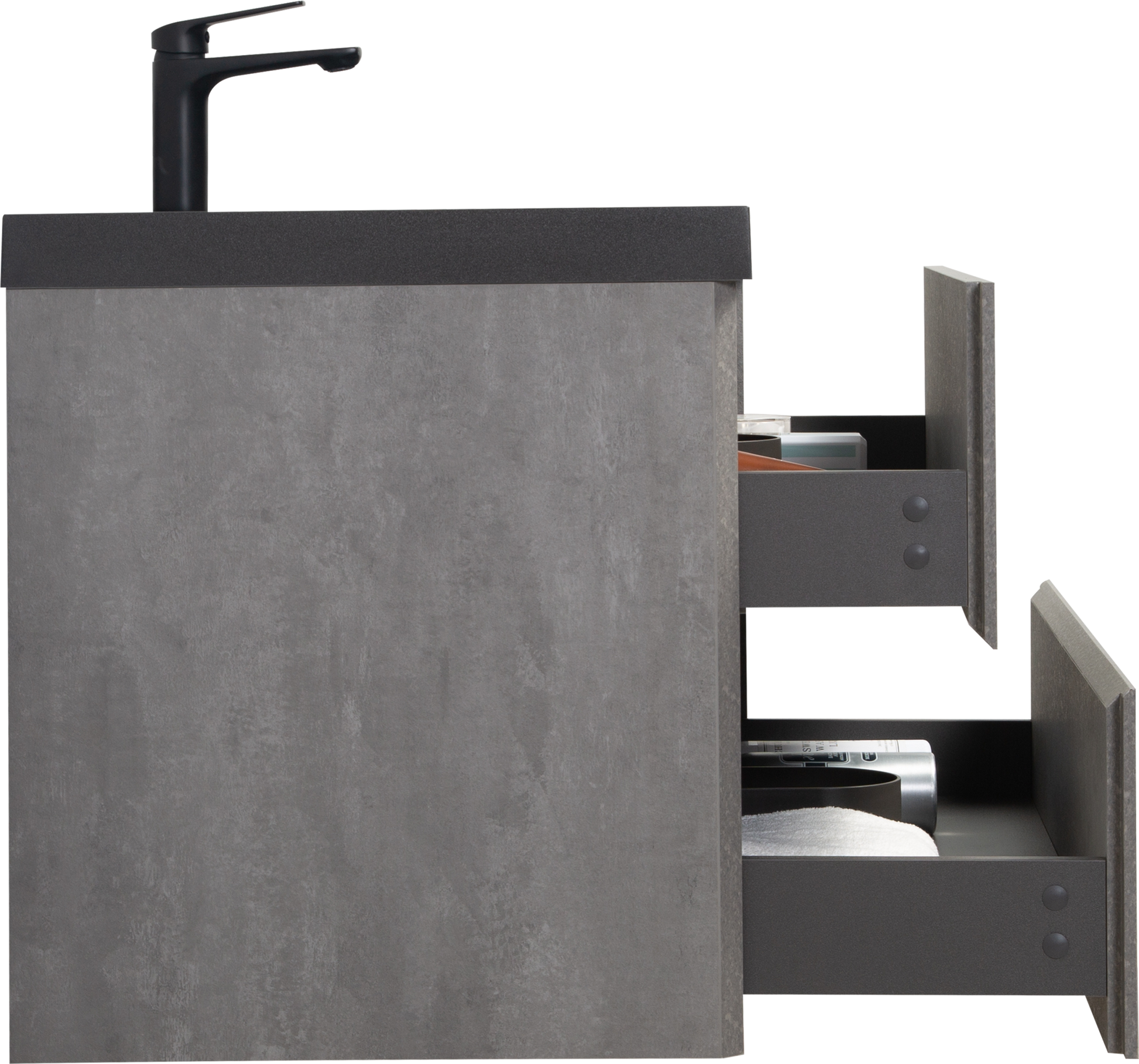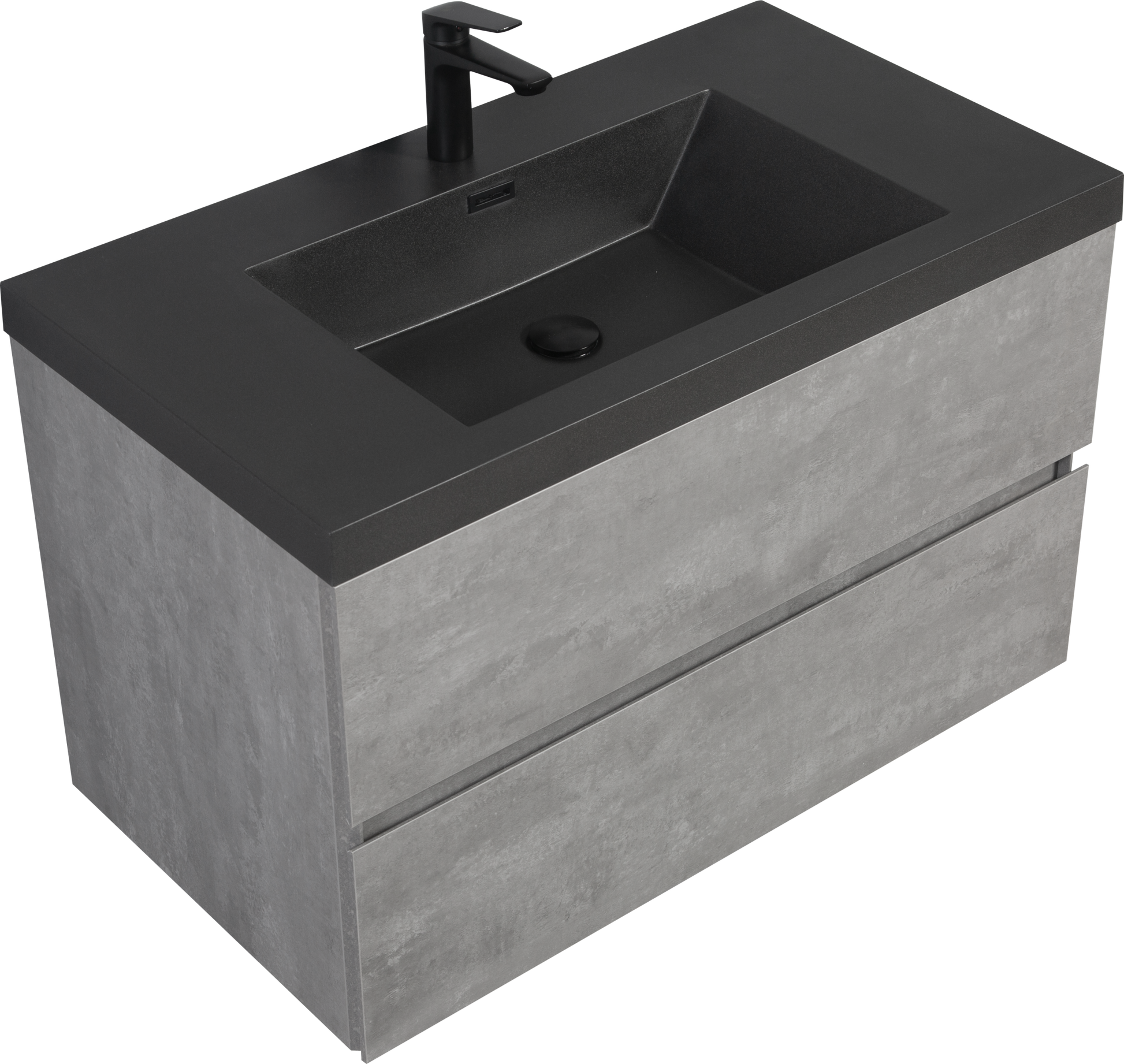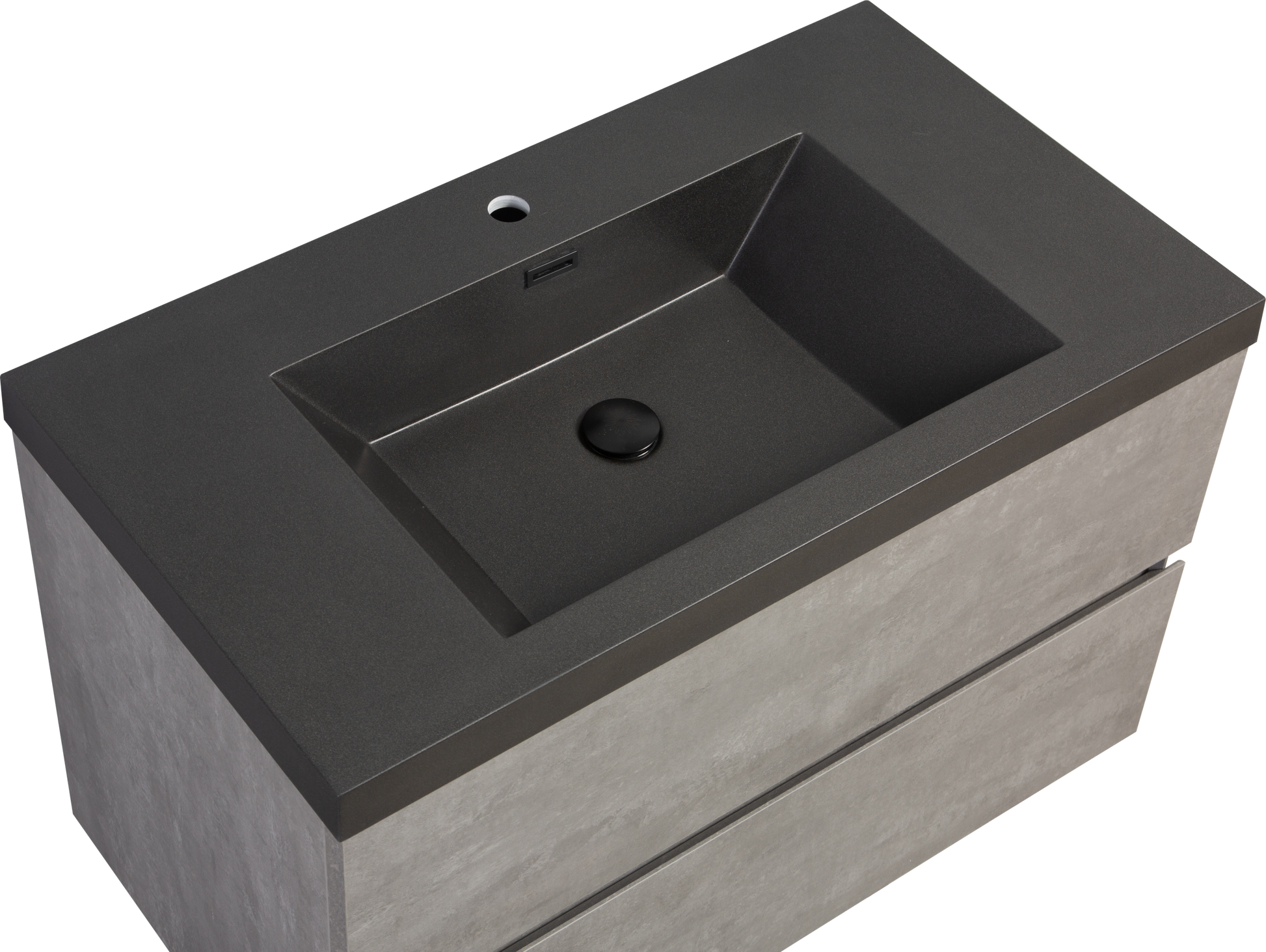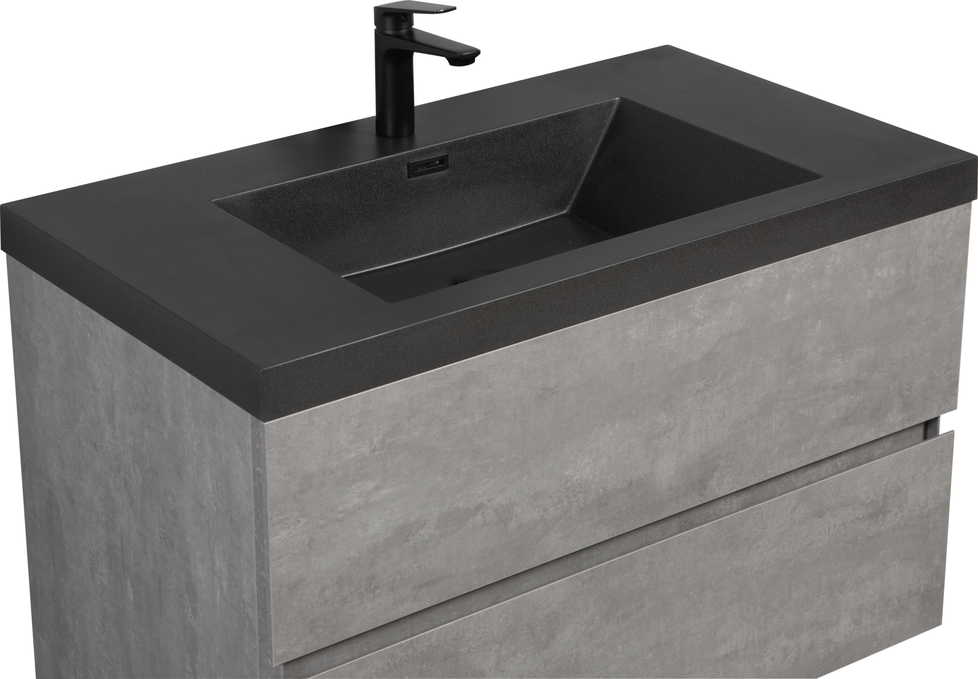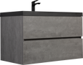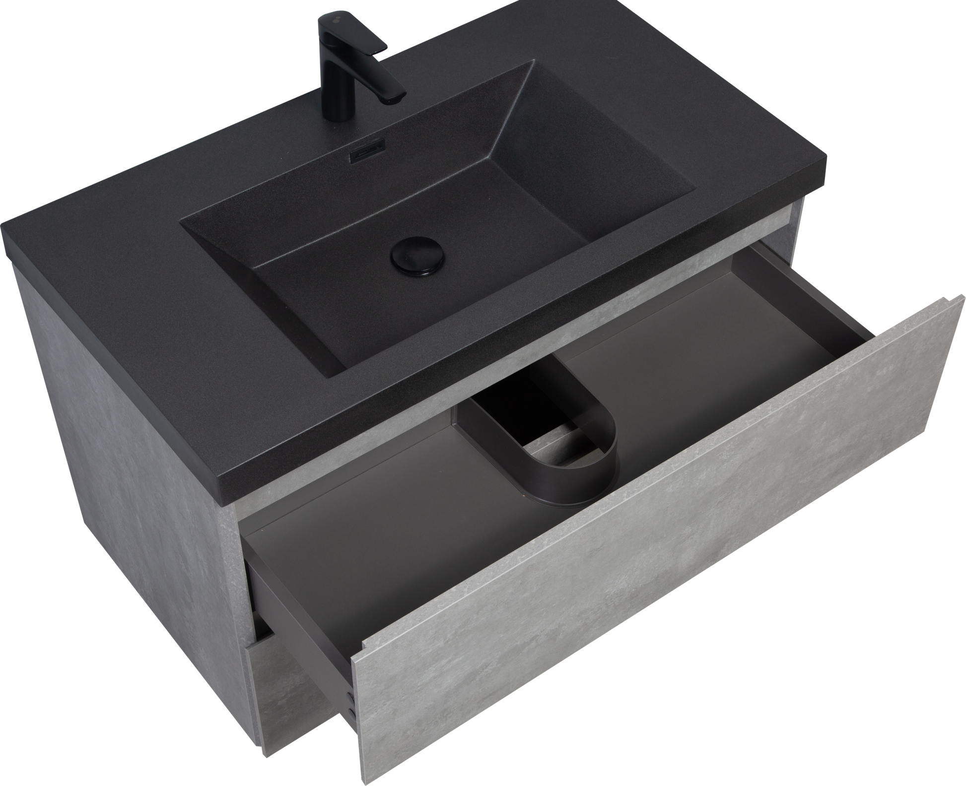 36" Floating Bathroom Vanity With Sink, Modern Wall Mounted Bathroom Storage Vanity Cabinet With Black Quartz Sand Top Basin And Soft Close Drawers, Grey 24V12 36Gr 2 Grey Plywood