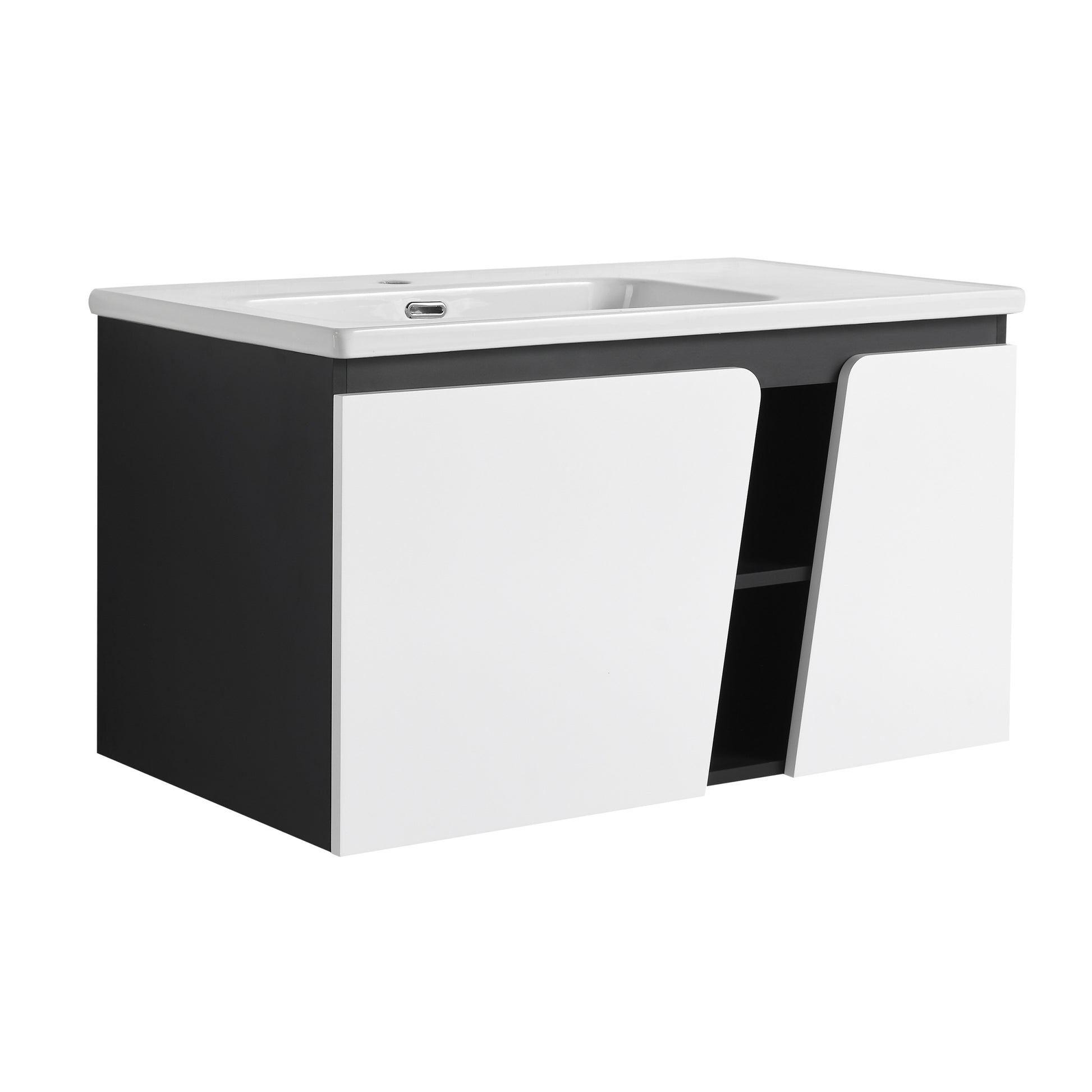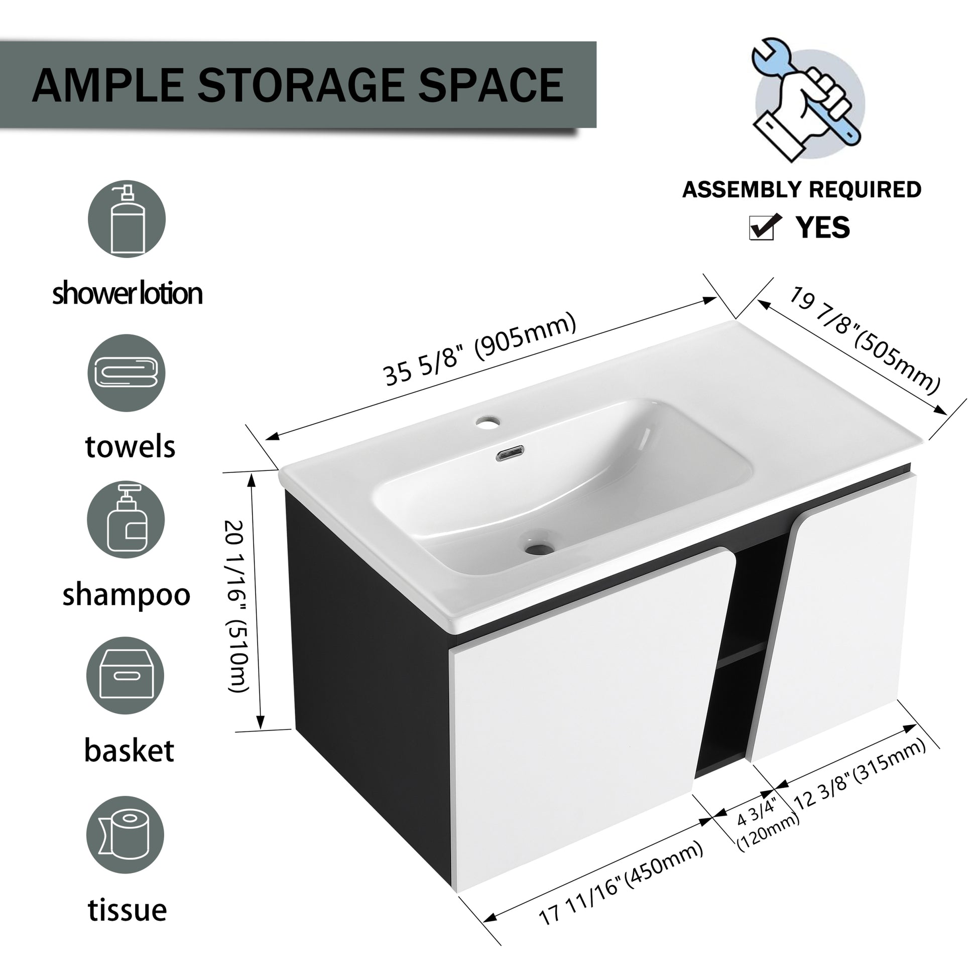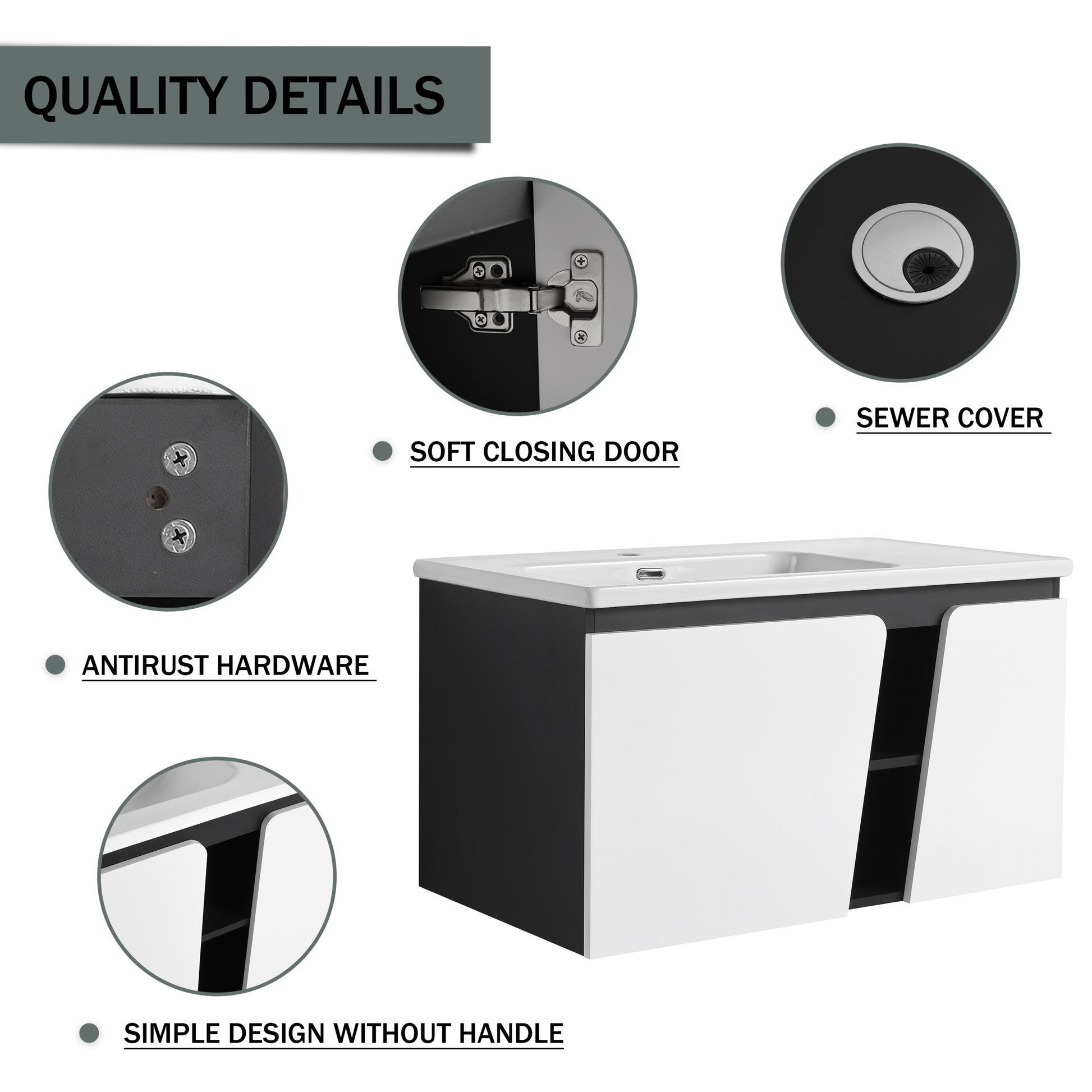 36'' Floating Wall Mounted Bathroom Vanity With Ceramic Basin & Soft Close Cabinet Door White Black Soft Close Doors Bathroom Wall Mounted Modern Plywood Plywood