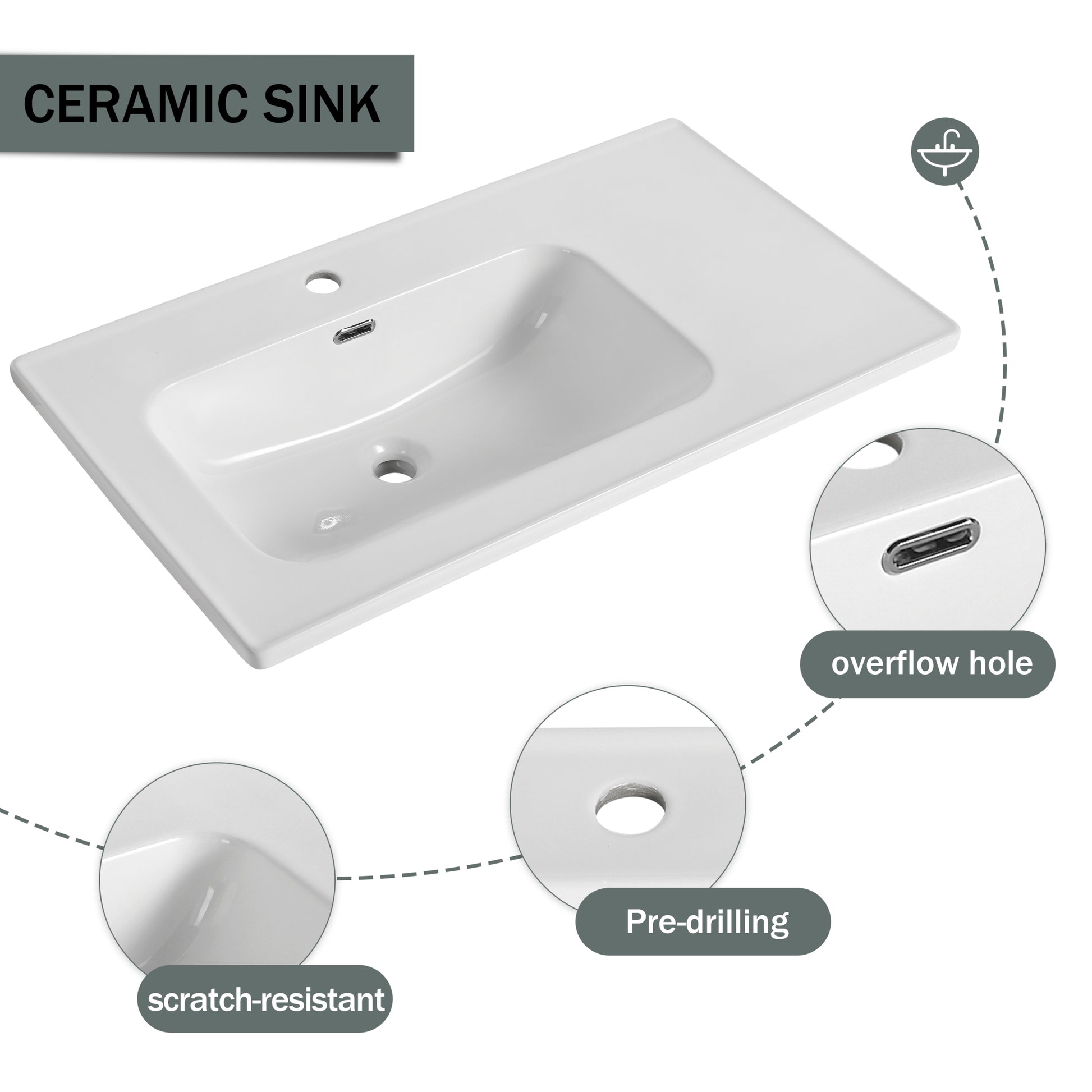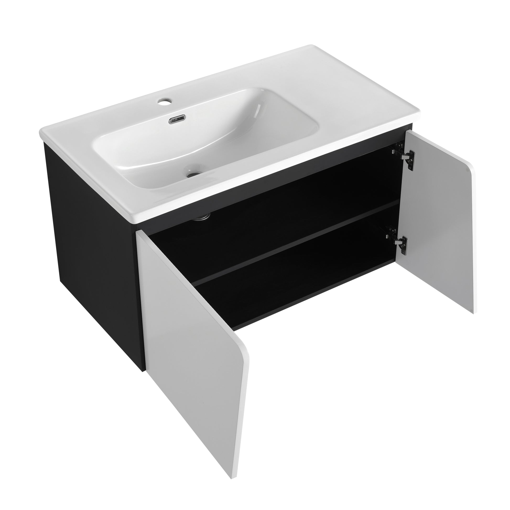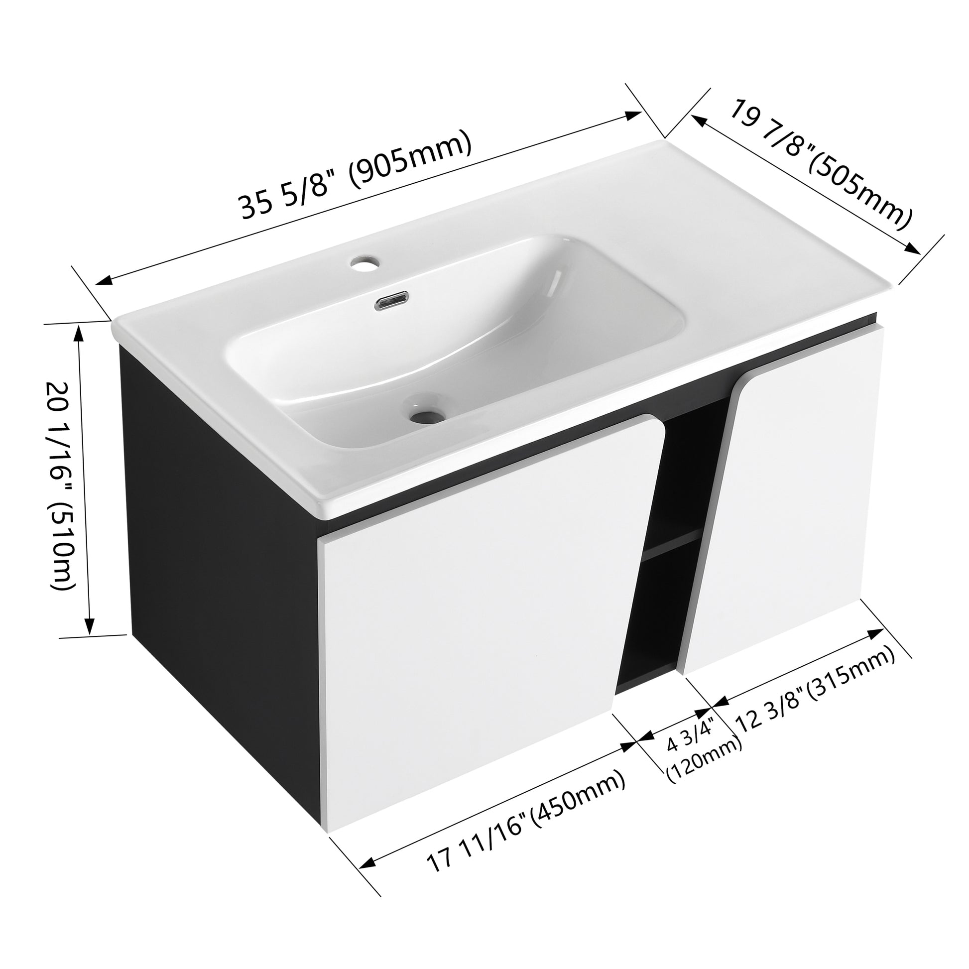 36'' Floating Wall Mounted Bathroom Vanity With Ceramic Basin & Soft Close Cabinet Door White Black Soft Close Doors Bathroom Wall Mounted Modern Plywood Plywood