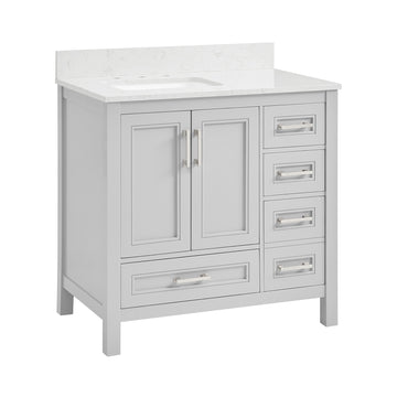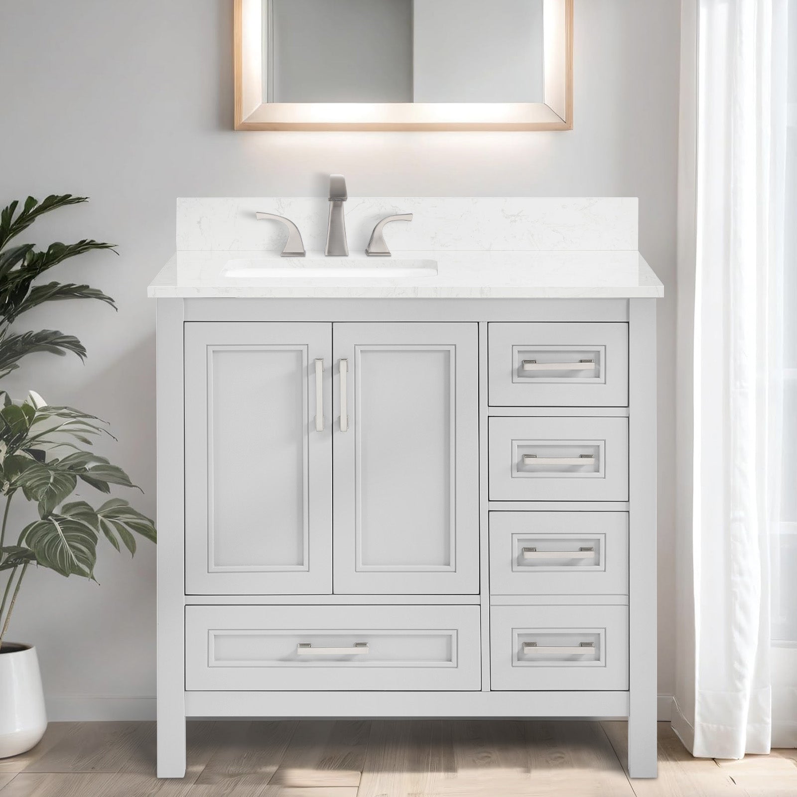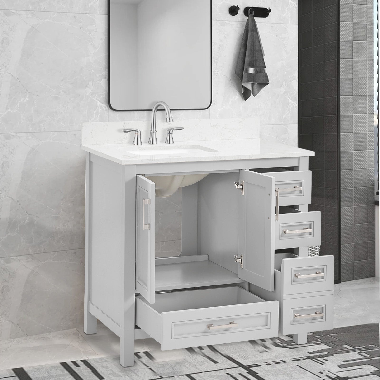 36 In Undermount Single Sink Bathroom Storage Cabinet With Engineered Carrara Marble Top Light Gray 2 4 36 To 47 In 36 To 59 In Soft Close Doors Bathroom 20 25 Inches Mdf Painted