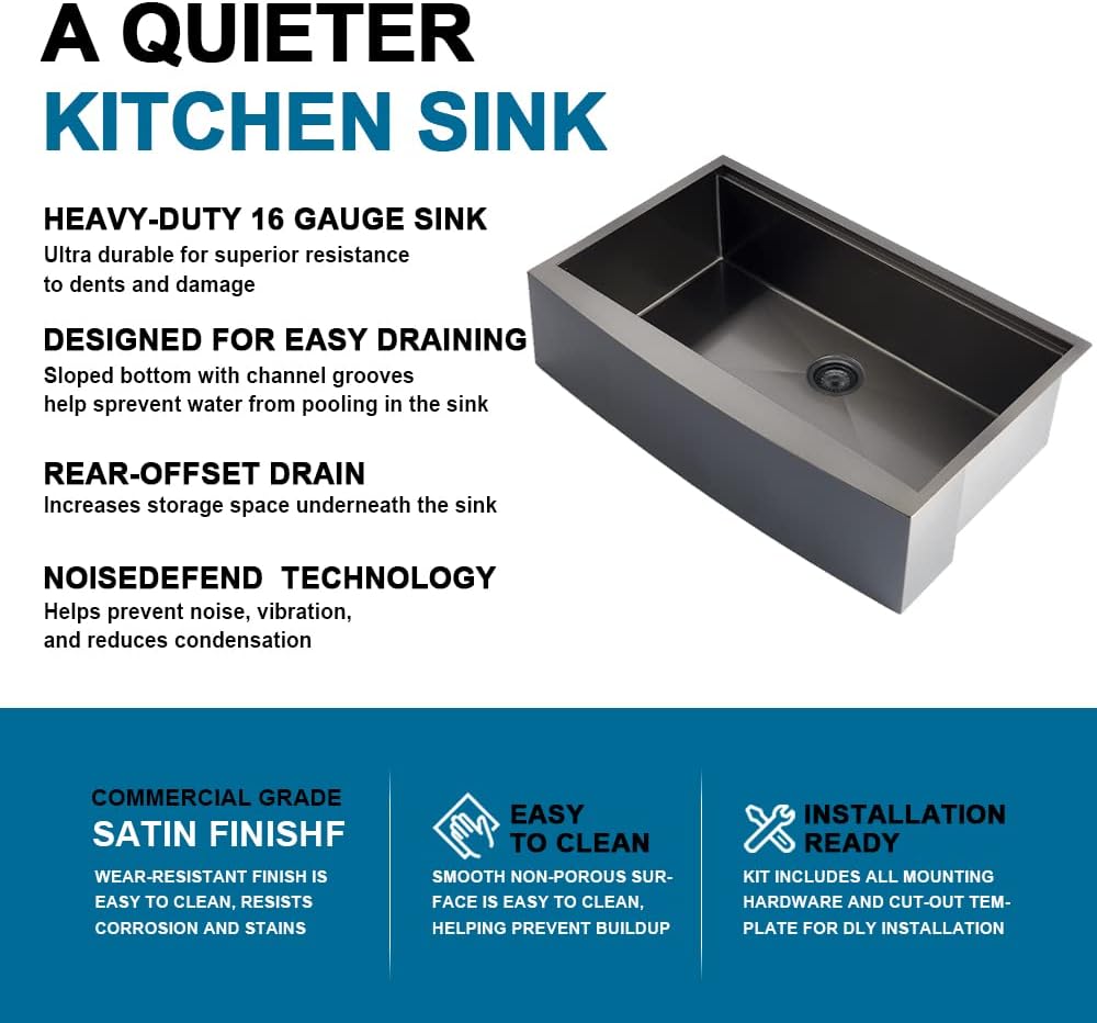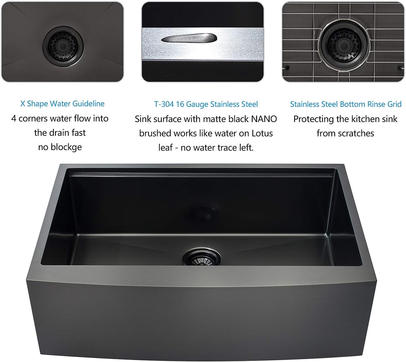 36 Inch Apron Front Workstation Farmhouse Sink 16 Guage Gunmetal Matte Black Stainless Steel Kitchen Sink Single Bowl Farm Sink Gunmetal Black Stainless Steel