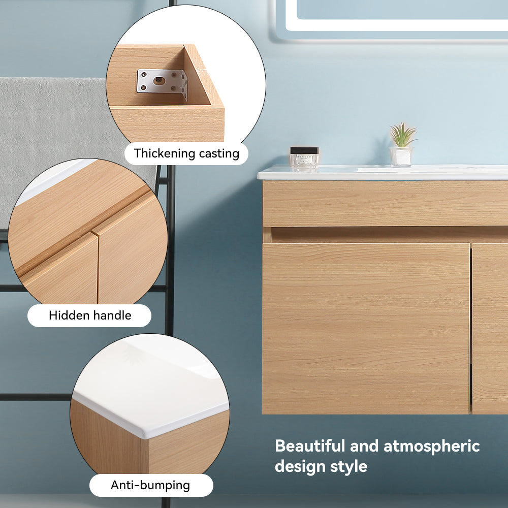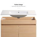 36 Inch Wall Mounted Bathroom Vanity With White Ceramic Basin,Two Soft Close Cabinet Doors, Solid Wood,Excluding Faucets,Light Oak Light Oak Solid Wood