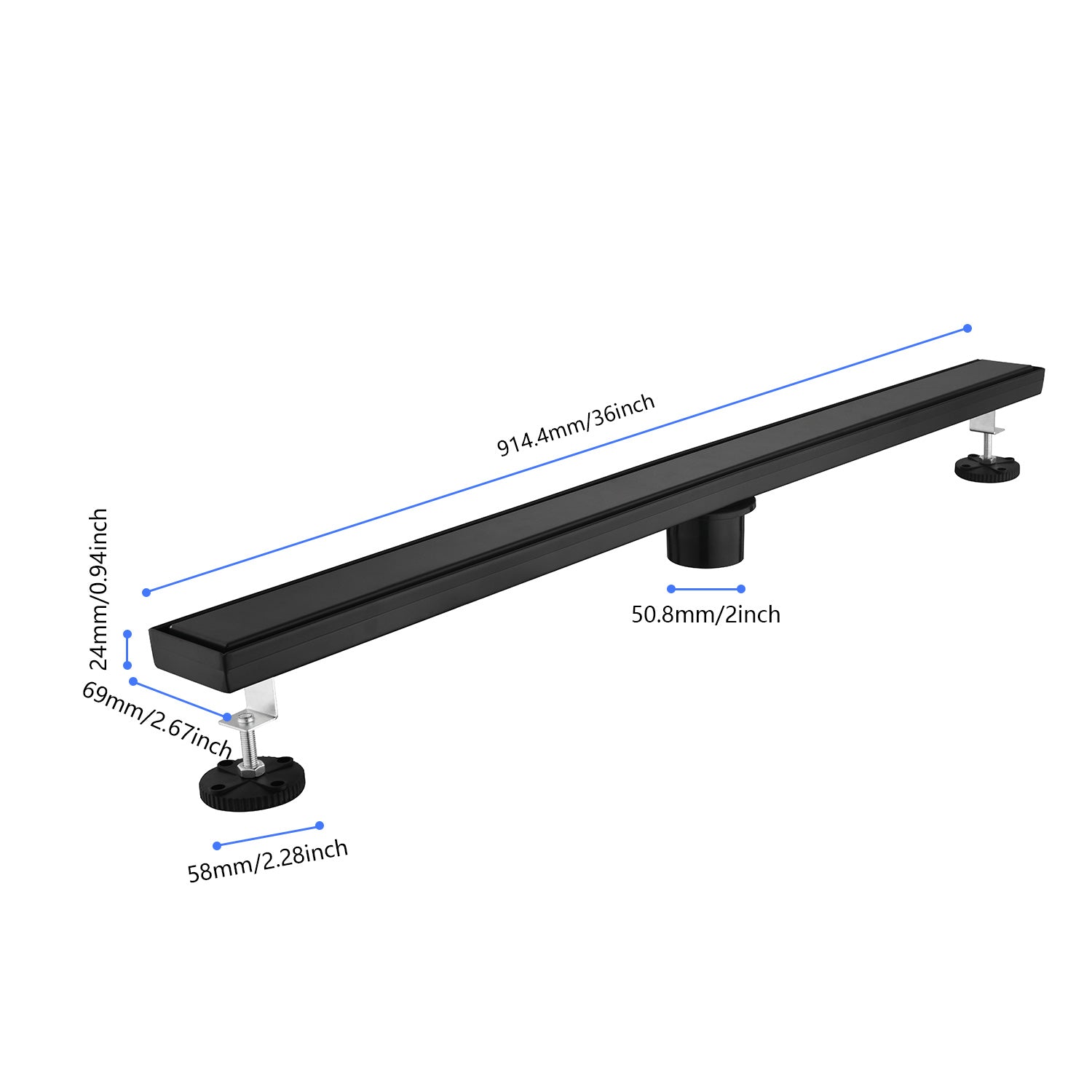36 Inches Linear Shower Drain With Removable Cover, 304 Stainless Shower Drain Included Hair Strainer And Leveling Feet Matte Black Stainless Steel
