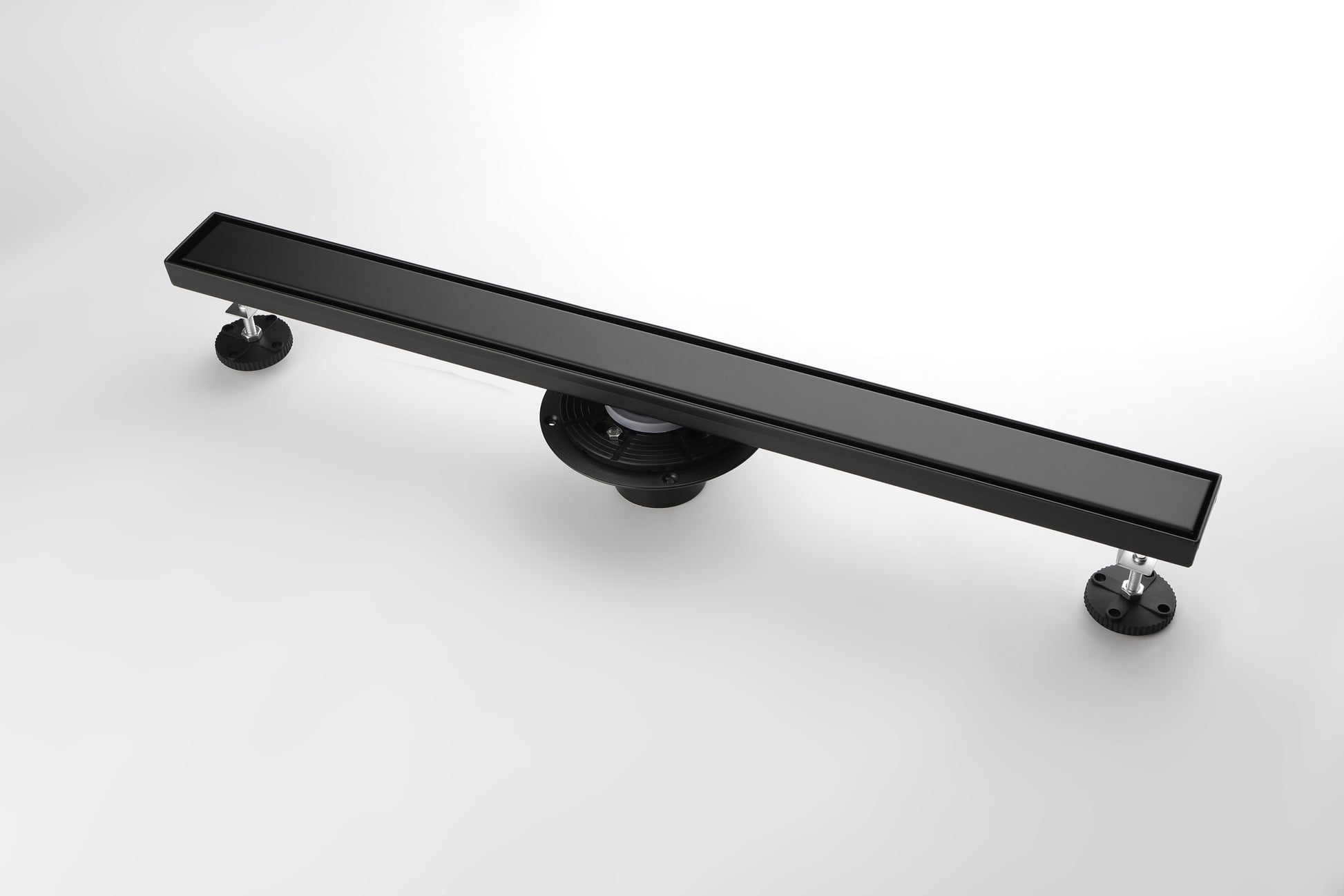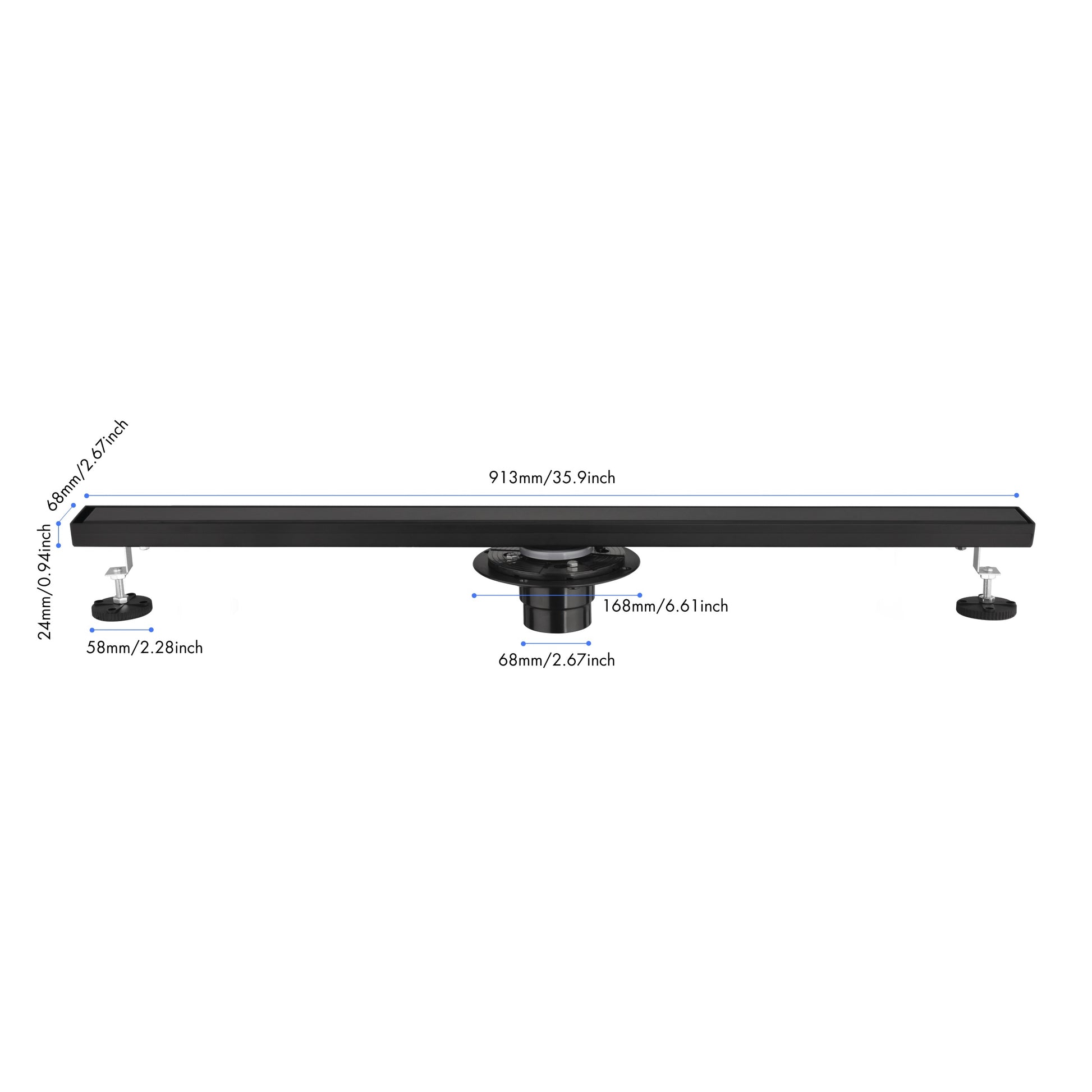 36 Inches Linear Shower Drain With Removable Cover, 304 Stainless Shower Drain Included Hair Strainer And Leveling Feet, Flange Matte Black Stainless Steel