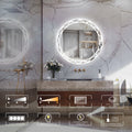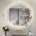 36" Round Led Bathroom Mirror Adjustable Color Temperatures And Anti Fog, Wall Mounted Design White Black Aluminium,Tempered Glass