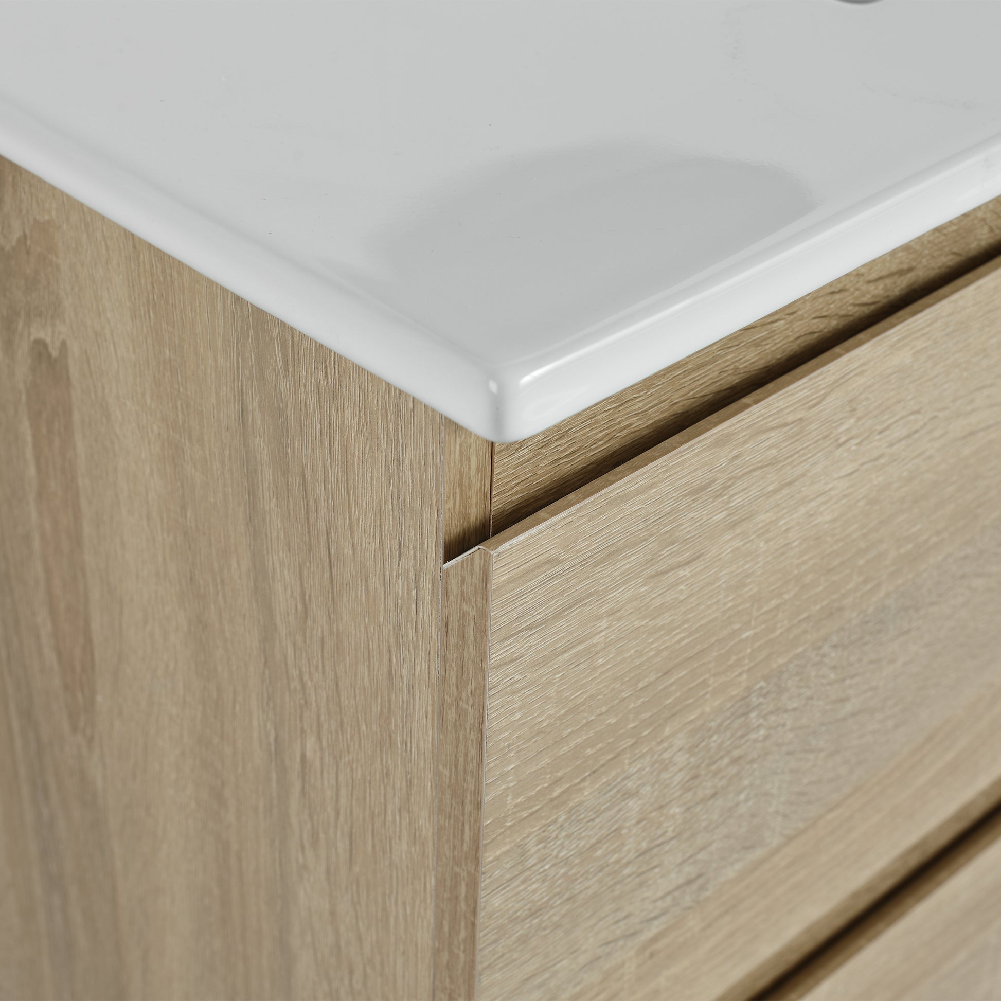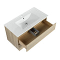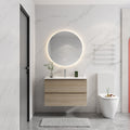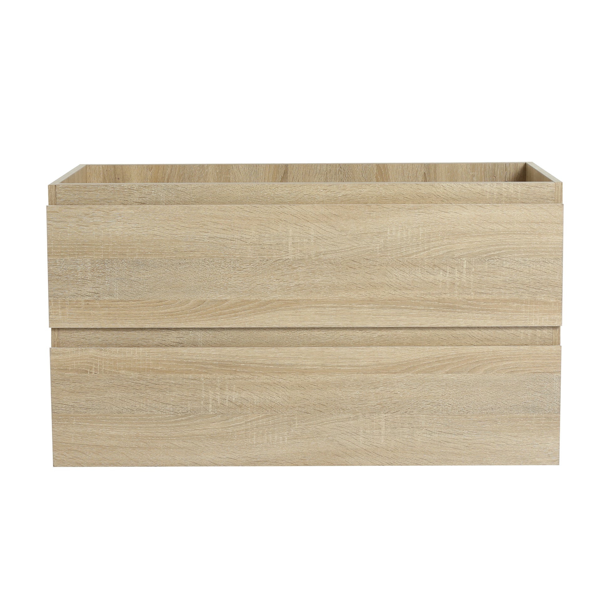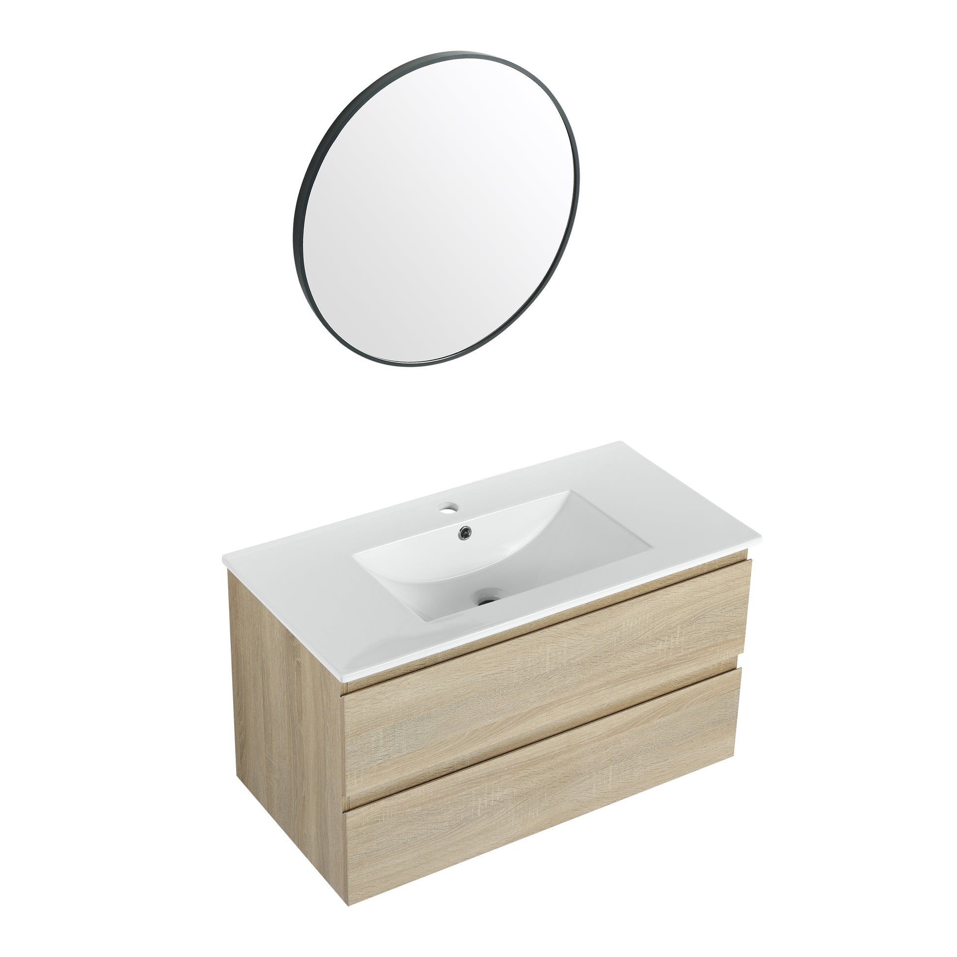 36" Wall Mounted Bathroom Vanity With Ceramic Sink, 2 Soft Close Drawers, Kd Package 2 Light Oak Bathroom Wall Mounted Modern Plywood
