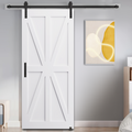 36" X 84" Star Style Real Primed Door Slab 6.6Ft Barn Door Sliding Hardware Adjustable Floor Guider Pull Handle, Diy Unfinished Paneled Door, Modern Interior Barn Door, Moisture Proof White Mdf