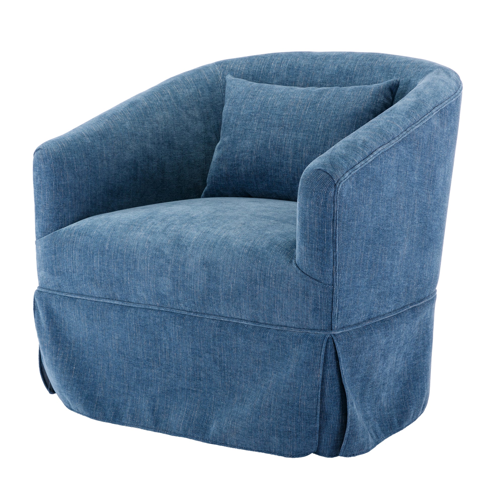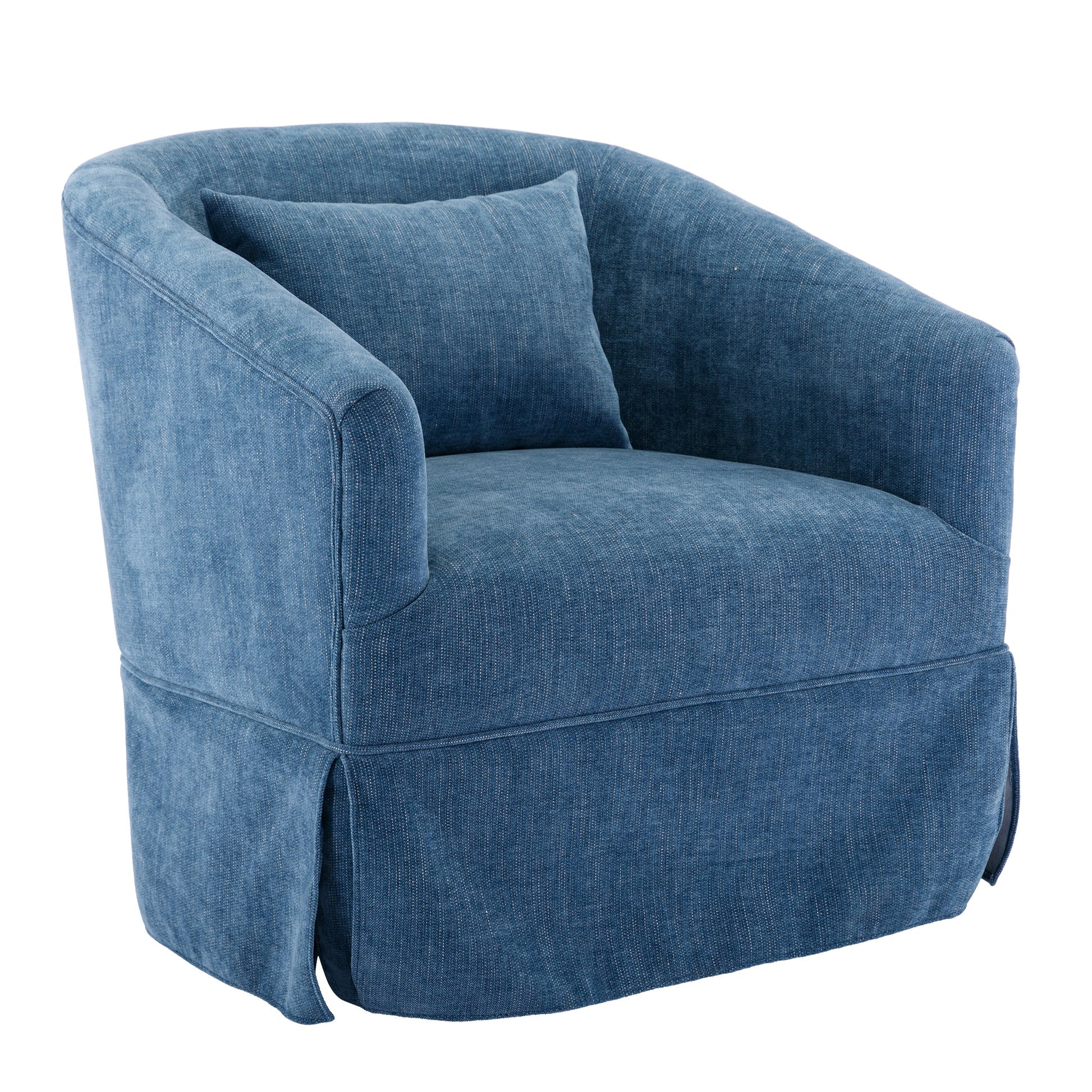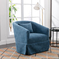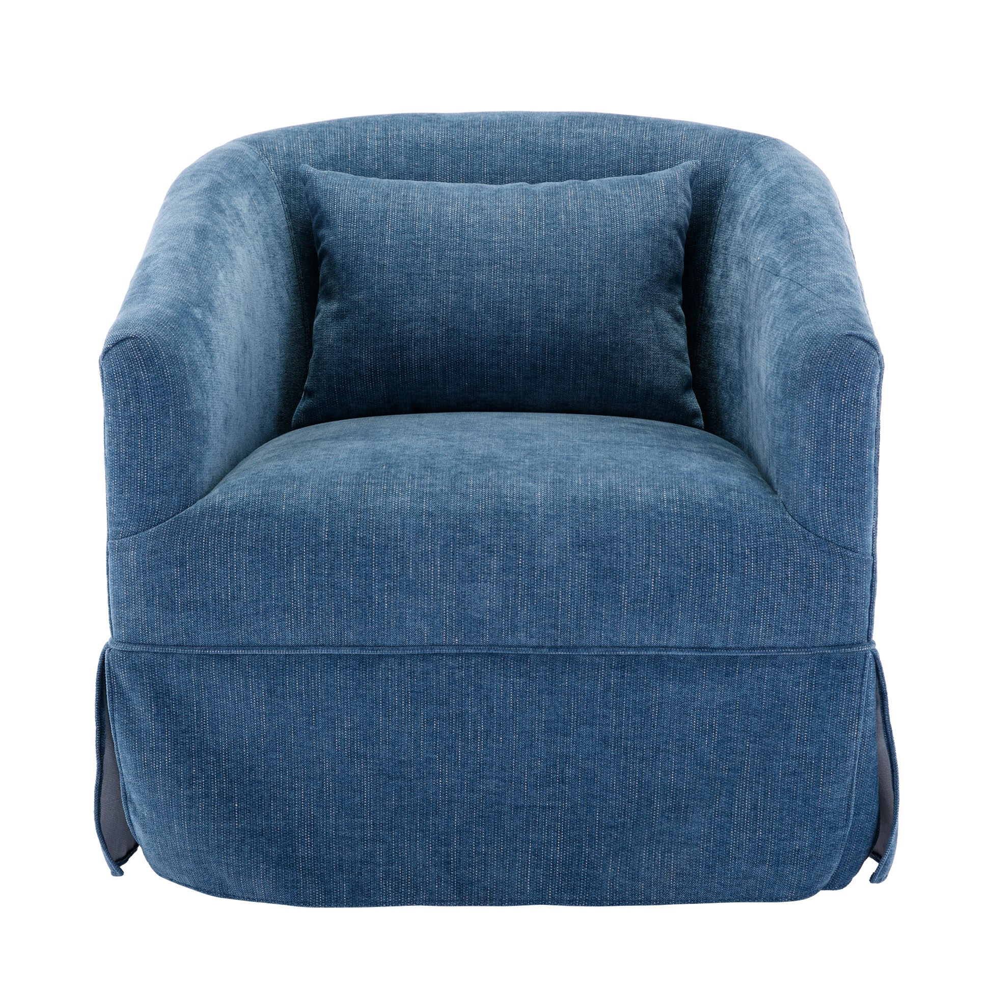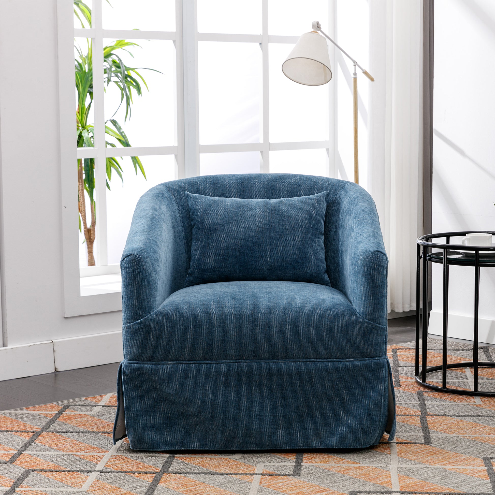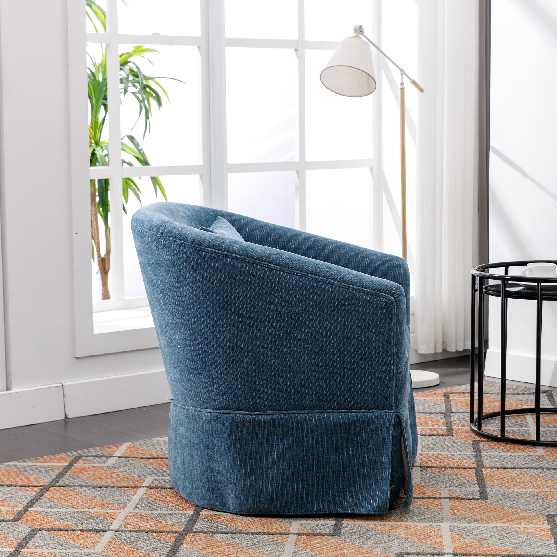 360 Degree Swivel Accent Armchair Linen Blend Blue Blue Foam Upholstered