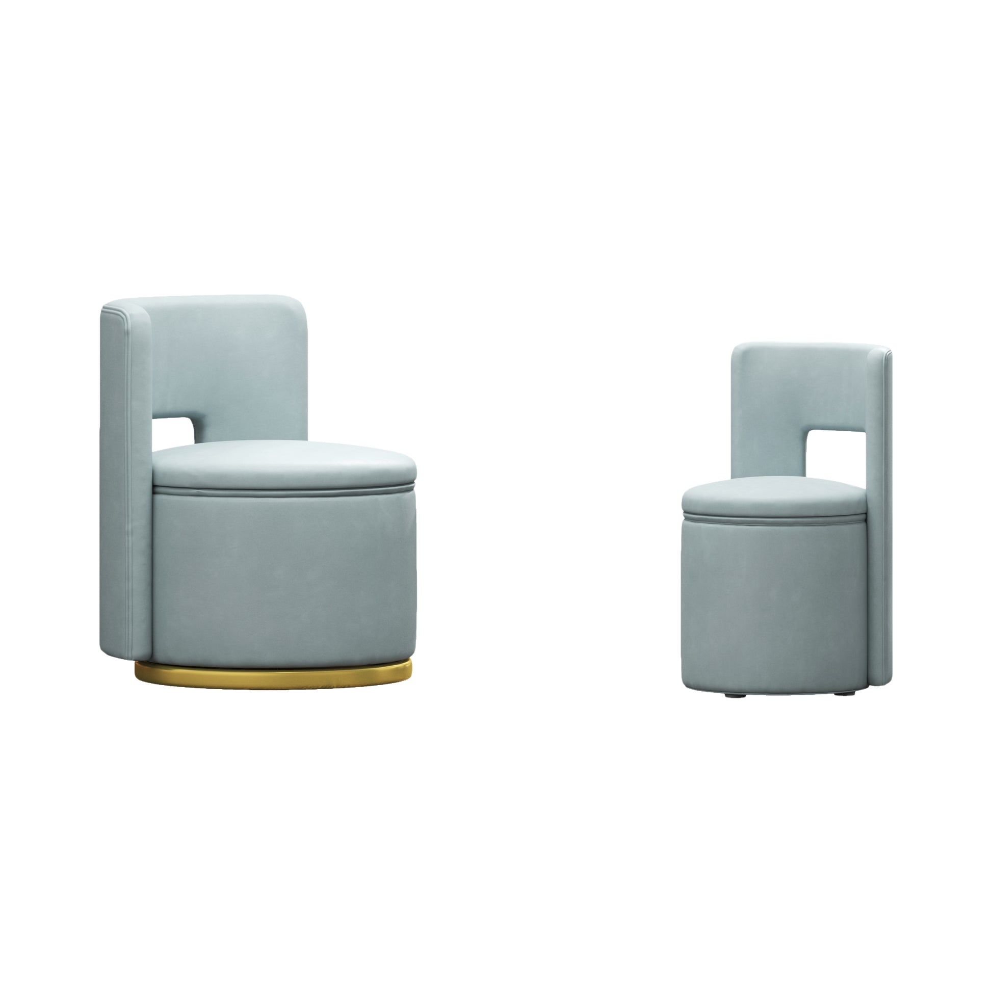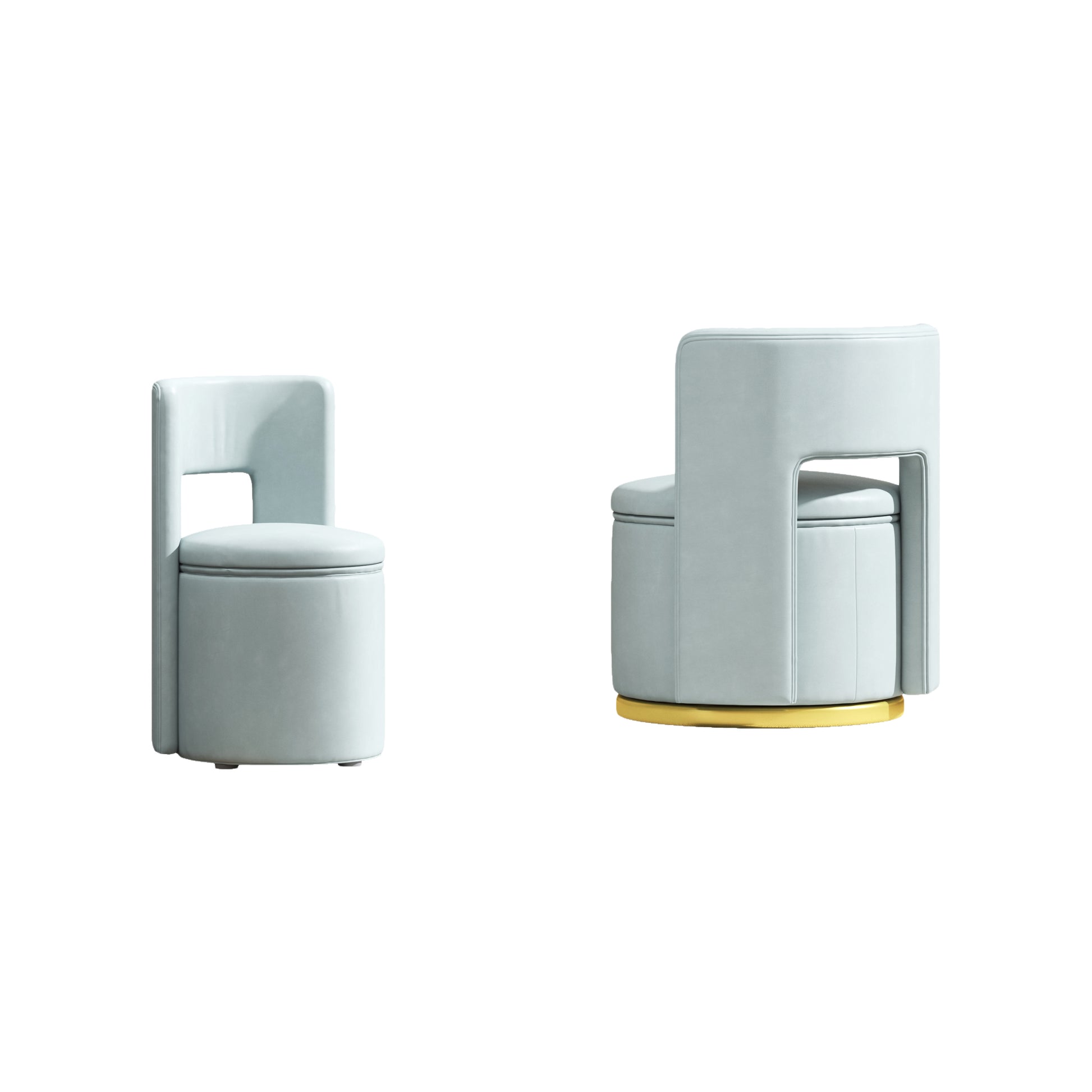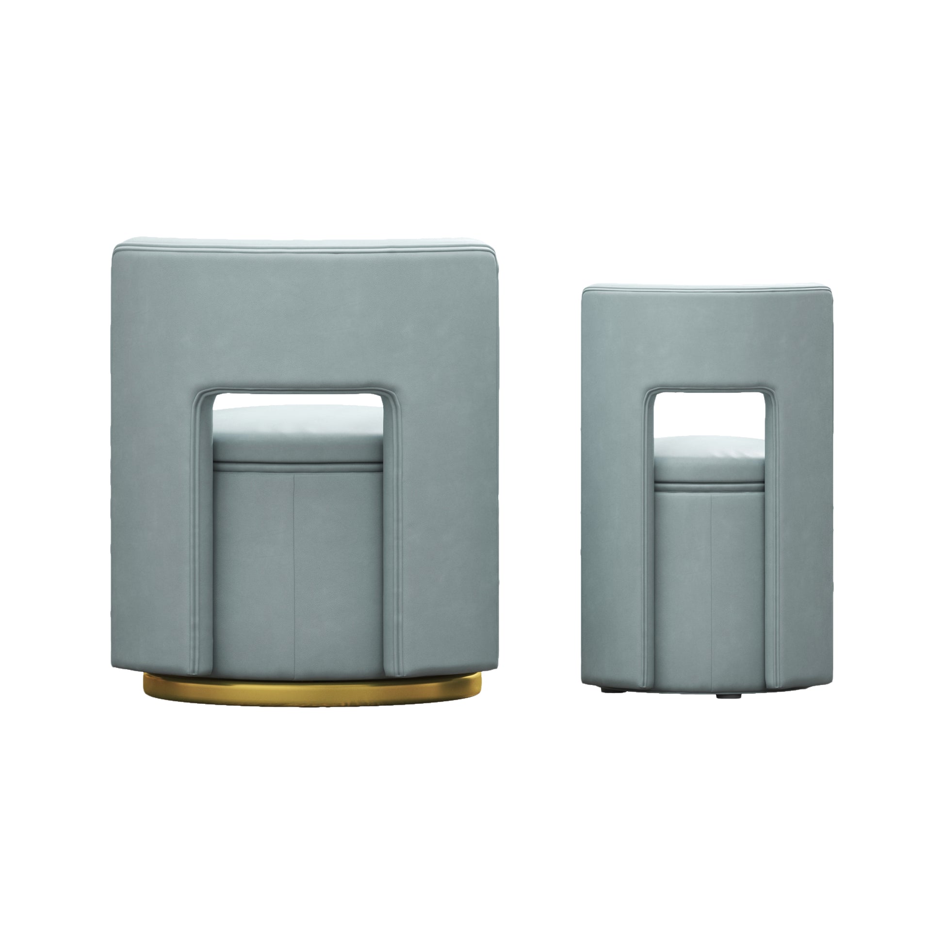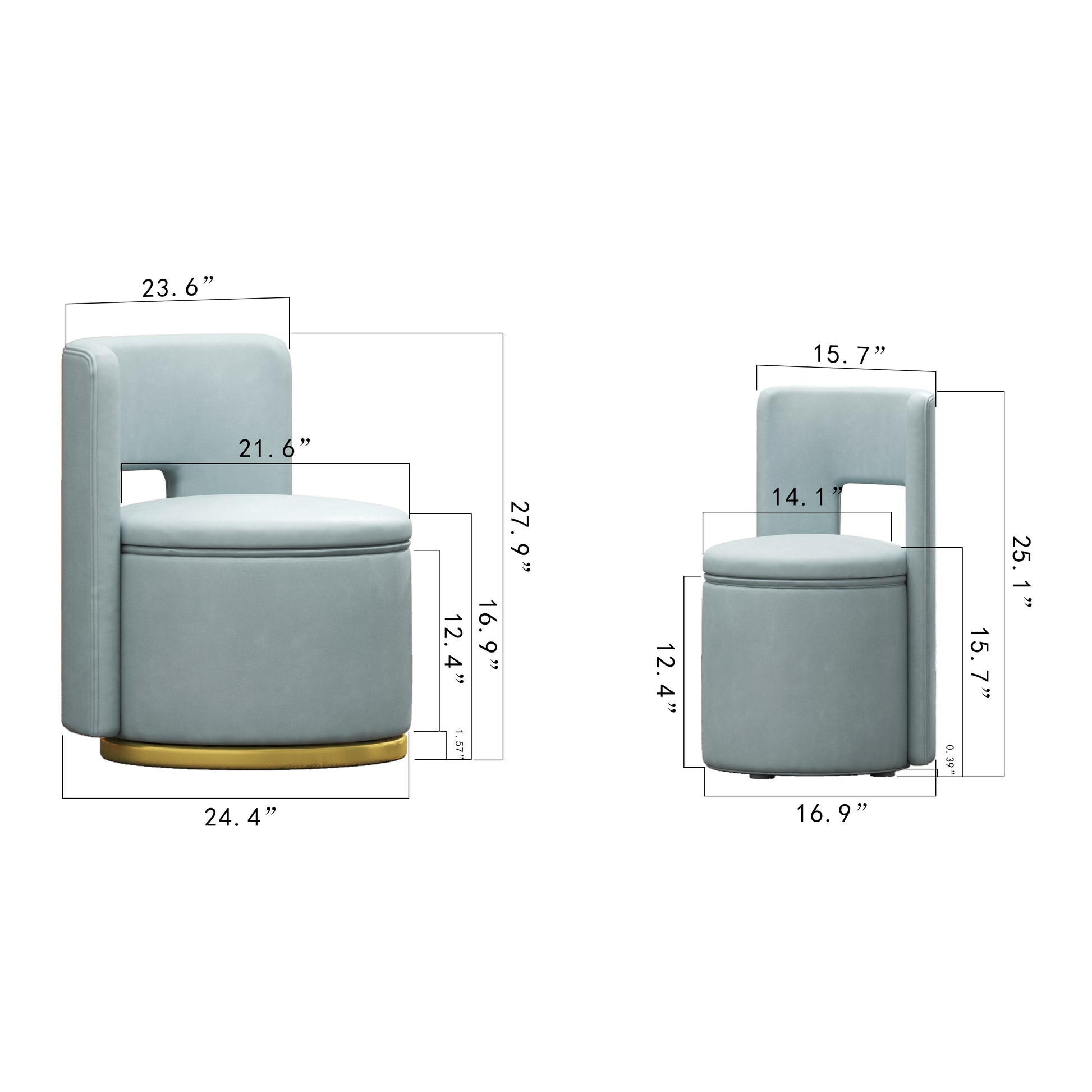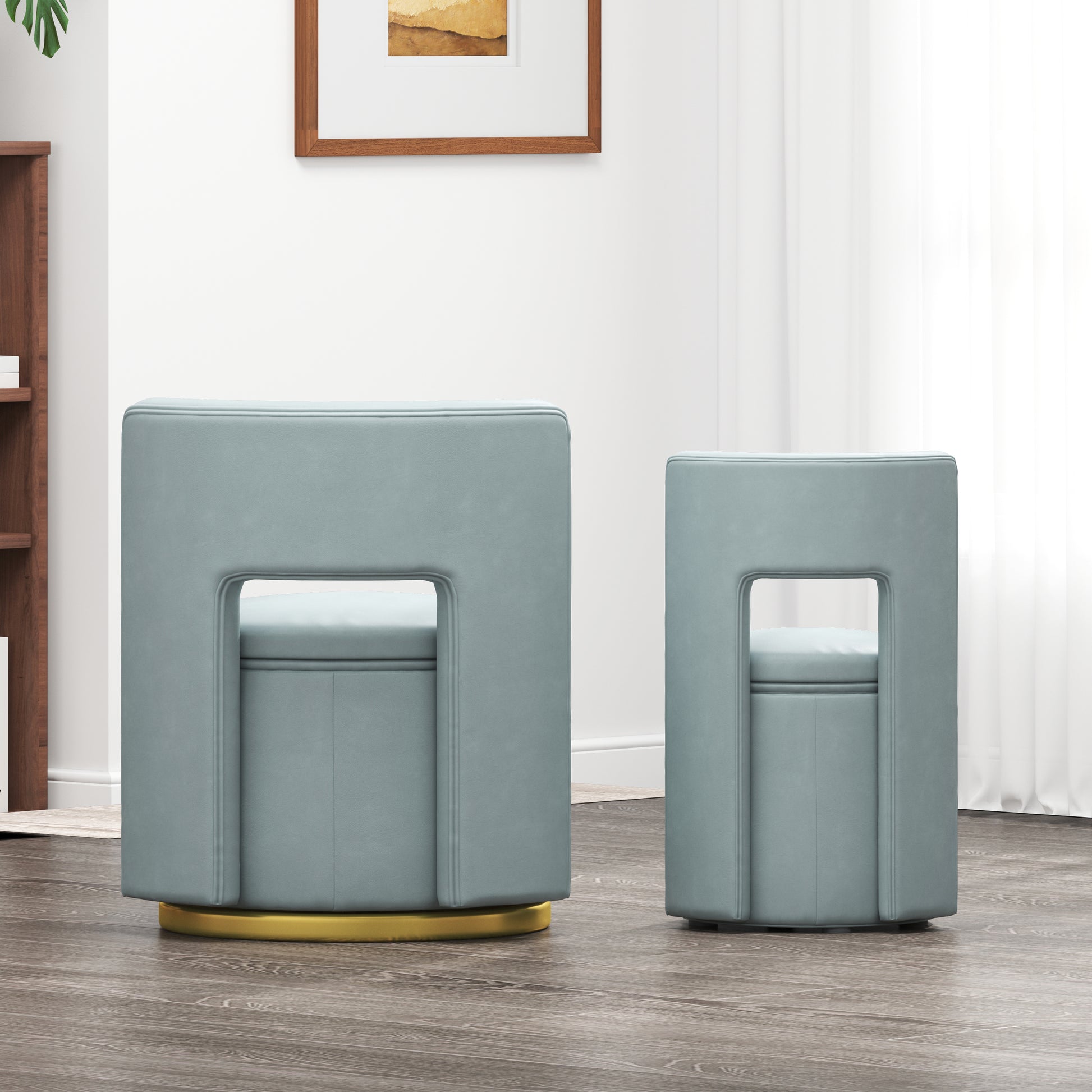 360 Round Swivel Chair With Storage Under Seat, Comfy Chair For Living Room Bedroom Reading Room Blue Blue Modern Eucalyptus Foam Technical Leather