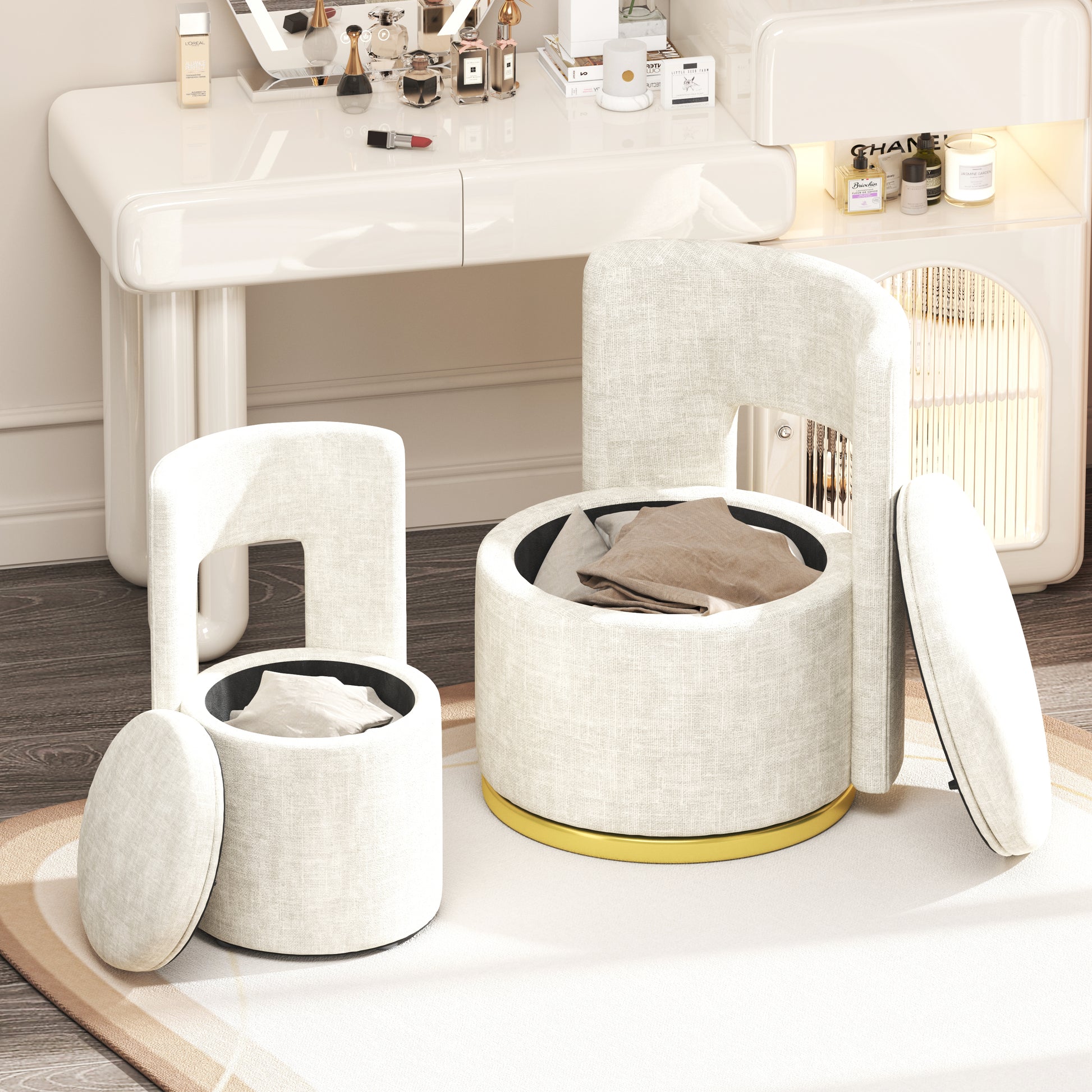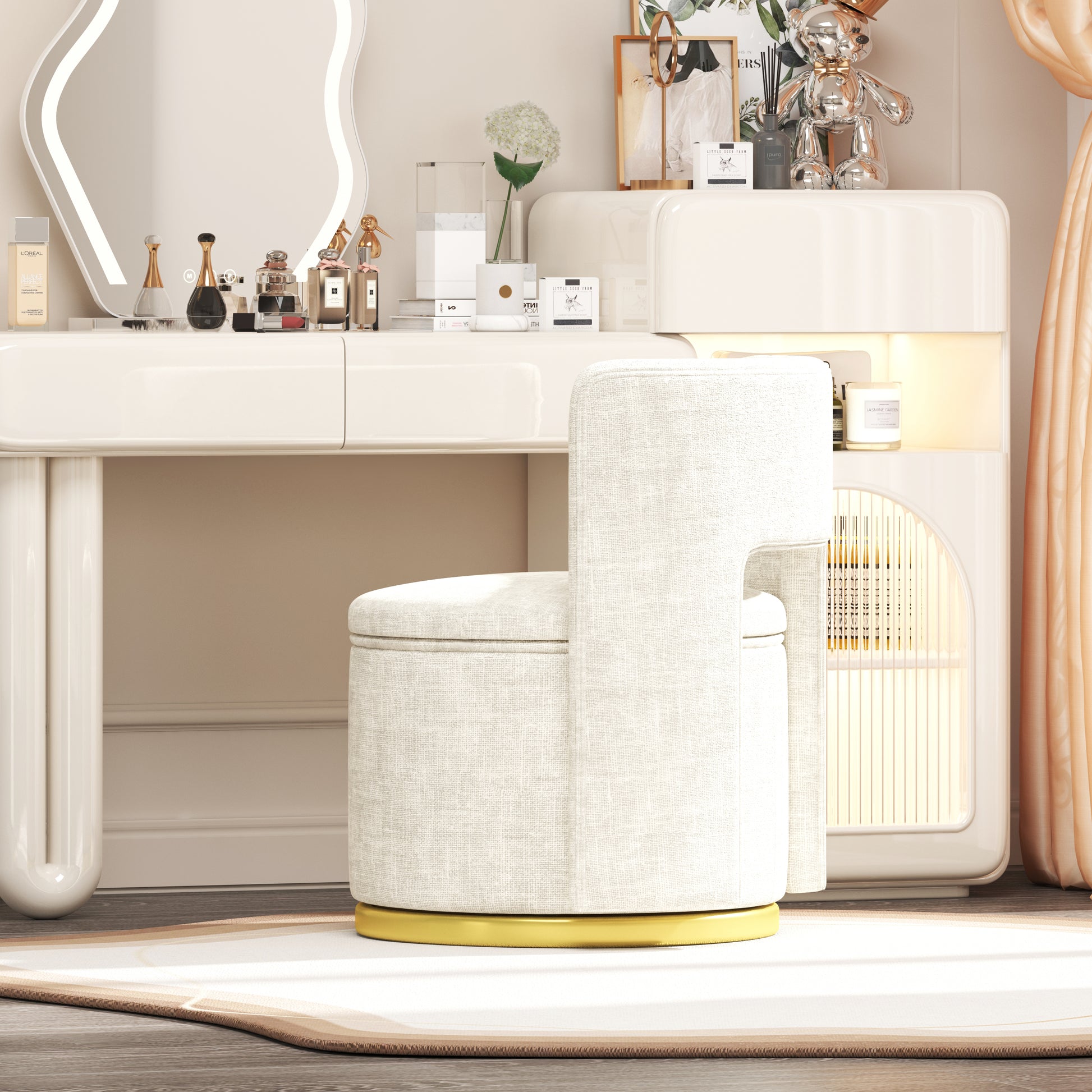 360 Round Swivel Chair With Storage Under Seat, Comfy Chair For Living Room Bedroom Reading Room Beige Beige Modern Eucalyptus Foam Chenille