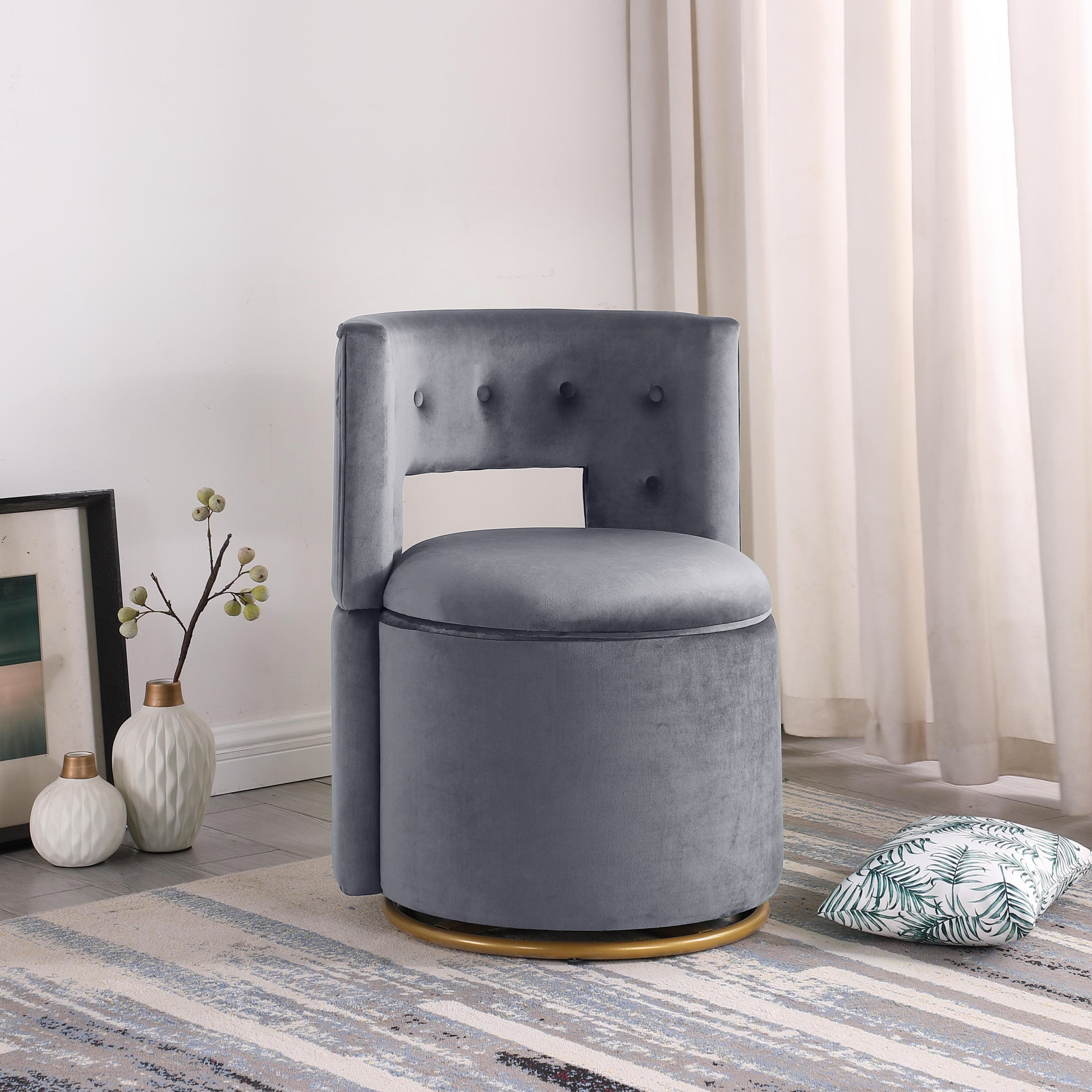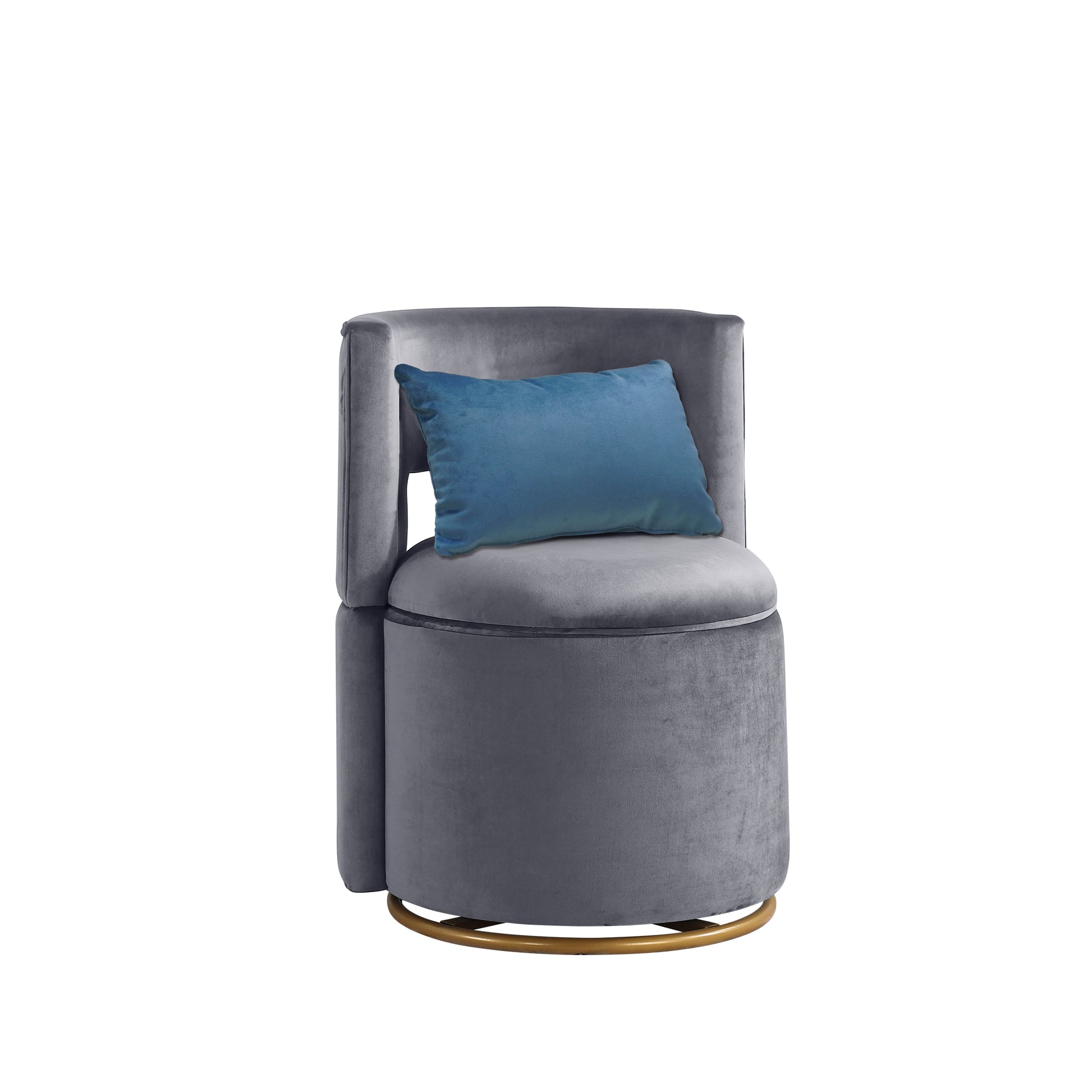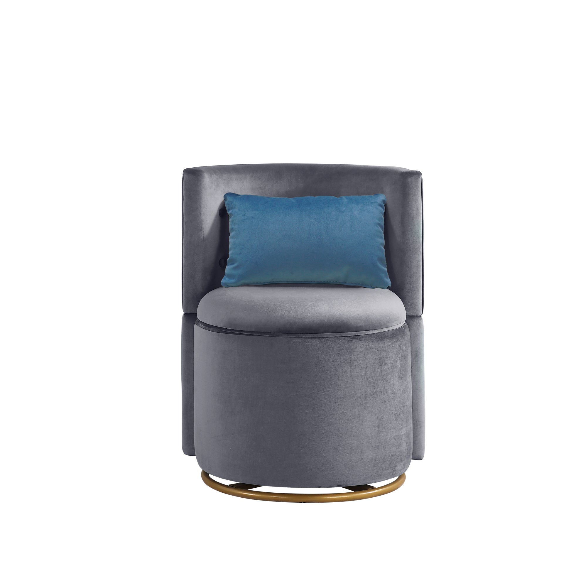 360 Swivel Accent Chair With Storage Function, And Velvet Pillow, Velvet Curved Chair With Gold Metal Base For Living Room, Nursery, Bedroom Video Gray Velvet