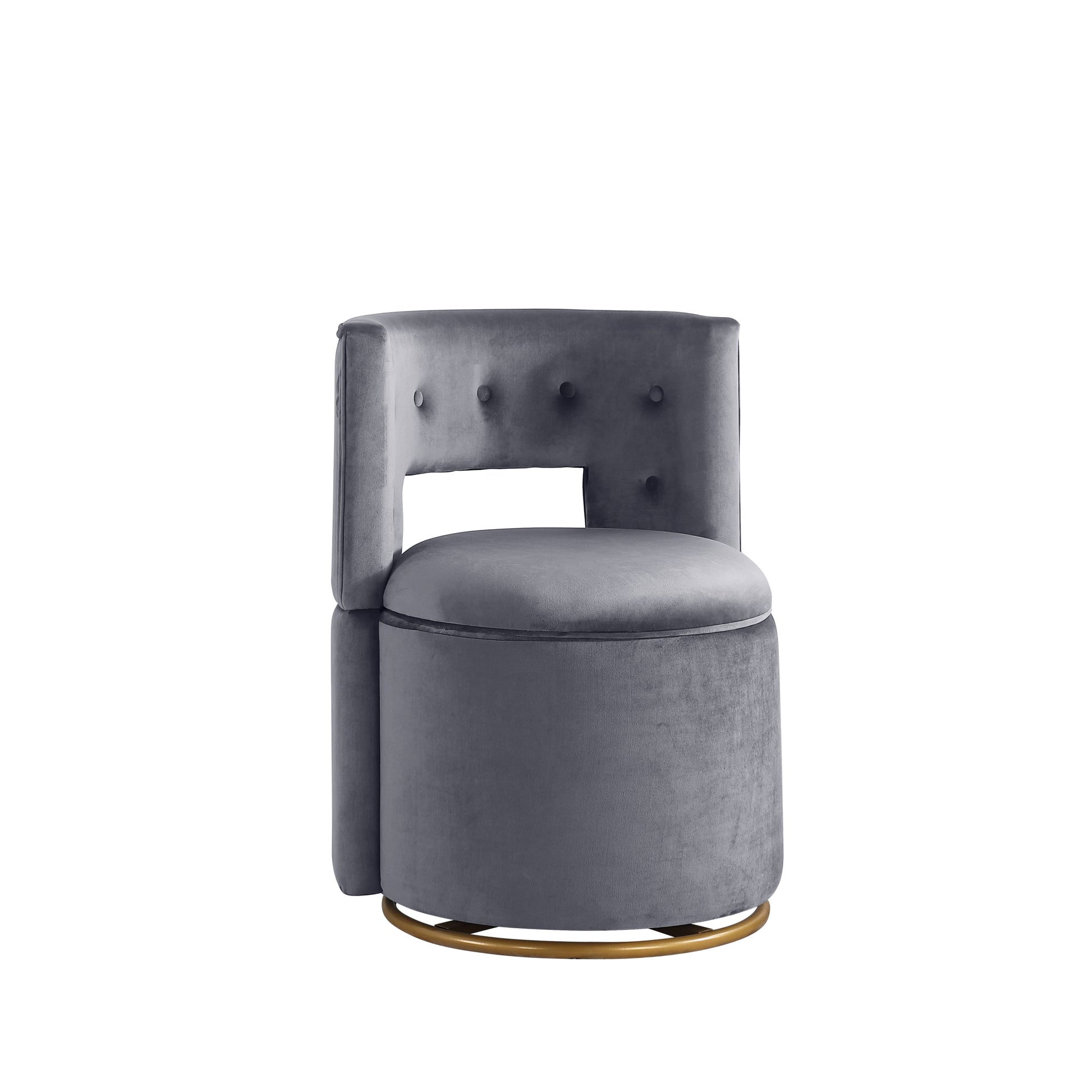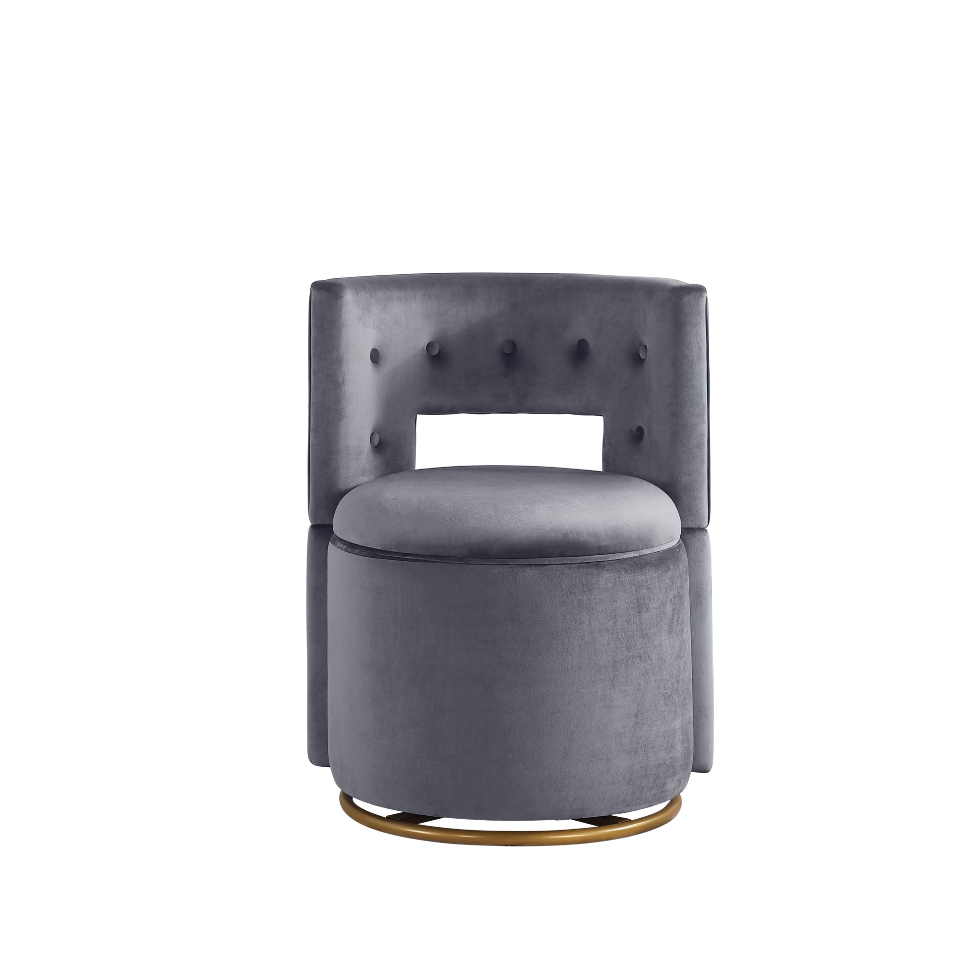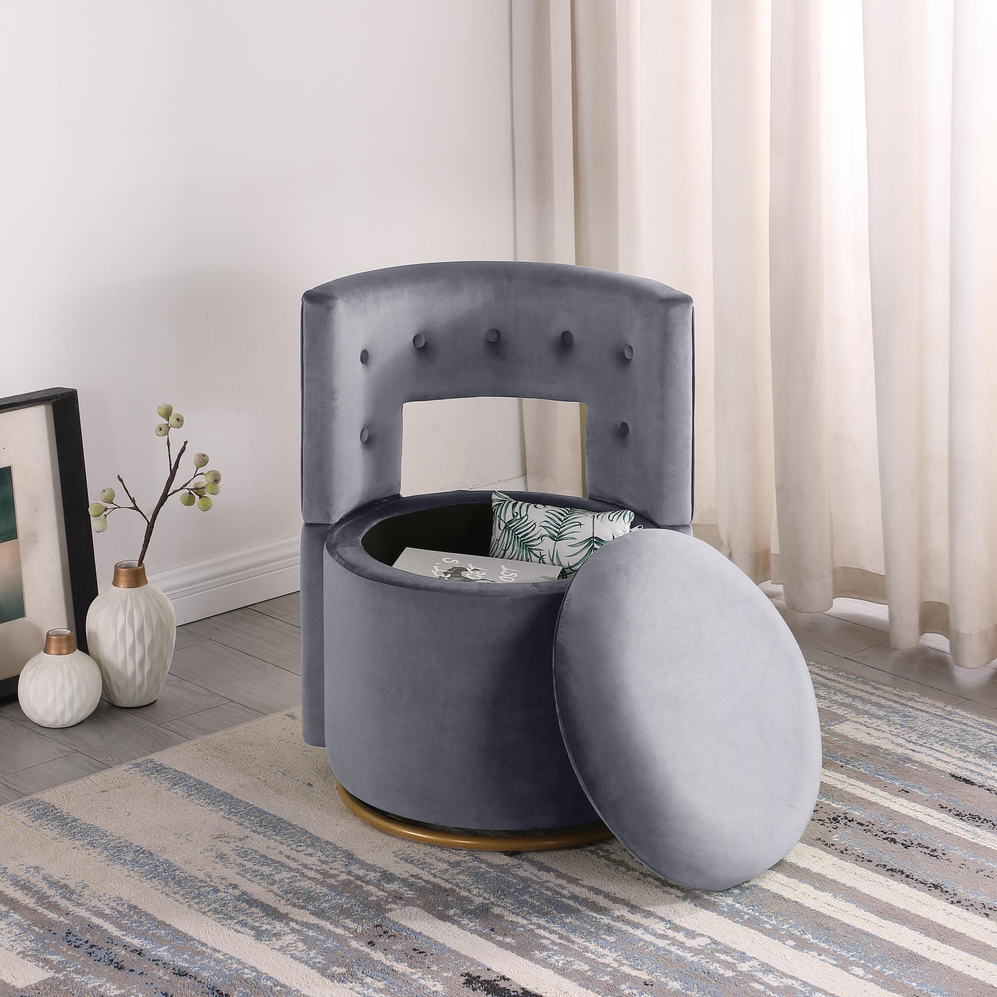 360 Swivel Accent Chair With Storage Function, And Velvet Pillow, Velvet Curved Chair With Gold Metal Base For Living Room, Nursery, Bedroom Video Gray Velvet