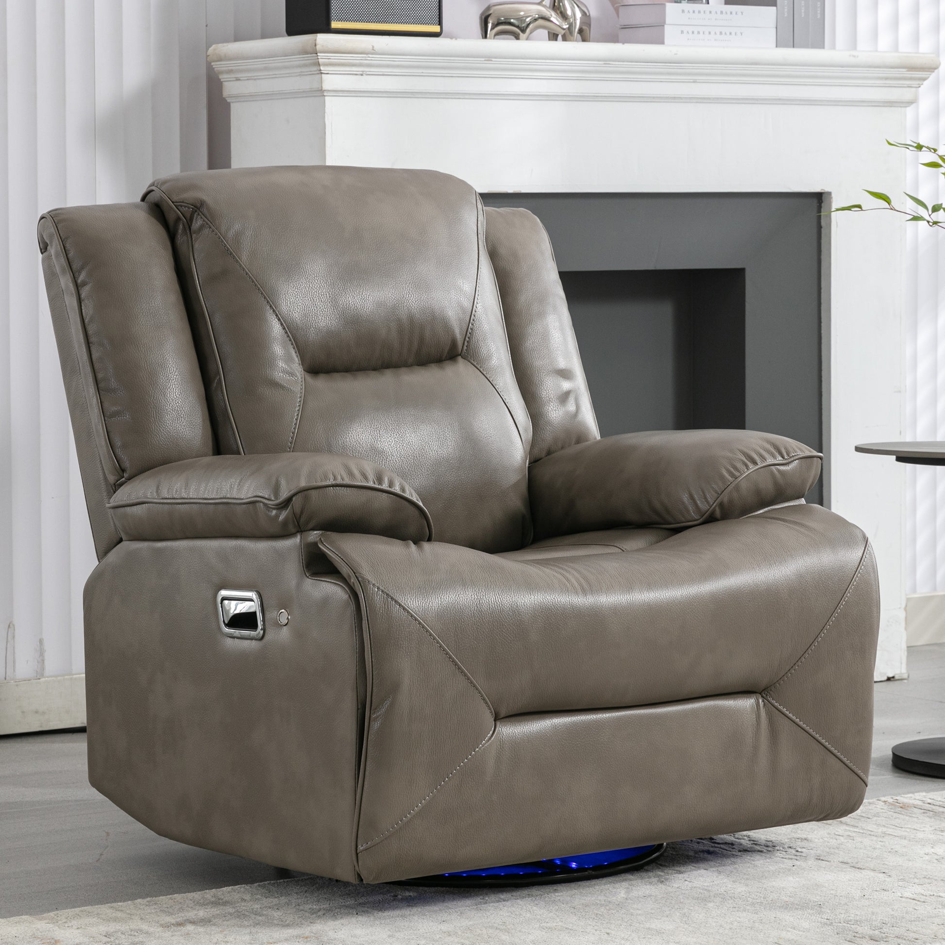 360 Swivel And Rocking Home Theater Recliner Manual Recliner Chair With A Led Light Strip For Living Room,Bedroom, Grey Grey Foam Pu