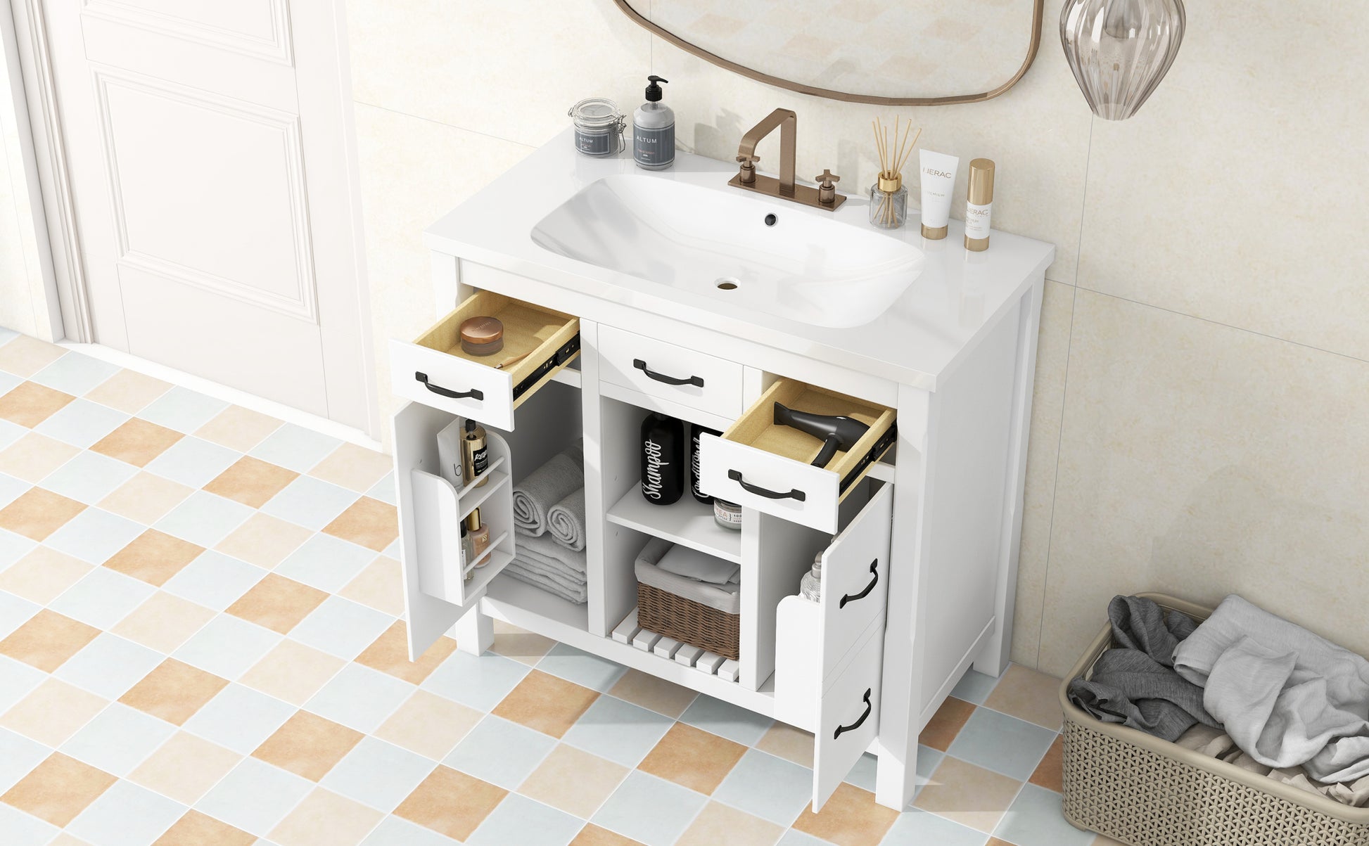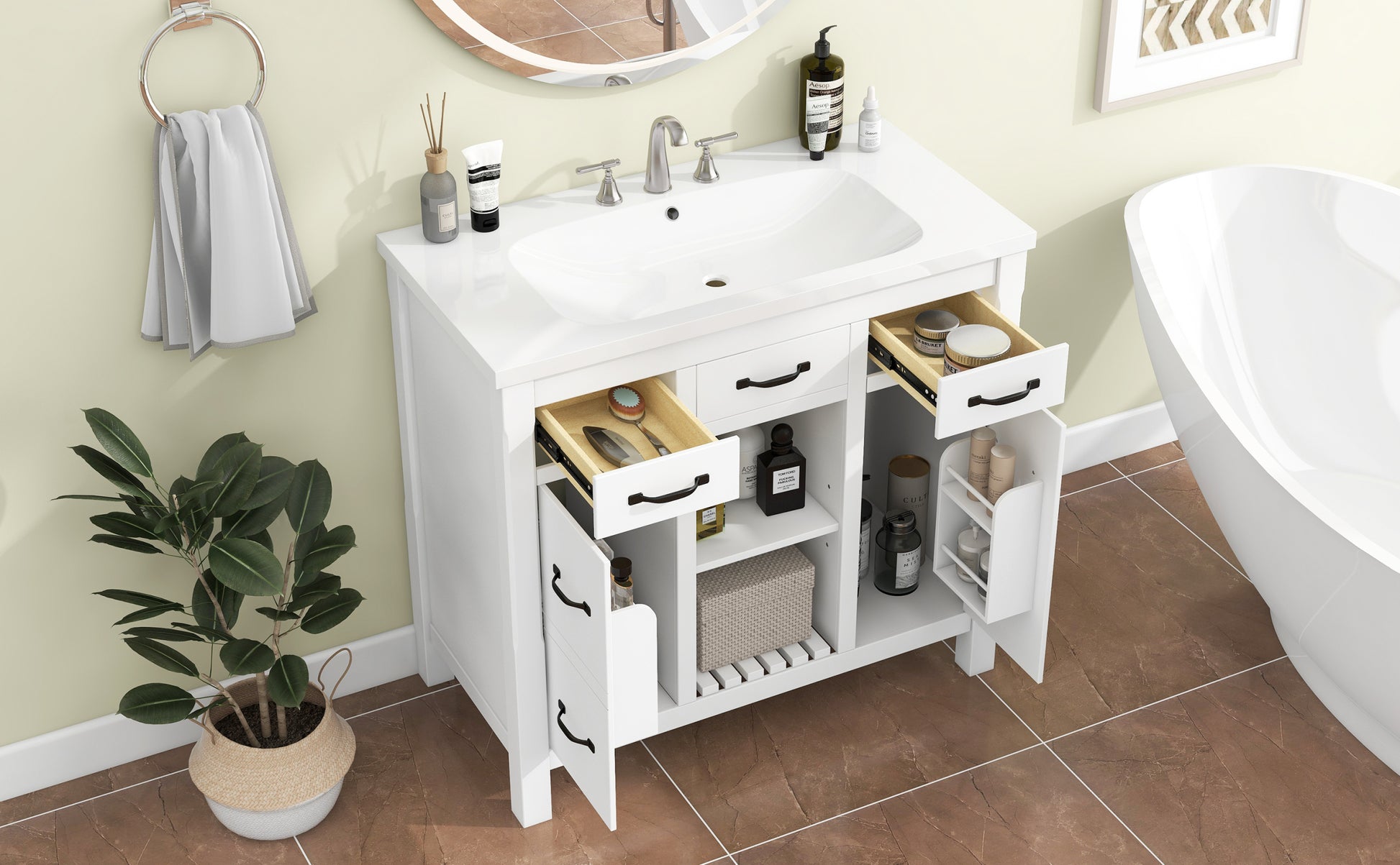 36''Bathroom Vanity With Undermount Sink,Modern Bathroom Storage Cabinet With 2 Drawers And 2 Cabinets,Solid Wood Frame Bathroom Cabinet 2 White 2 2 Adjustable Shelves Bathroom Freestanding Solid Wood Mdf Resin Painted