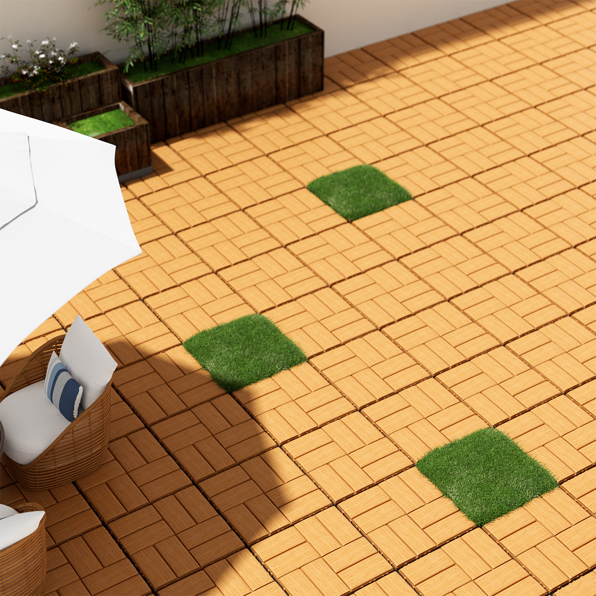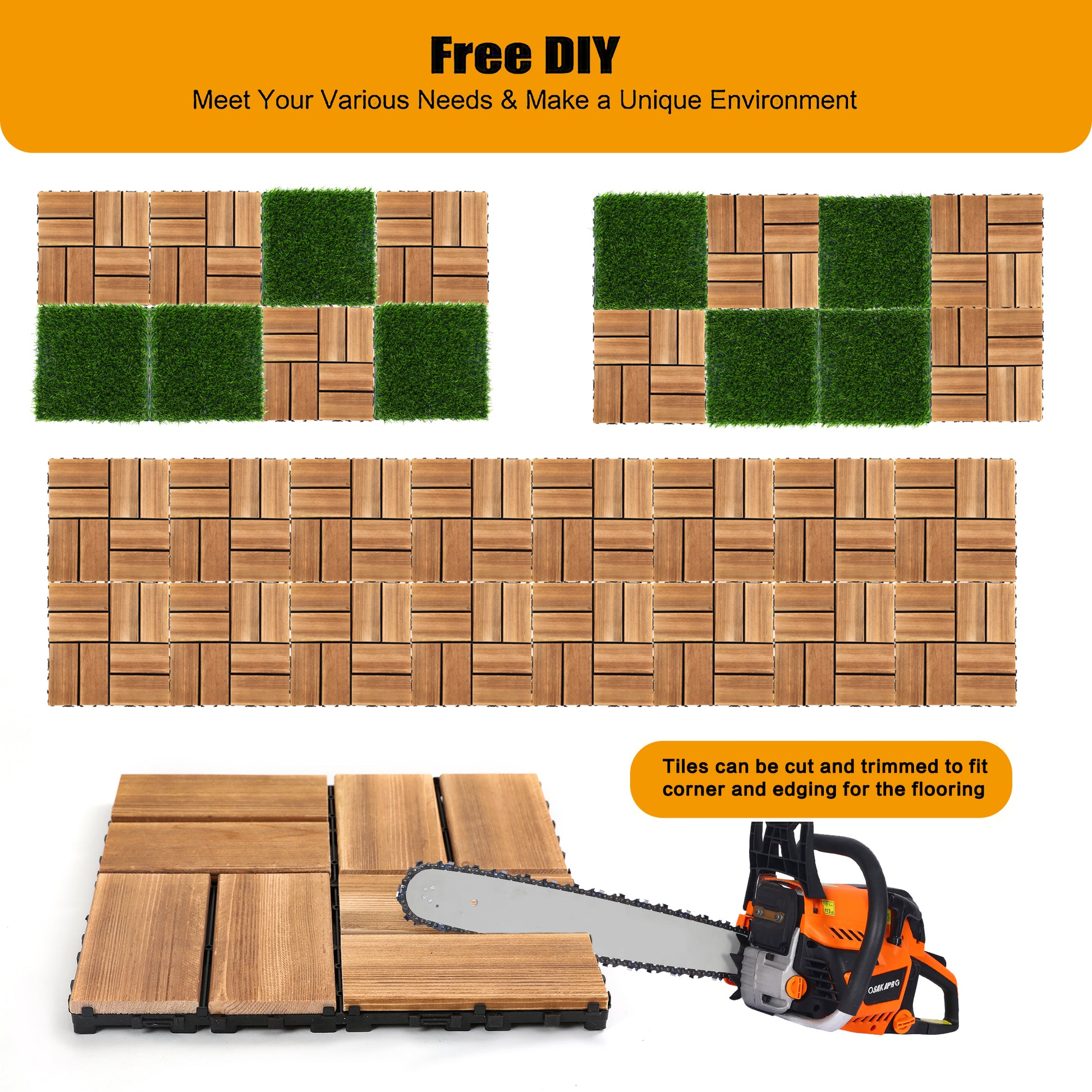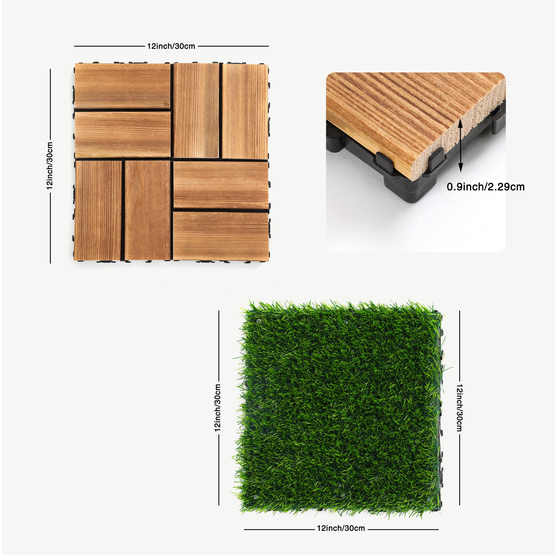 36Pcs Diy Wood Plastic Carbonized Floor, 8Pcs Simulated Lawn, Waterproof And Sunscreen, Transform Your Outdoor Space Wood Wood Plastic