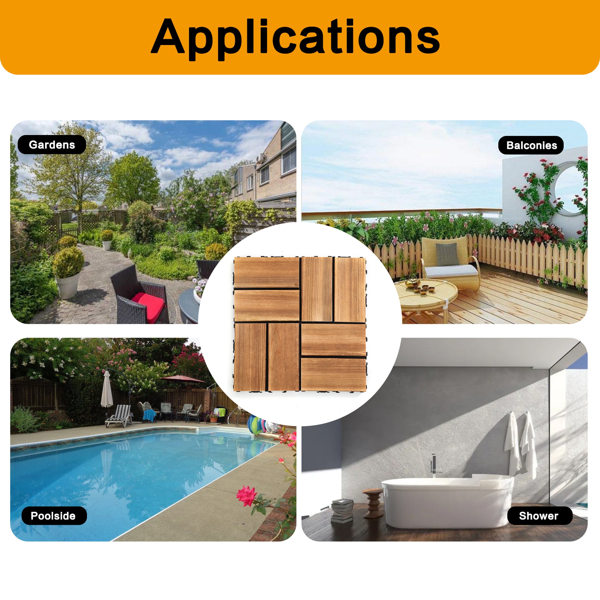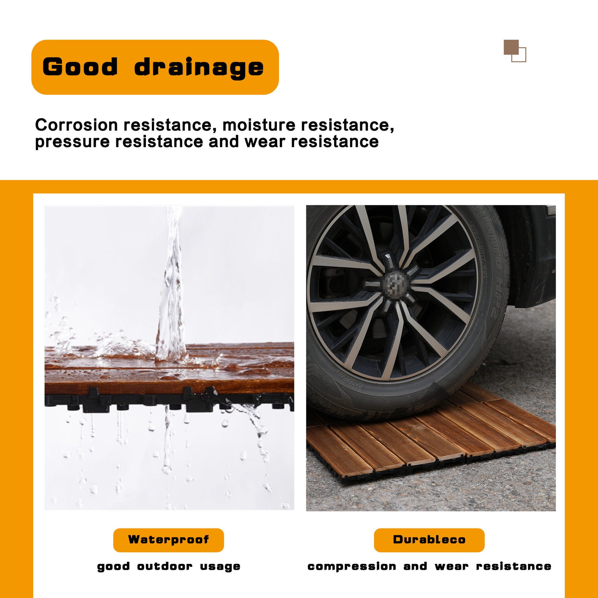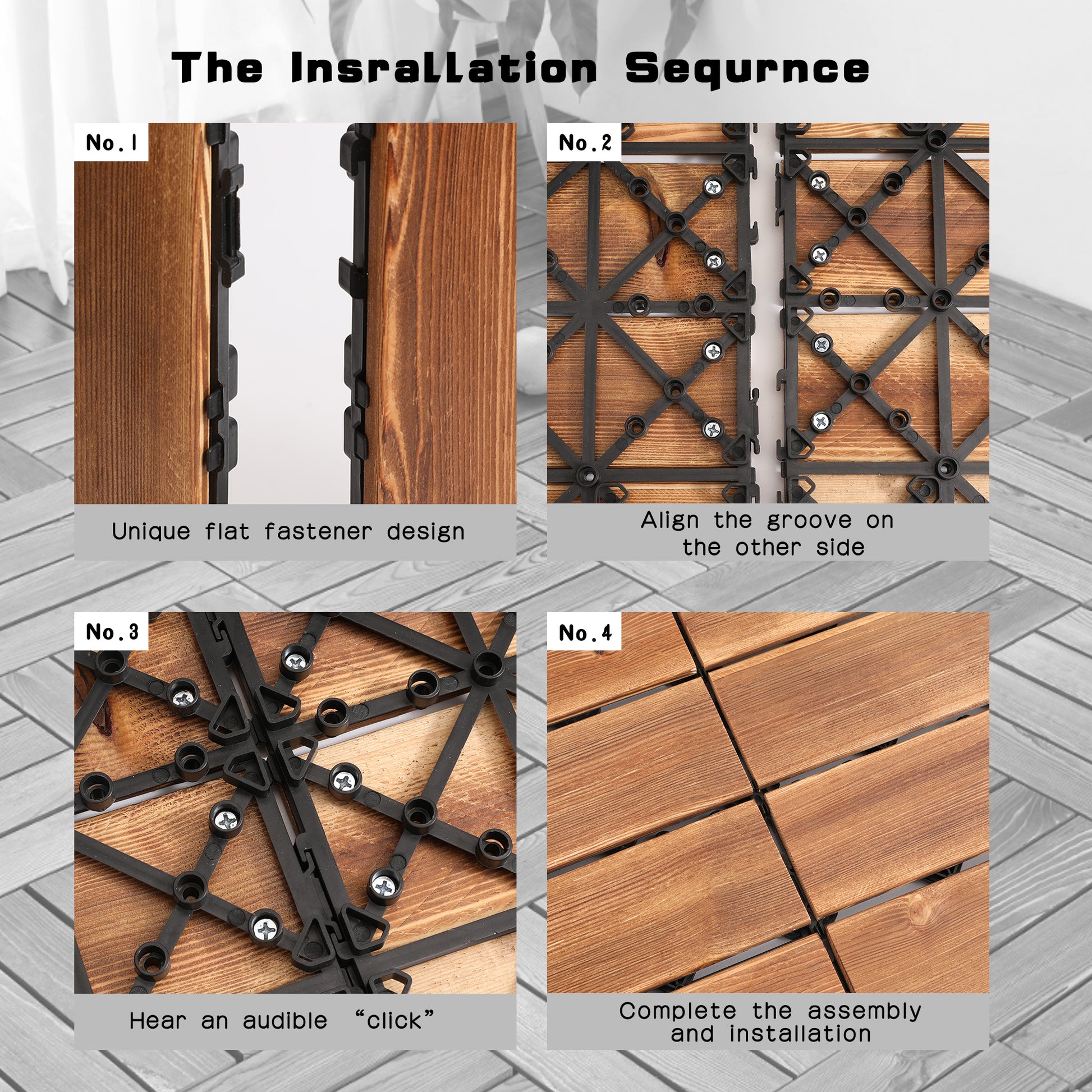 36Pcs Diy Wood Plastic Carbonized Floor, 8Pcs Simulated Lawn, Waterproof And Sunscreen, Transform Your Outdoor Space Wood Wood Plastic