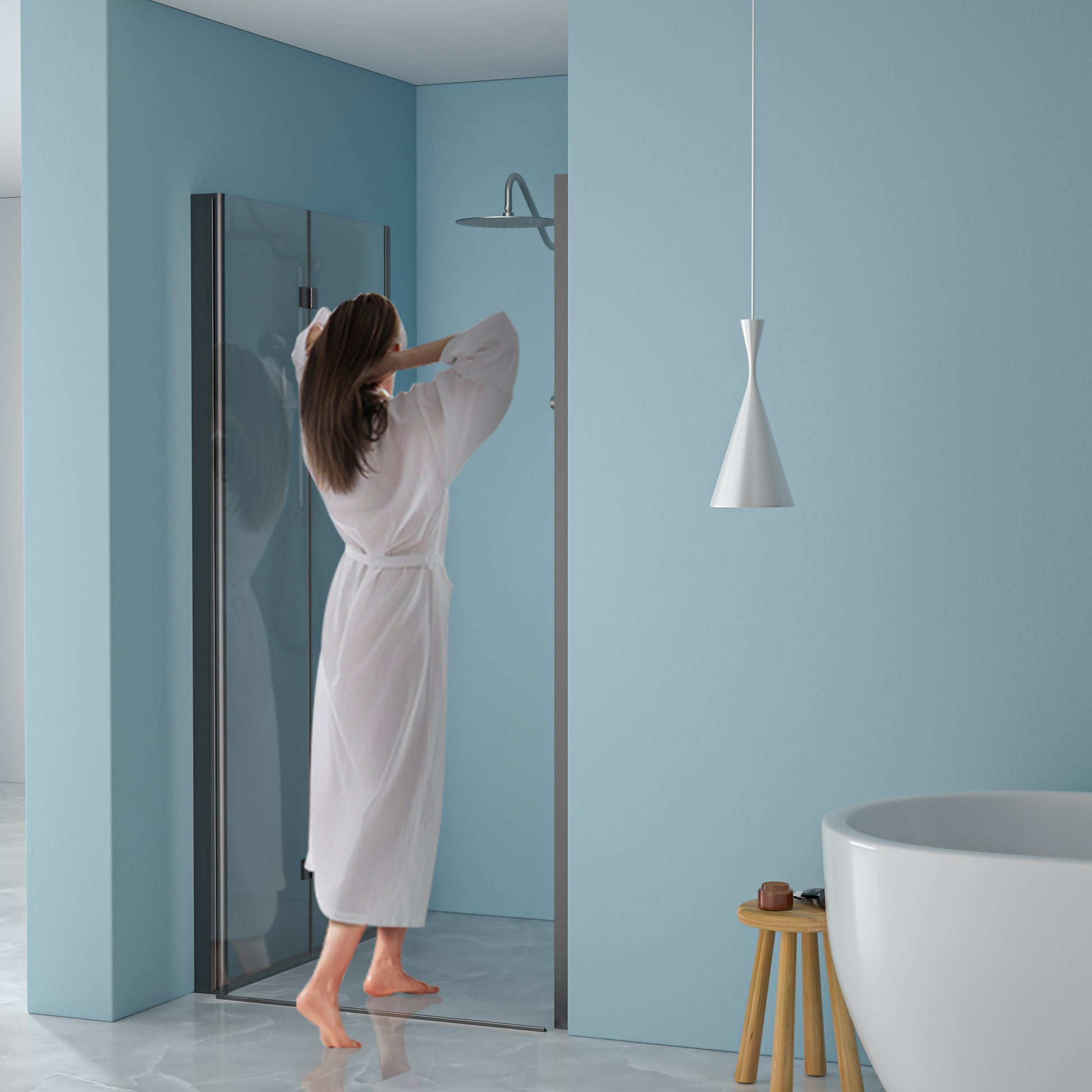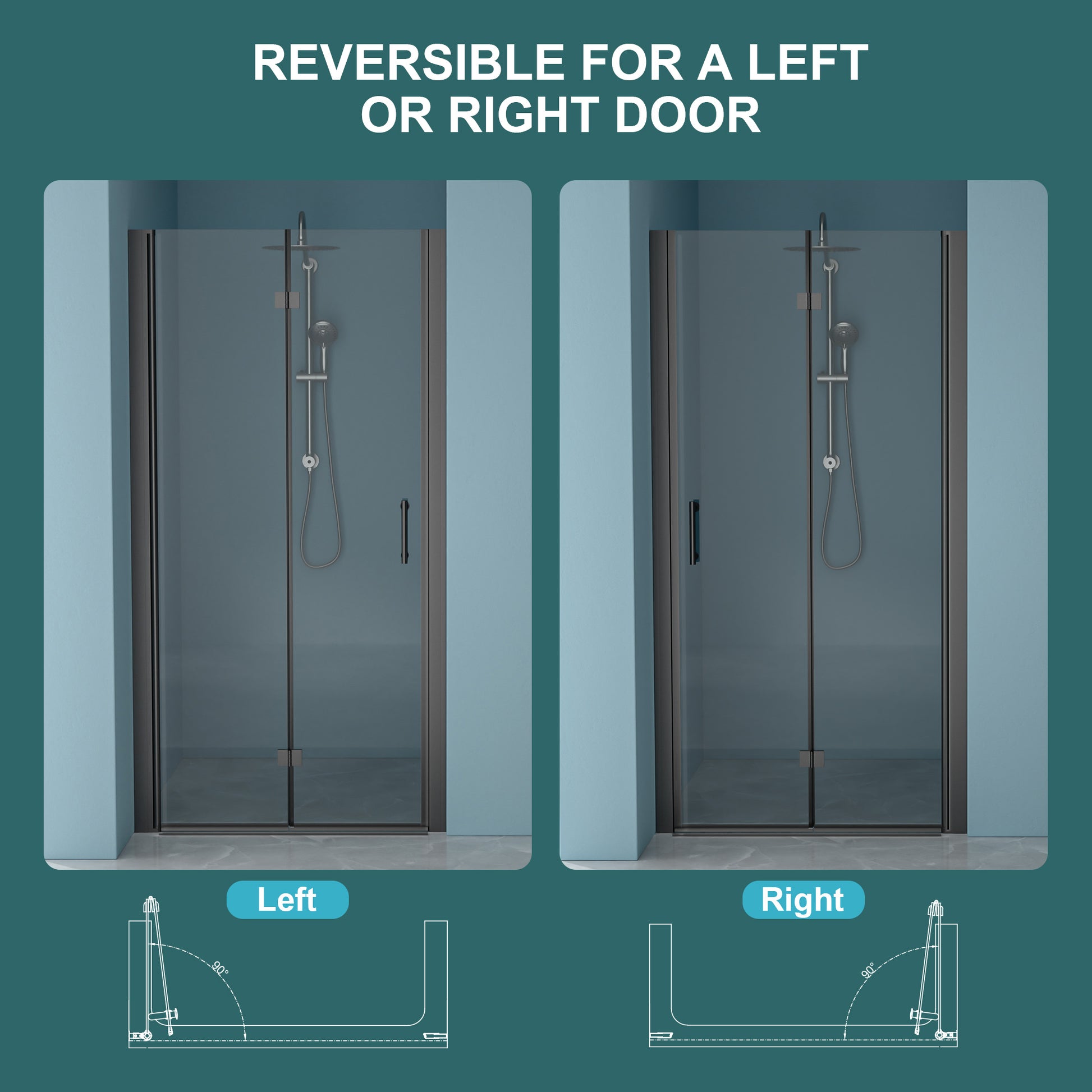 36"W X 72"H Fold Frameless Shower Door With Tempered Glass, Matte Black Matte Black Glass