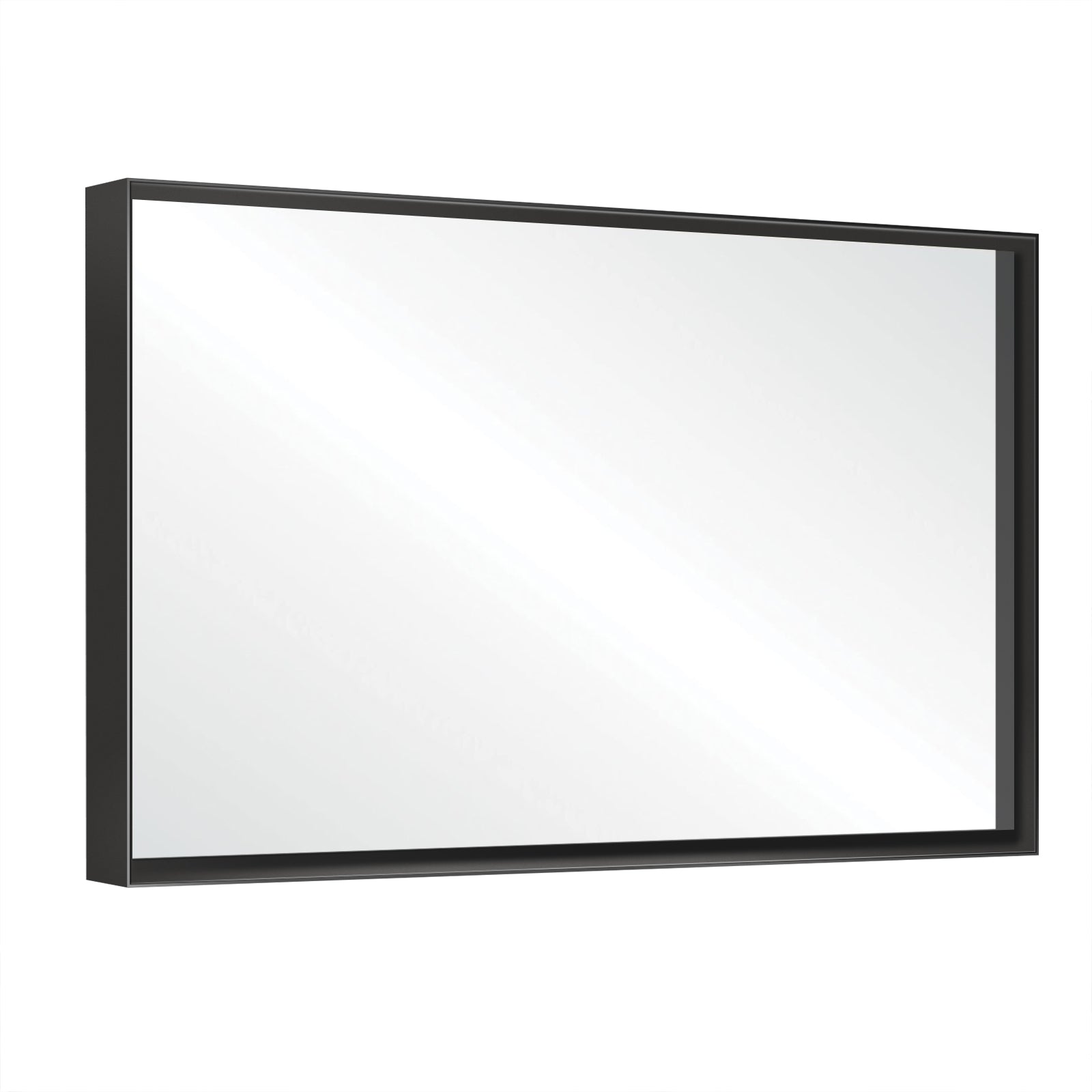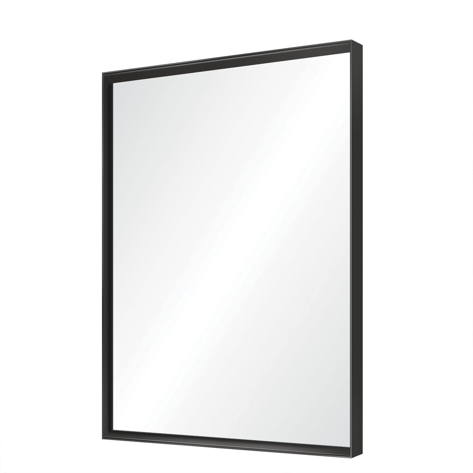 36X24Inch Black Rectangular Bathroom Mirror Square Angle Metal Frame Wall Mounted Hanging Plates Wall Mount Mirror For Bathroom Horizontal & Vertical Black Luxury Glass Aluminium Alloy