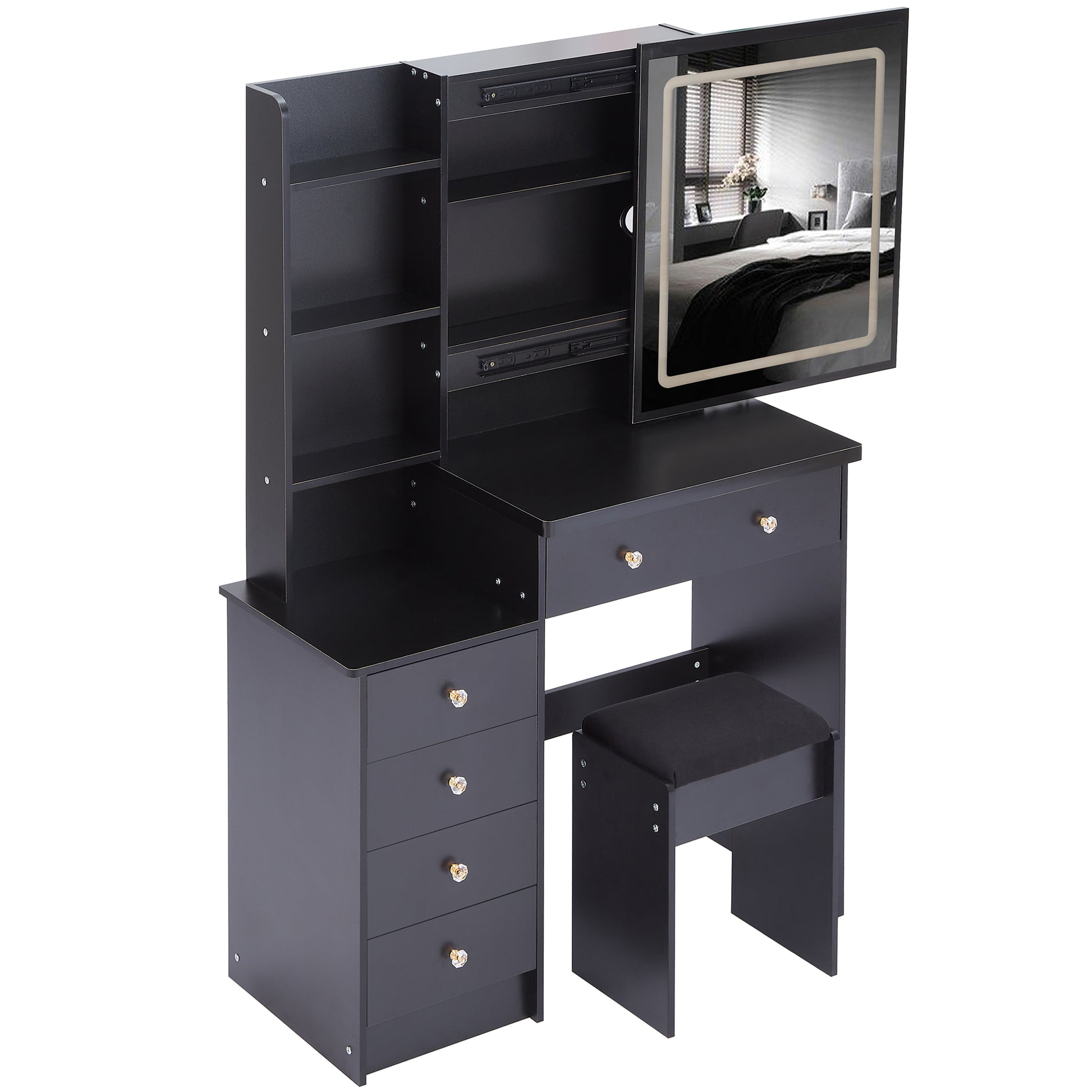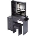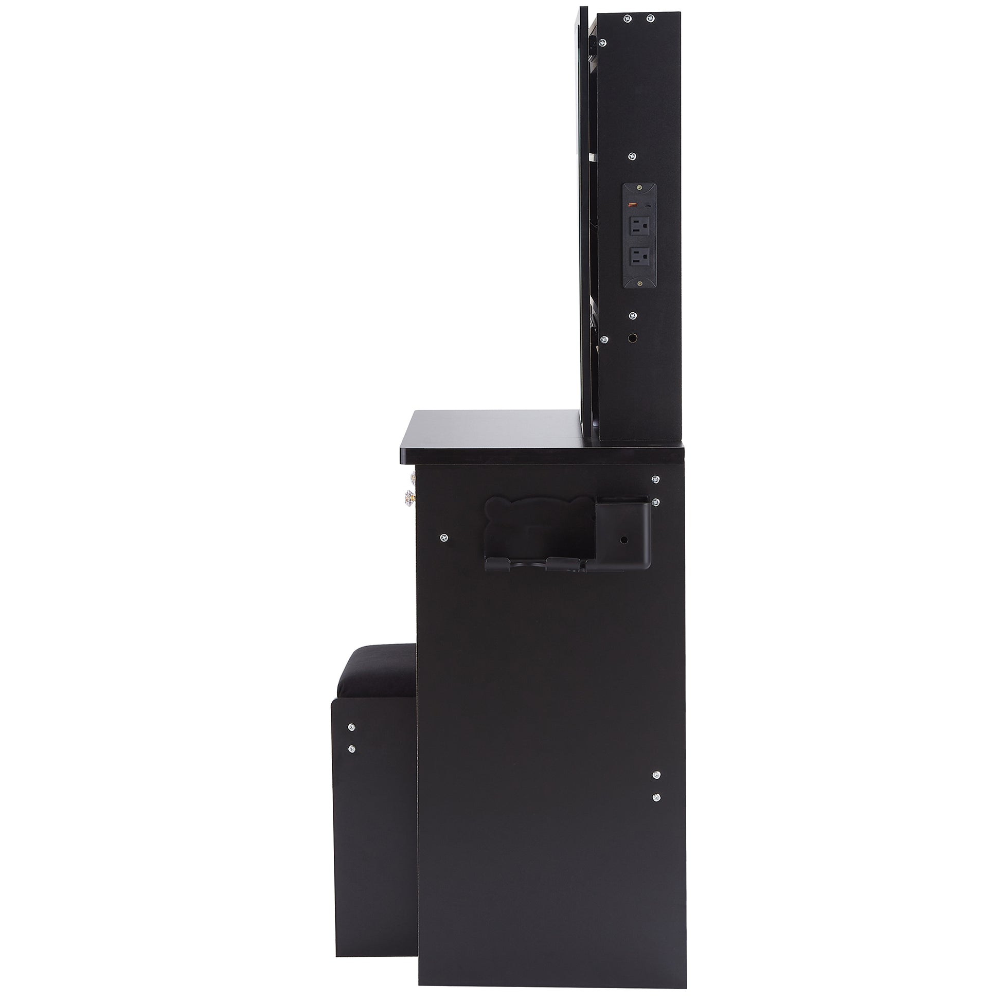 37" Middle Size Left Bedside Cabinet Vanity Table Cushioned Stool Dresser Set, 2 Ac 2 Usb Socket, Hair Dryer Stand, Large Touch Control Led Sliding Mirror, 3 Color Switch, Epa, Gcc, Ul Certificate