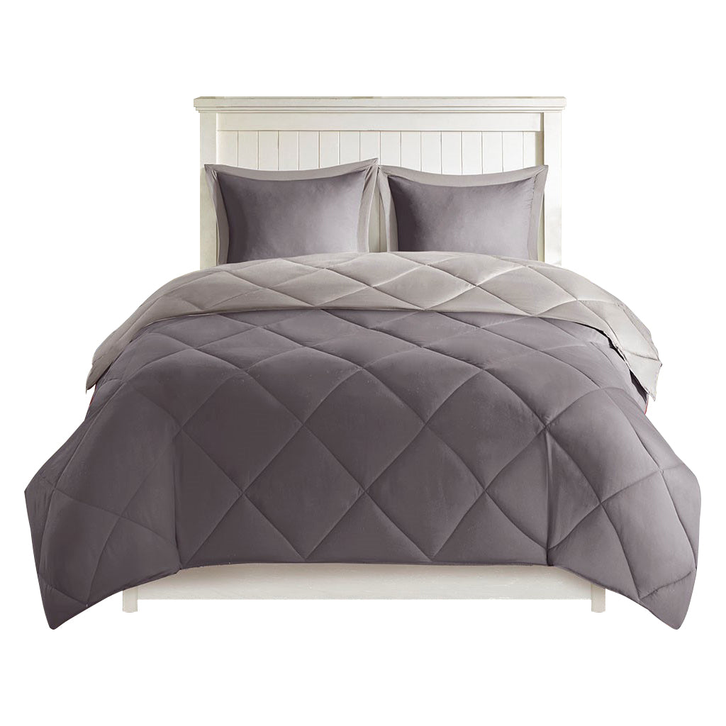 3M Scotchgard Diamond Quilting Reversible Down Alternative Comforter Set King Grey Polyester