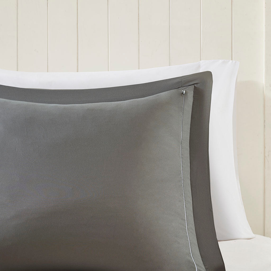3M Scotchgard Diamond Quilting Reversible Down Alternative Comforter Set Black Grey Polyester