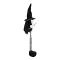 4.3X4X26.8" Fabric Sitting Black Gnome With Broomstick&Long Legs, For Halloween Decor Black White Polyester