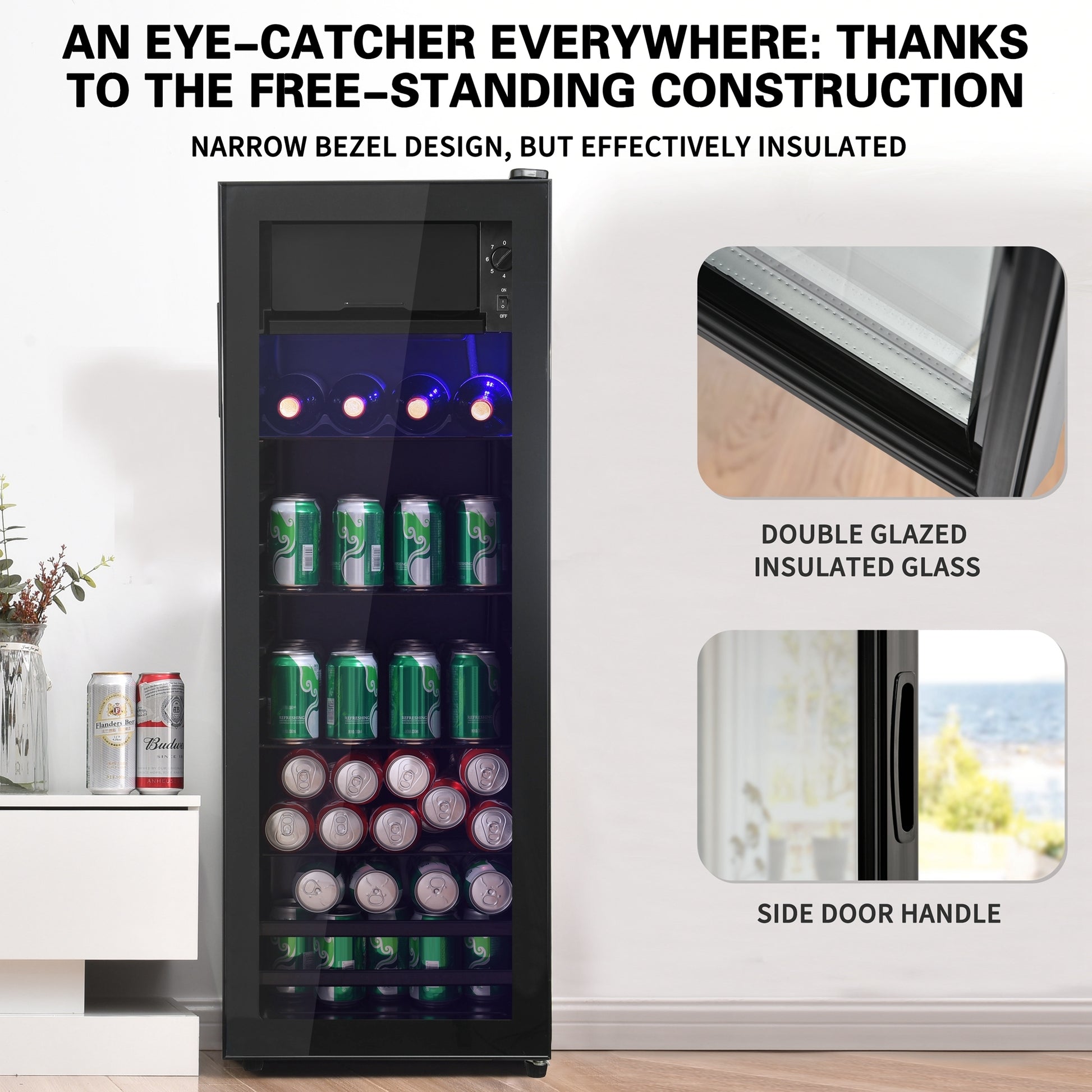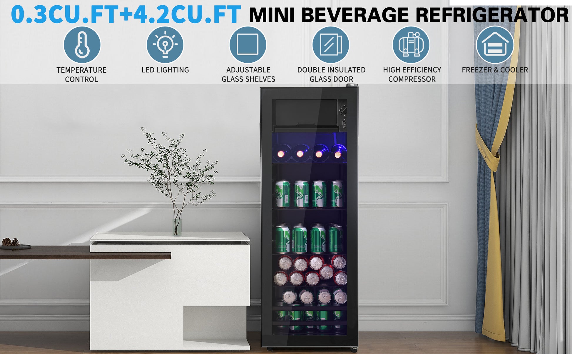 4.5Cu.Ft Mini Fridge, 0.3Cu.Ft Freezer, Up To 94 Cans Of Soda, Beer Or Wine. Silent, High Efficiency And Energy Saving Compressor, Led Lighting, 16.10" 15.70" 43.10", Home, Rv, Apartment, Office, Etc. Black Iron