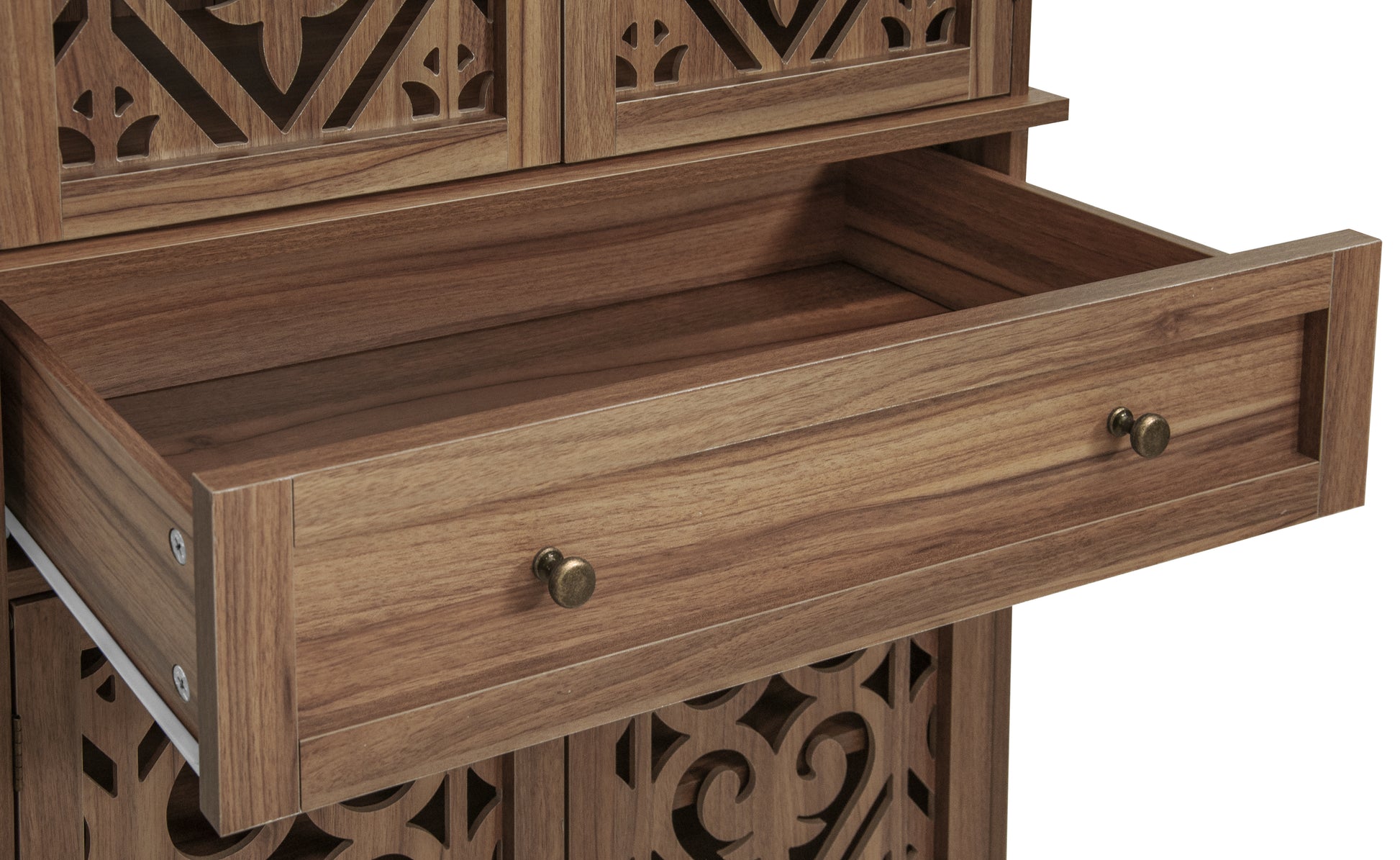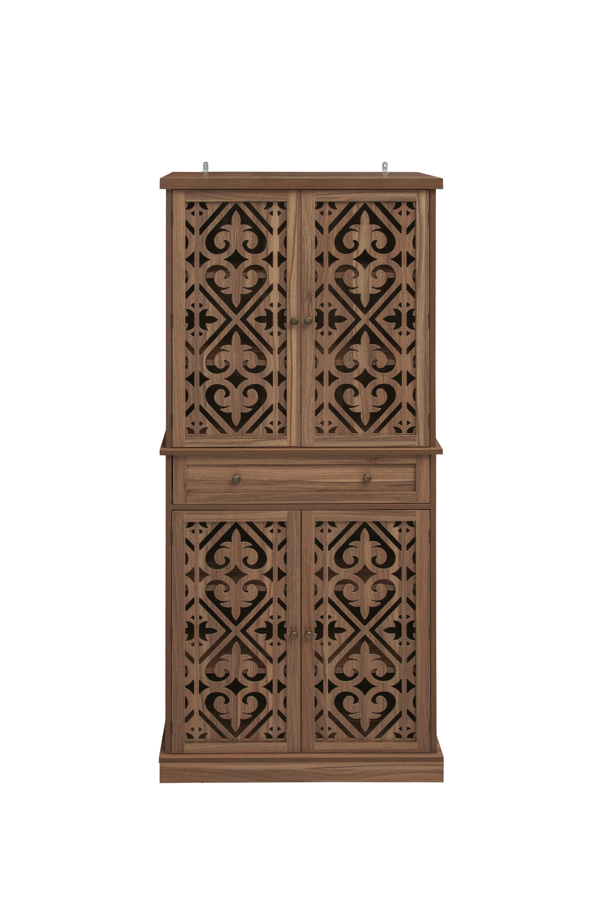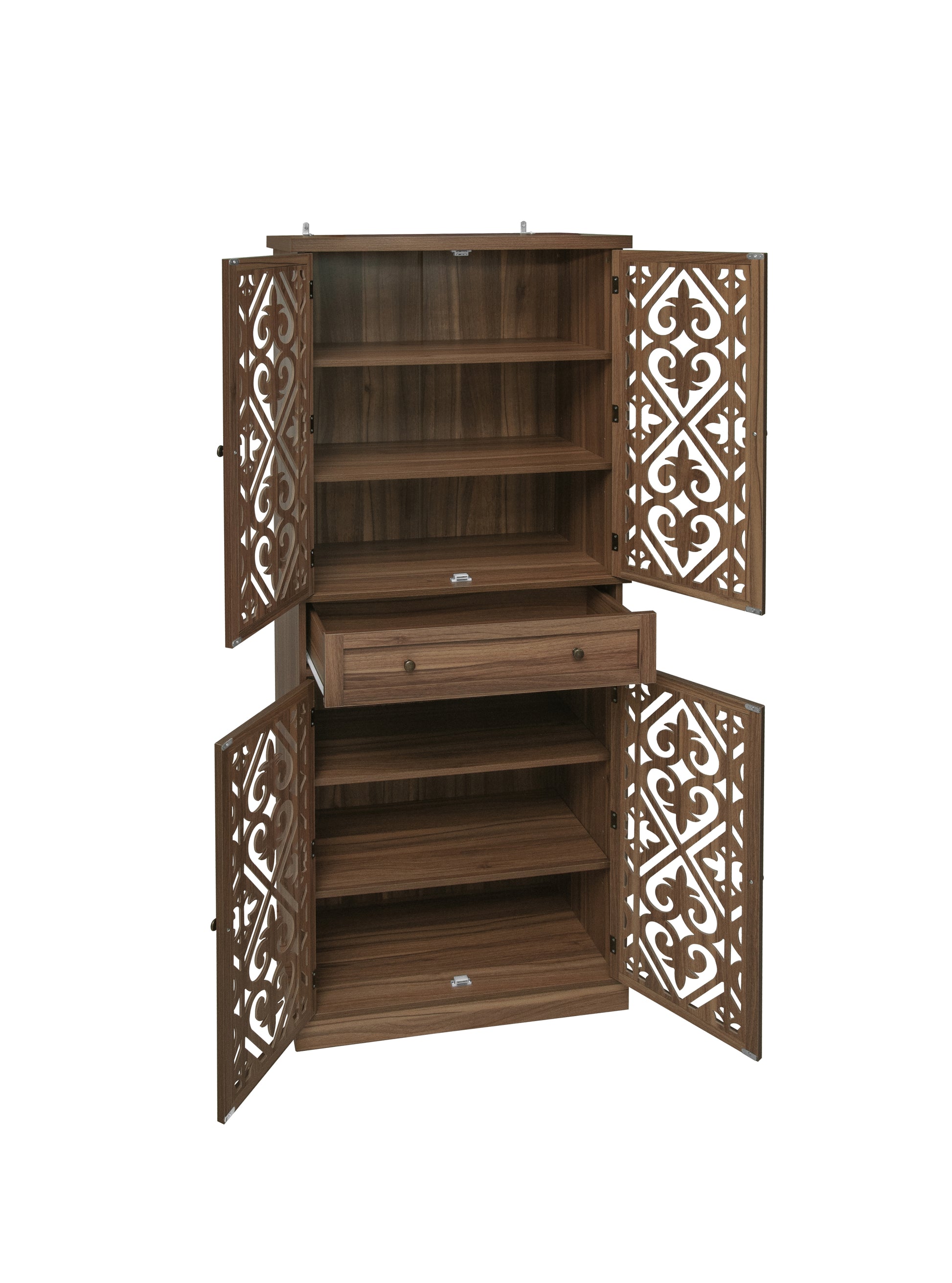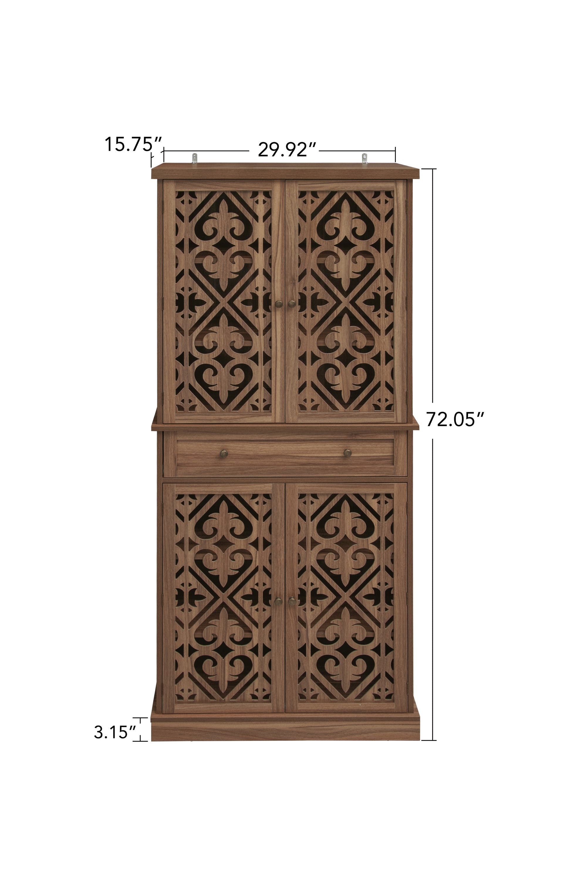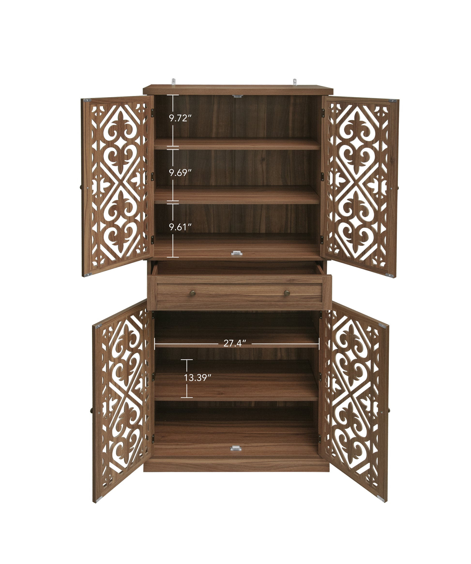 4 Door Cabinet With 1 Drawer, With 4 Adjustable Inner Shelves, Storage Cabinet Walnut Mdf