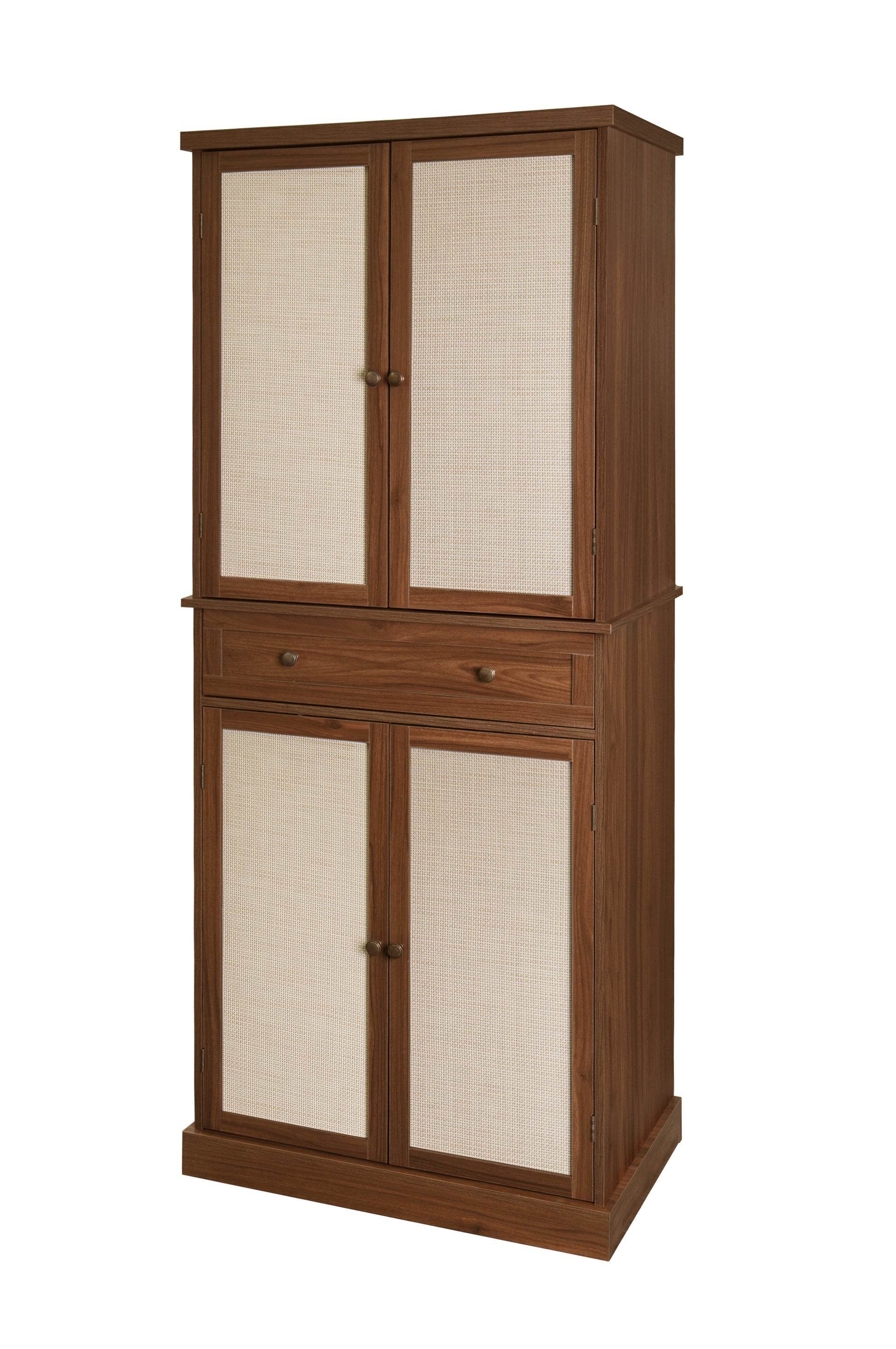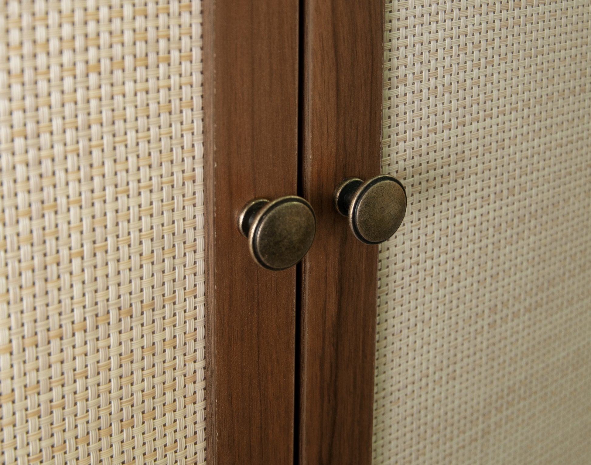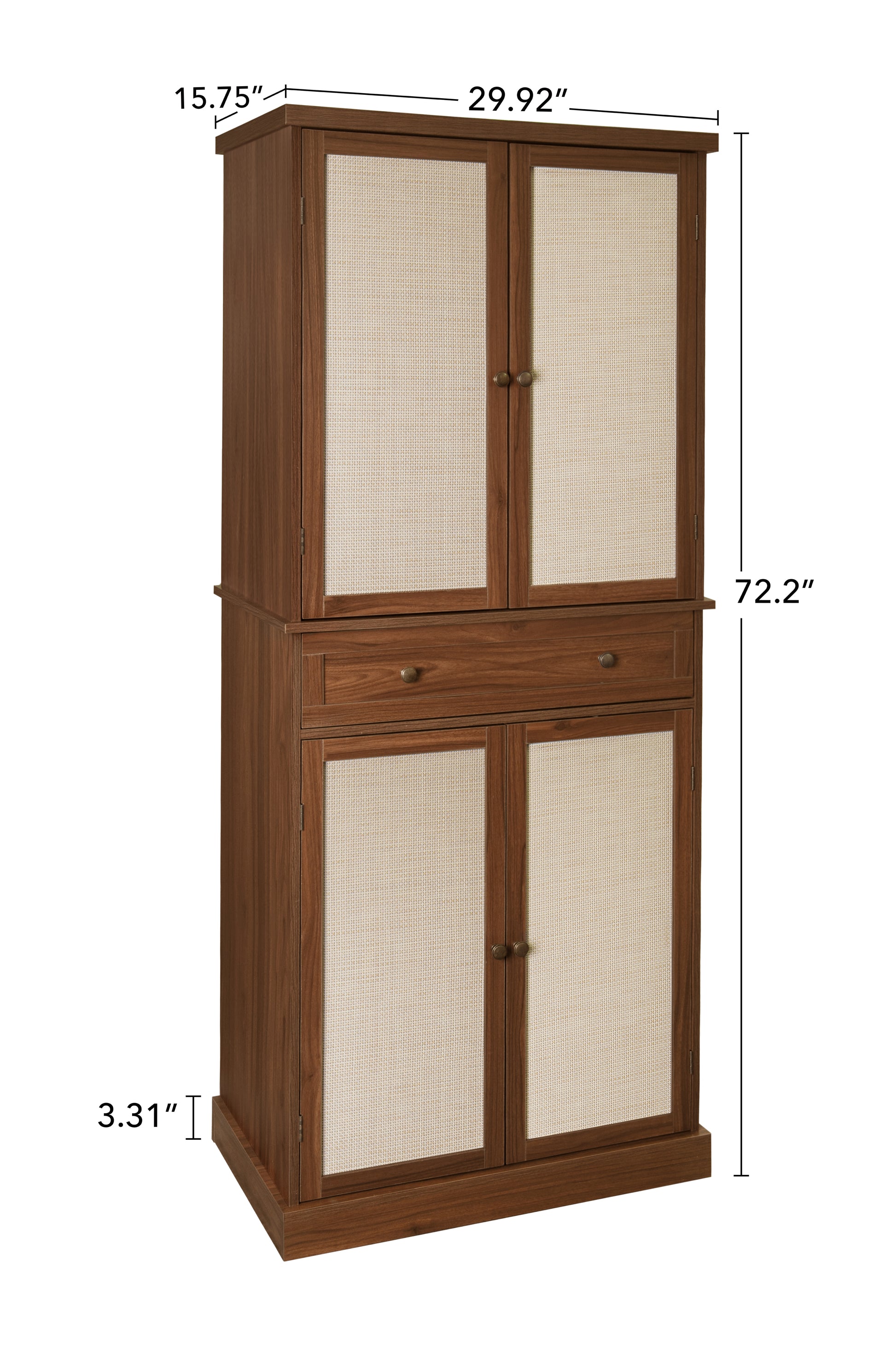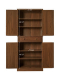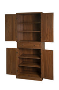 4 Door Cabinet With 1 Drawer, With 4 Adjustable Inner Shelves, Storage Cabinet Walnut Particle Board