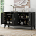 4 Door Sideboard Storage Cabinet With Door Shelf For Living Room And Dining Room, Two Large Cabinets With Adjustable Shelf, Black Black Rubberwood Solid Wood Mdf