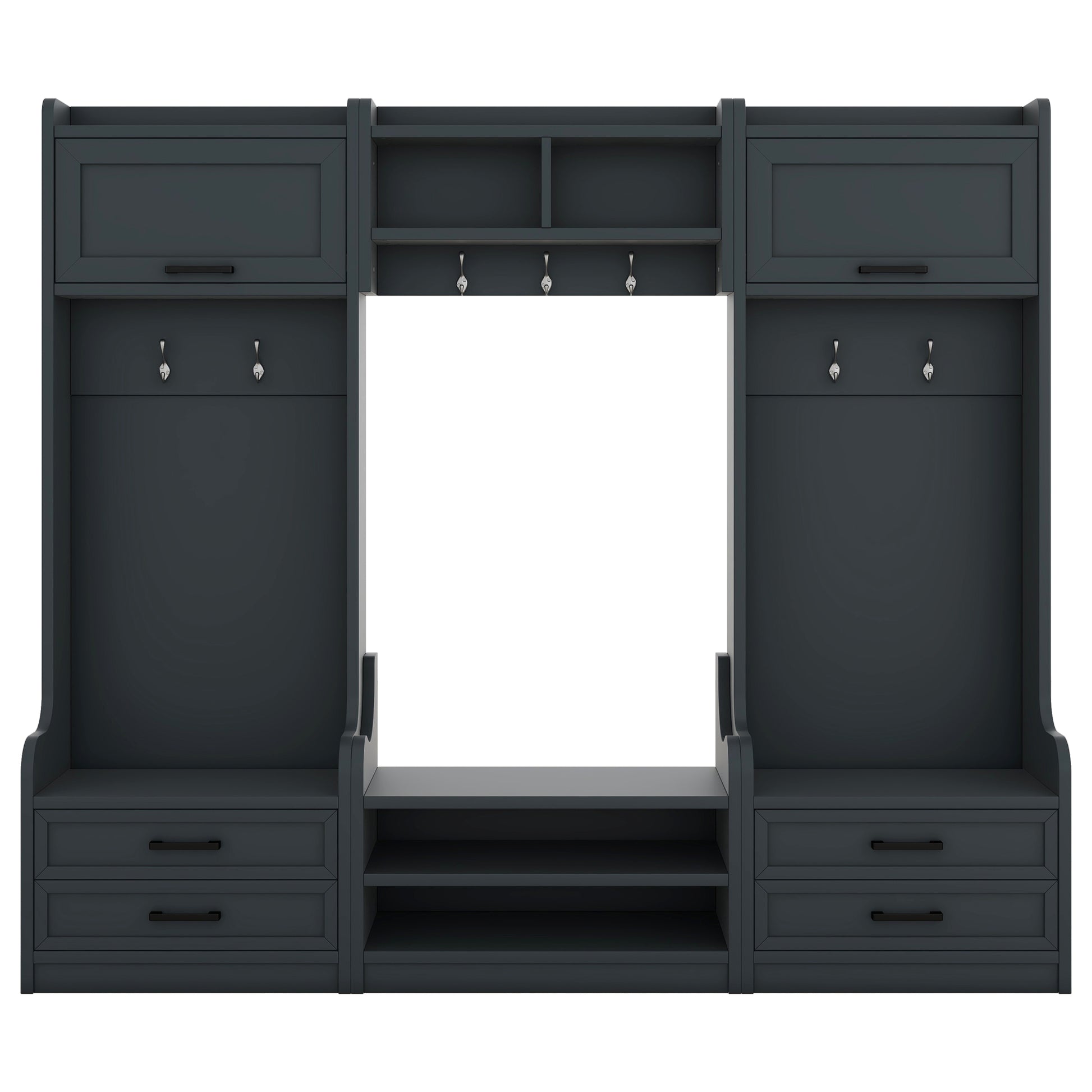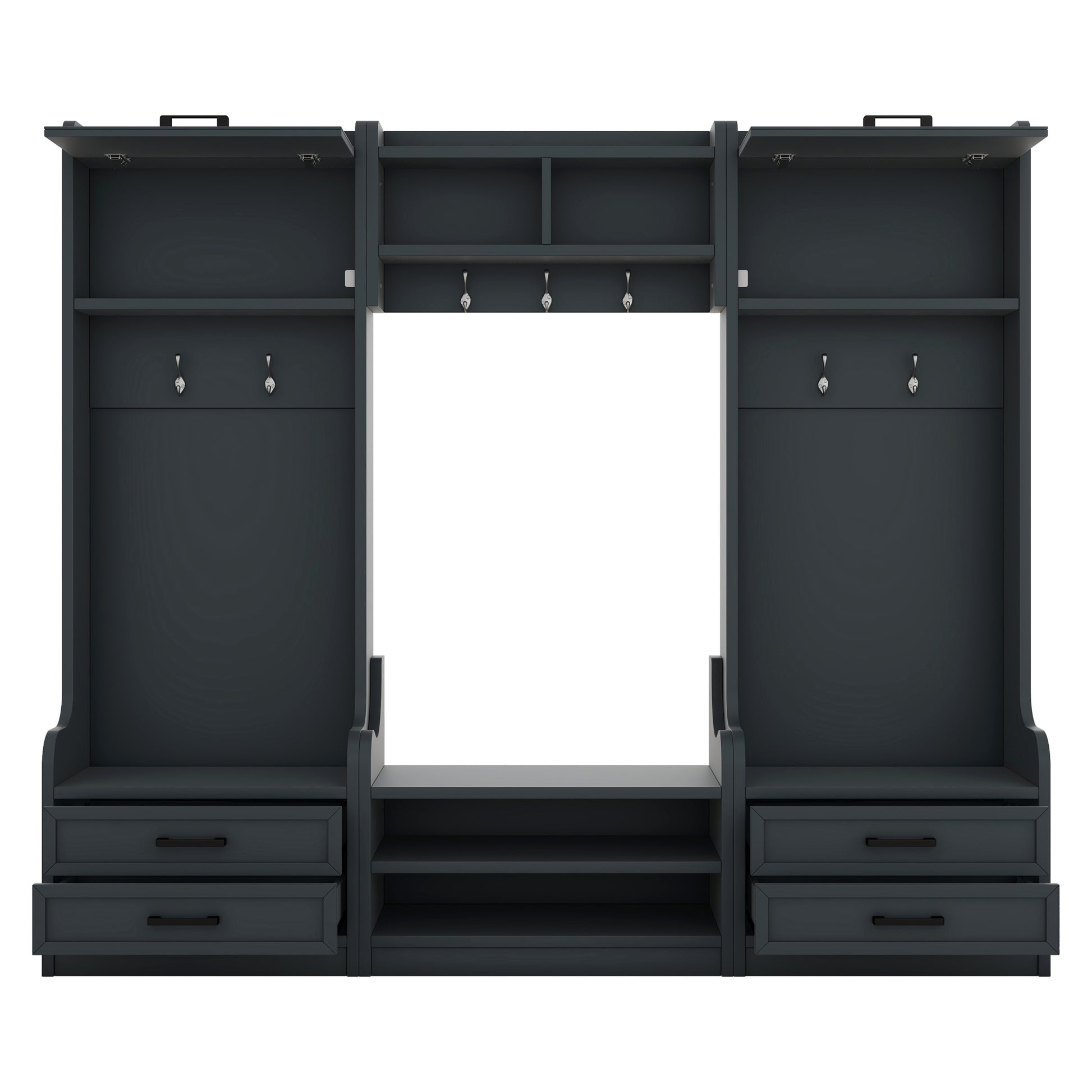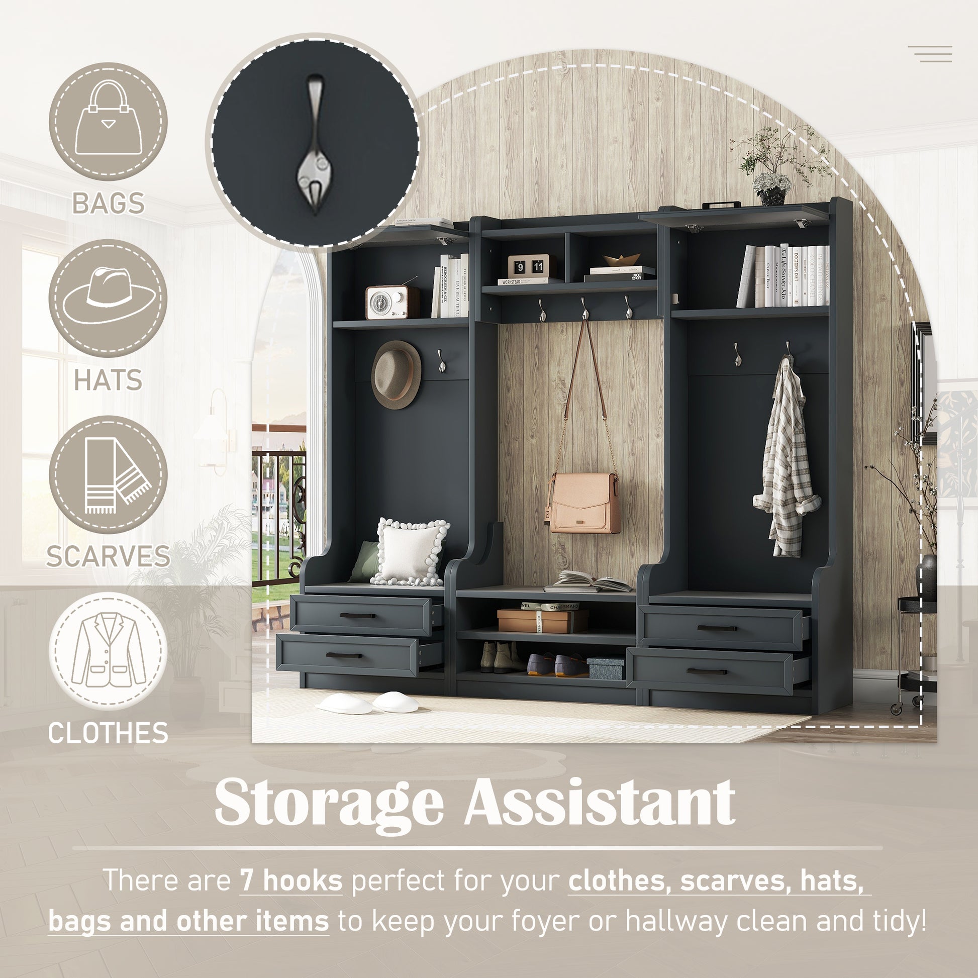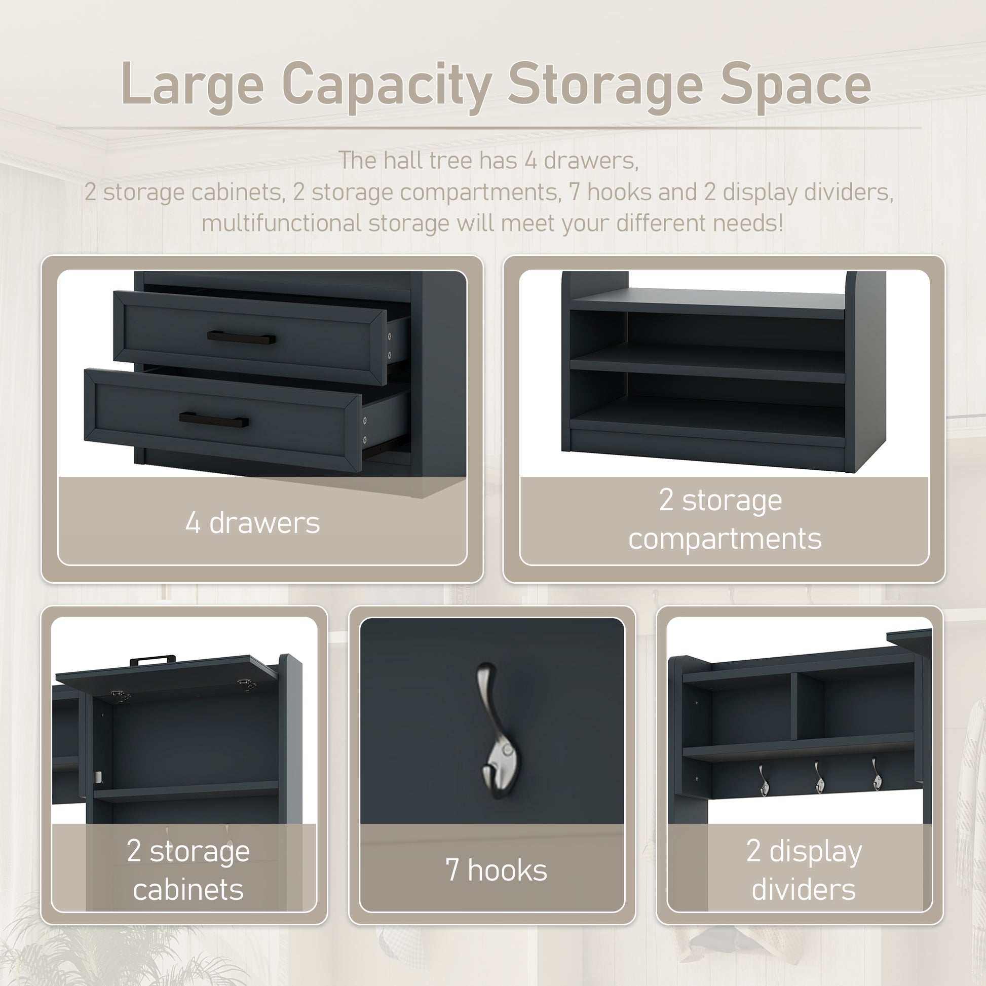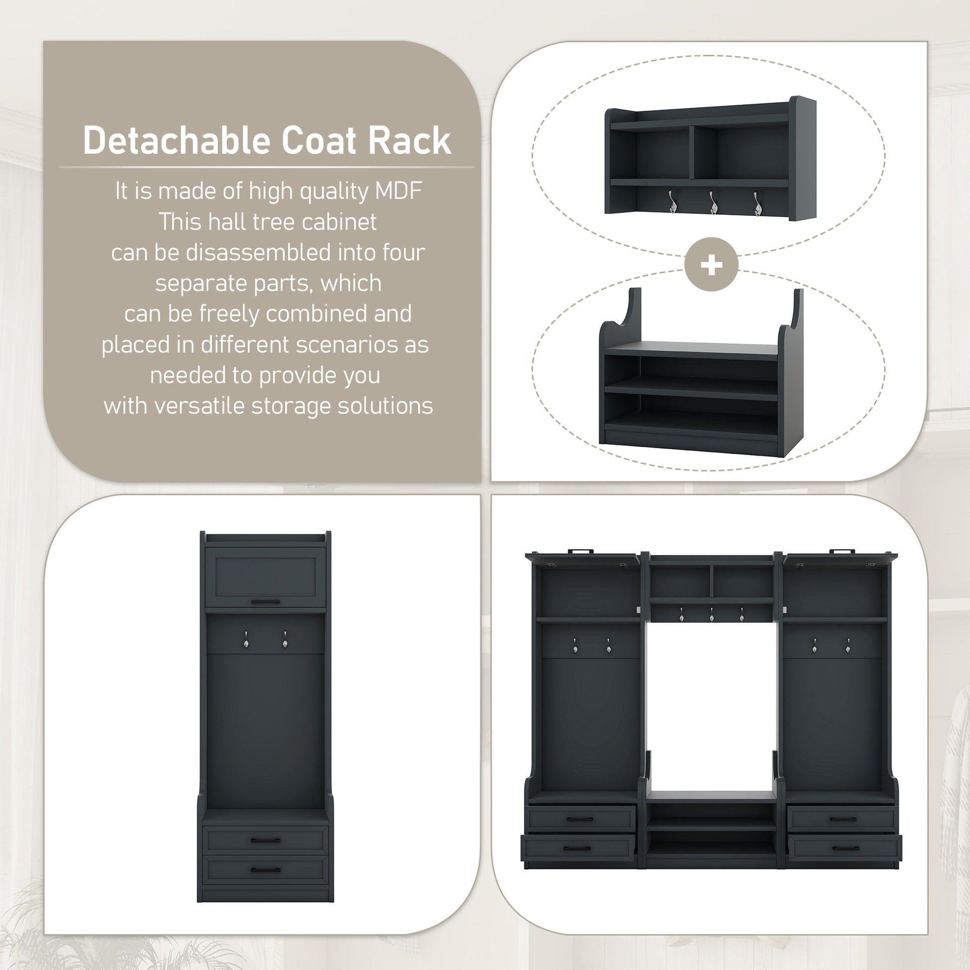 4 In 1 Detachable Hall Tree With Storage And 7 Hooks, Multiple Functions Hallway Coat Rack With Storage Drawers And Cabinet, Antique Blue Shoe Bench For Entryway Hallway Antique Blue Particle Board
