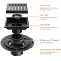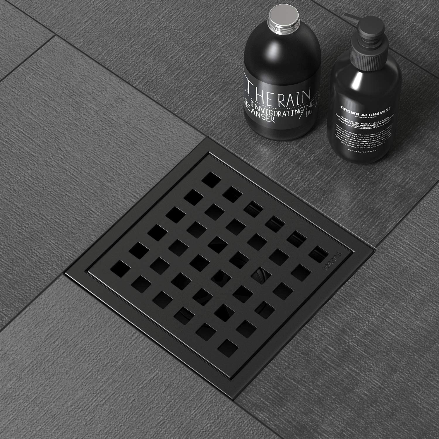 4 Inch Square Shower Floor Drain Matte Black Stainless Steel