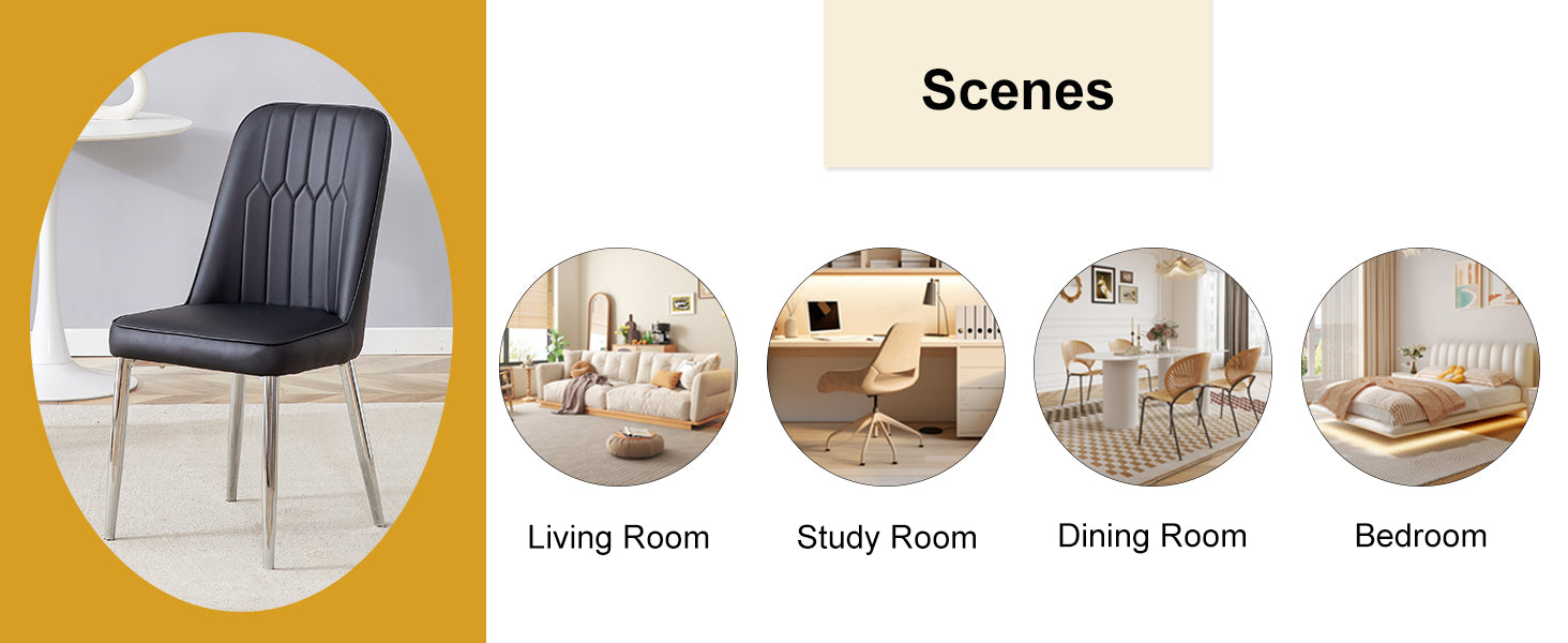 4 Modern Dining Chairs, Smooth Pu Leather Backrest And Silver Toned Metal Legs For A Comfortable Home Experience For Kitchens, Bedrooms And Offices. Black Pu